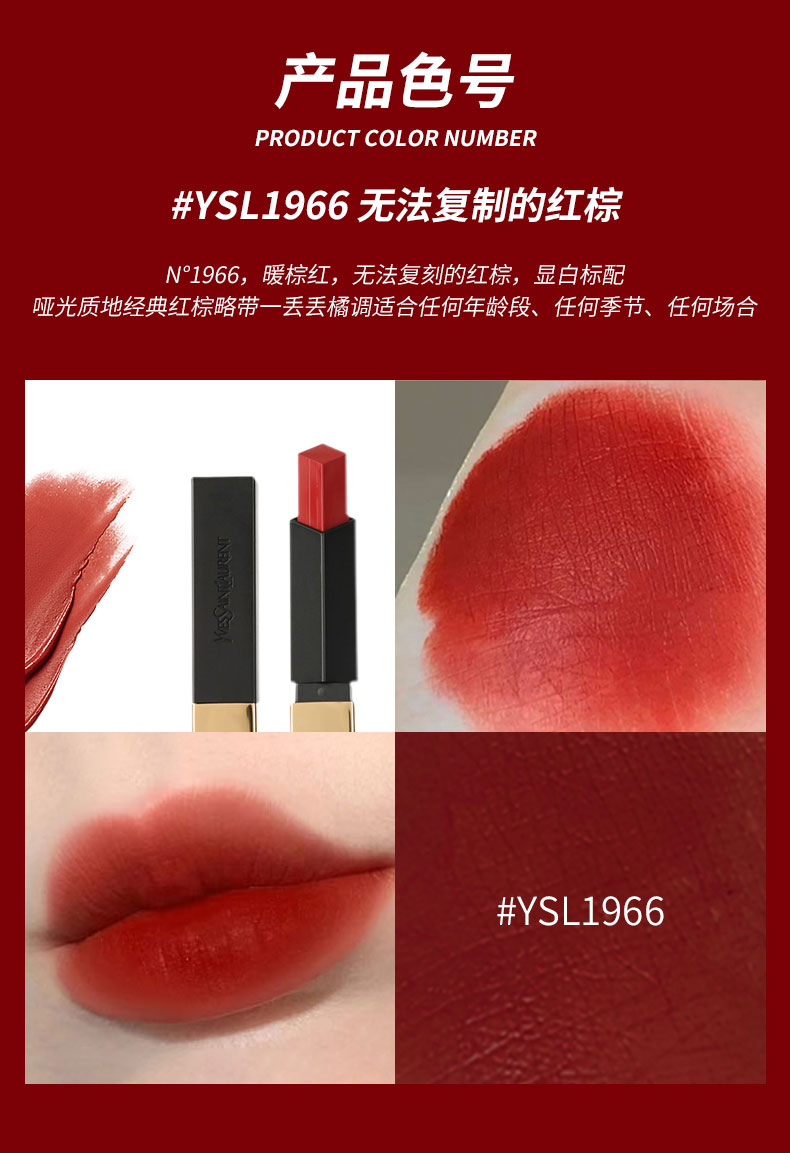 YSL圣罗兰小金条口红1966 皮革哑光妆效 优雅显白 提升气色 2.2g/支