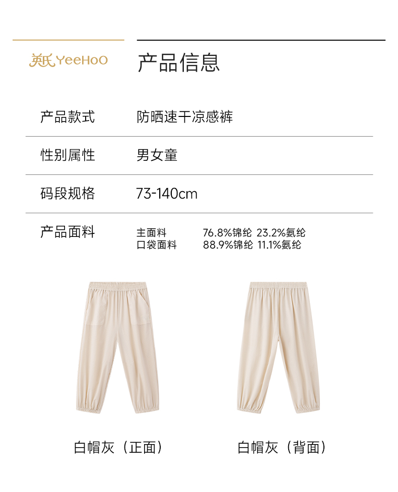 【商场同款】英氏儿童裤子女童夏季凉感防晒长裤百搭休闲外裤