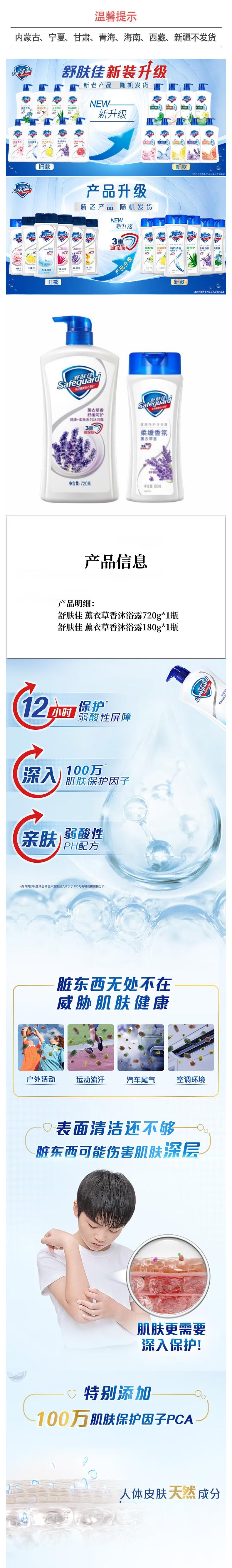 (广西石化秒杀)舒肤佳 薰衣草香沐浴露720g*1瓶+薰衣草香沐浴露180g*1瓶 PGZ815