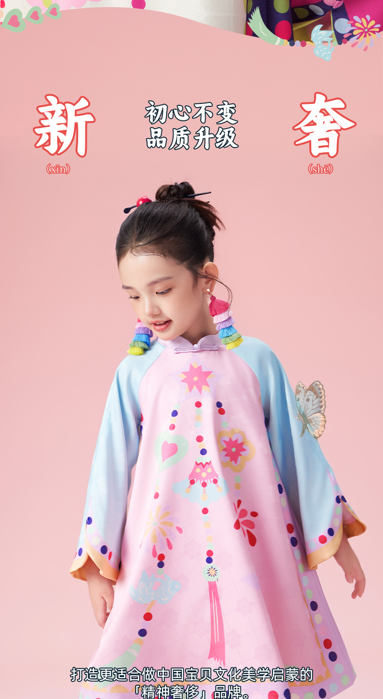 【年衣】童装25秋季新款新中式女童A字裙周岁礼服演出服花火虹心旗袍