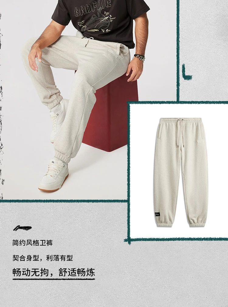 【抄底!299任选2件】李宁男子卫裤2025春季新款反伍系列束脚宽松运动长裤AKLV013