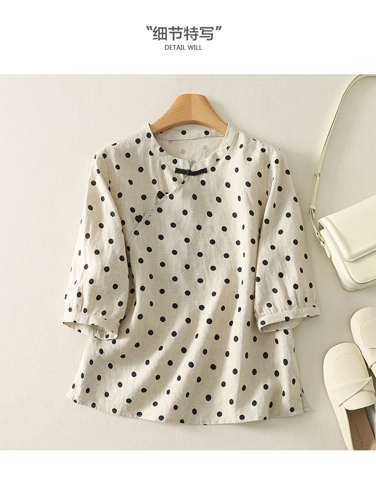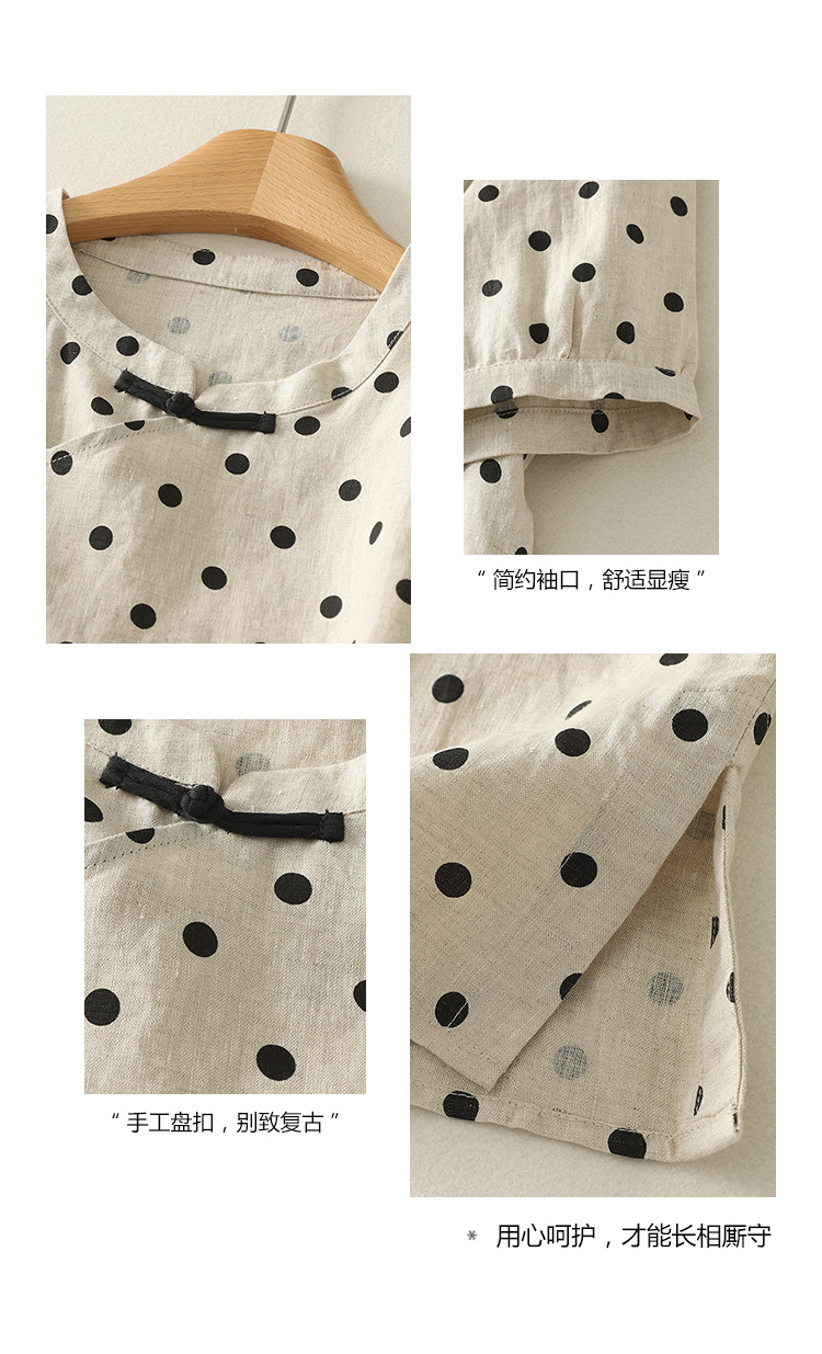 GYH 1368休闲波点衬衫中式盘扣复古宽松透气短袖上衣