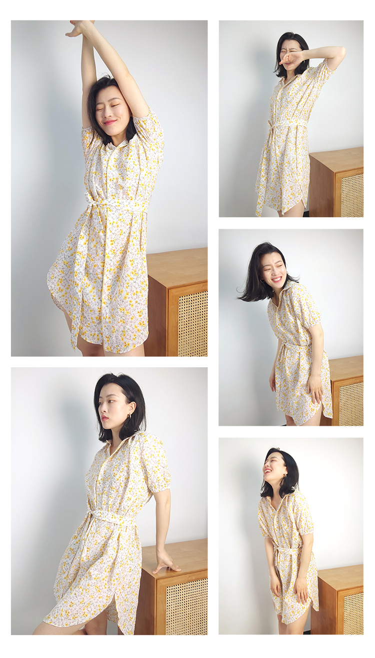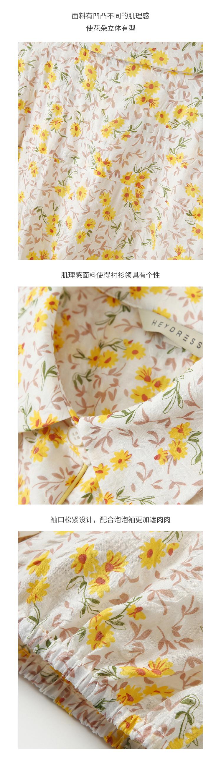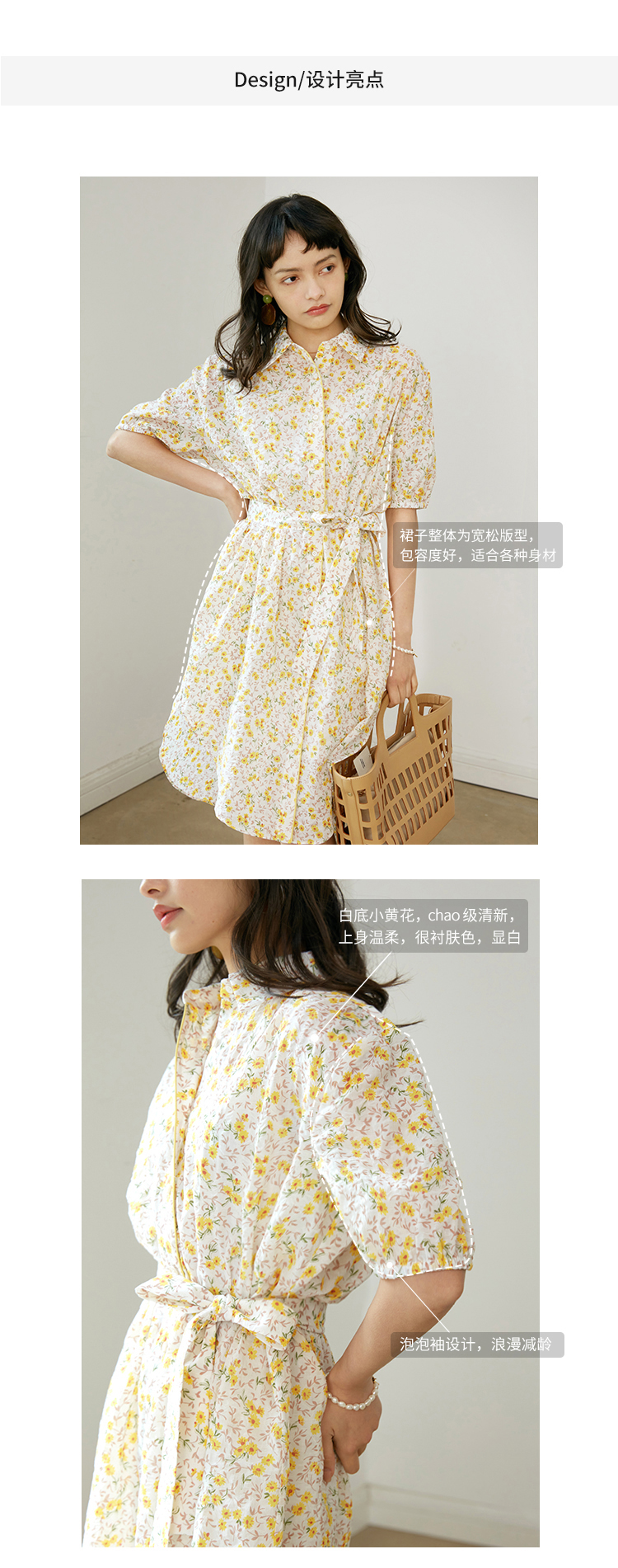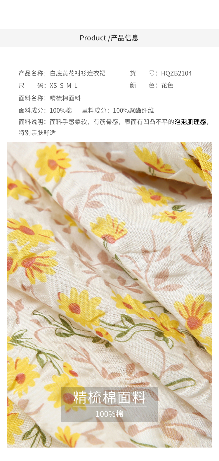 衬衫式连衣裙 如沐春风的白底小黄花 柔和清新,纯净纯粹, 让人眼前一亮 很衬肤色的颜色,显肤白 从它开始,对未来每一个灿烂光景都充满期待 面料我们选用了100%精梳棉泡泡感盐缩面料 吸湿透气性好 穿着凉爽舒适很适合炎热的夏季 经典的小翻领,精致得体 腰部本布腰带设计,有效提高腰线 轻松营造三七分的完美比例 内复衬裙设计,不用担心透 裙下摆设计了不规则的弧形下摆 打破了传统平下摆的沉闷,单调,使衣服更灵动 慵懒宽松的版型,那里有肉遮哪里 集精致,简约,浪漫文艺于一身 |
