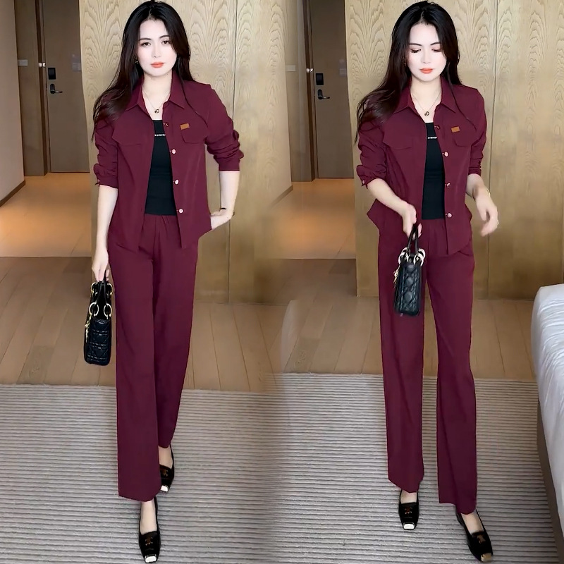 时尚套装女2025秋季新款洋气显瘦翻领外套阔腿裤减龄百搭两件套 商品图0