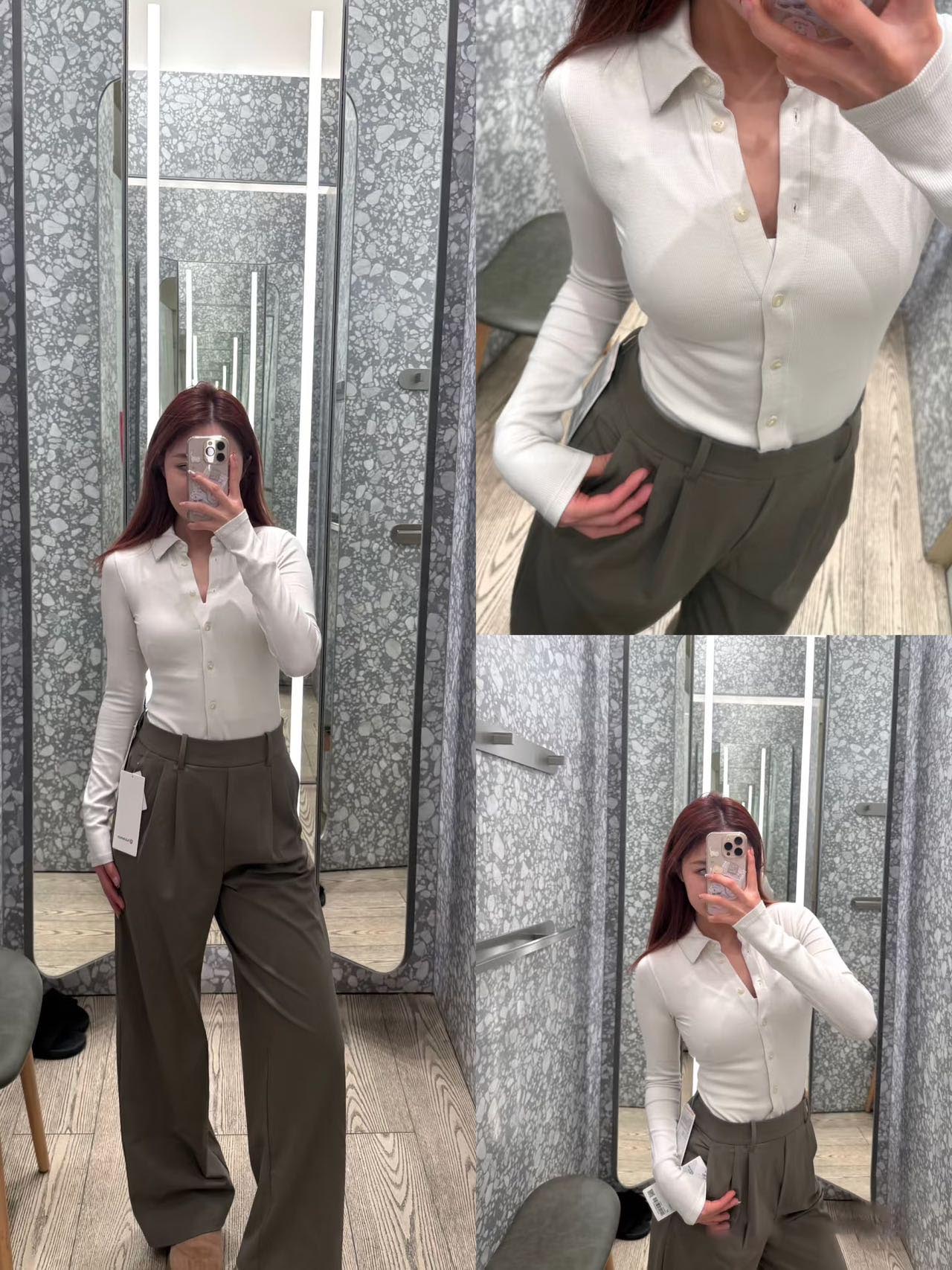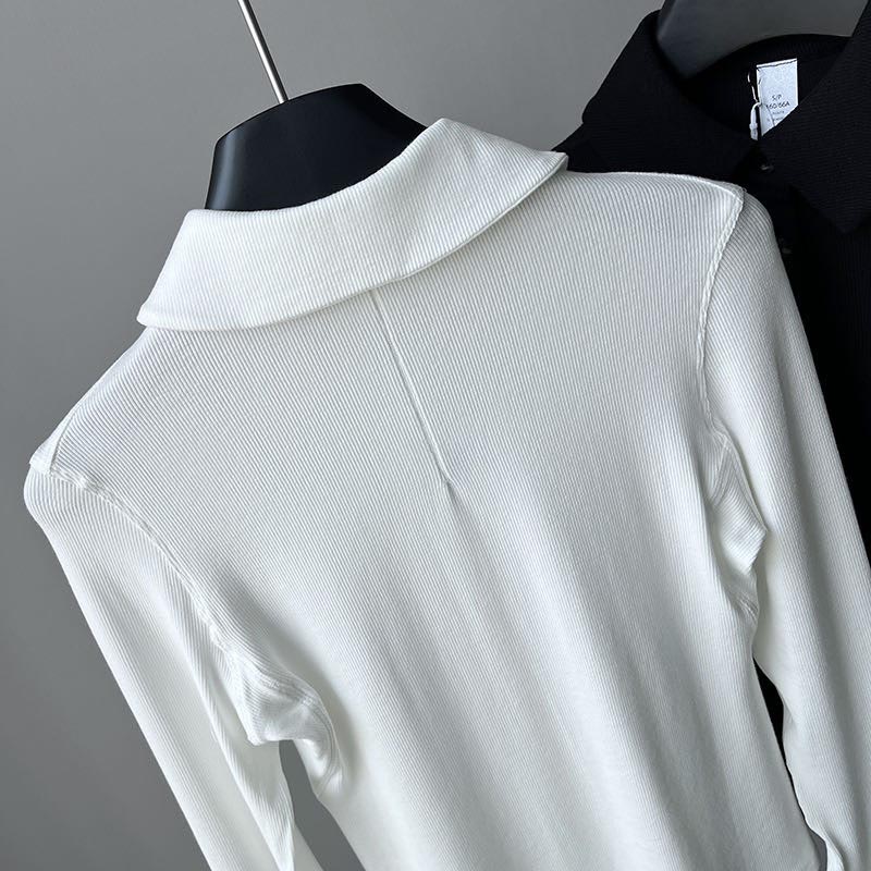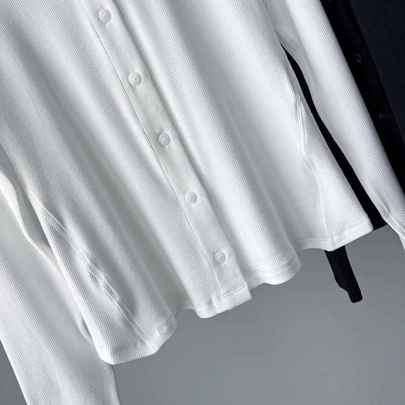 洛诗琳22023气质纯色翻领衬衫2025新款莫代尔修身显瘦上衣0109