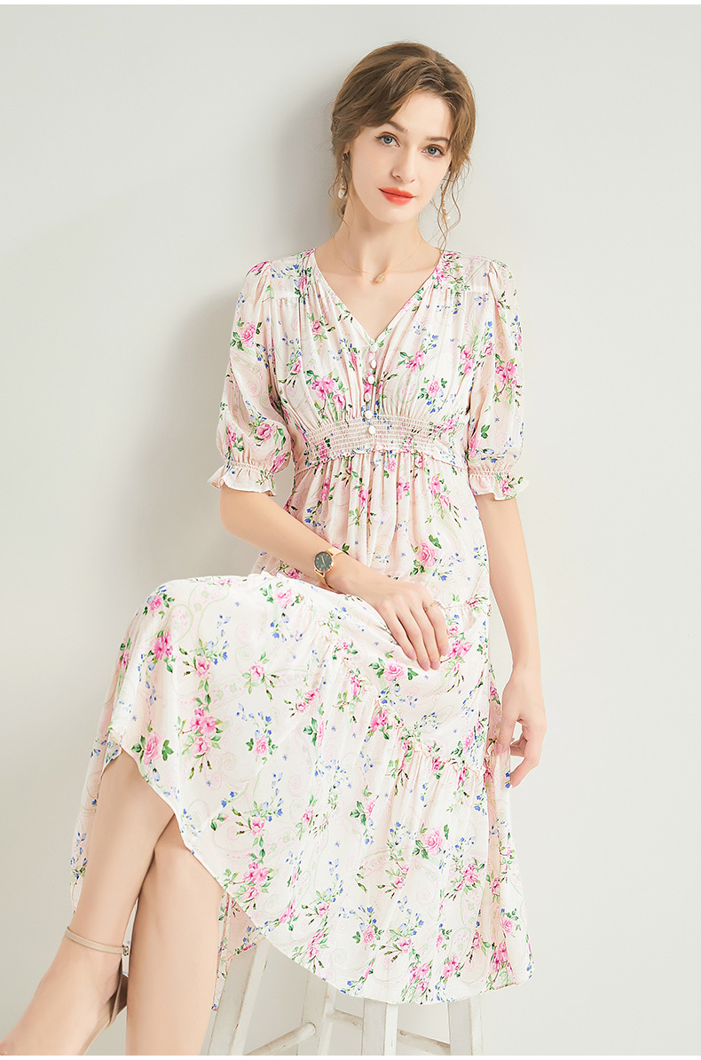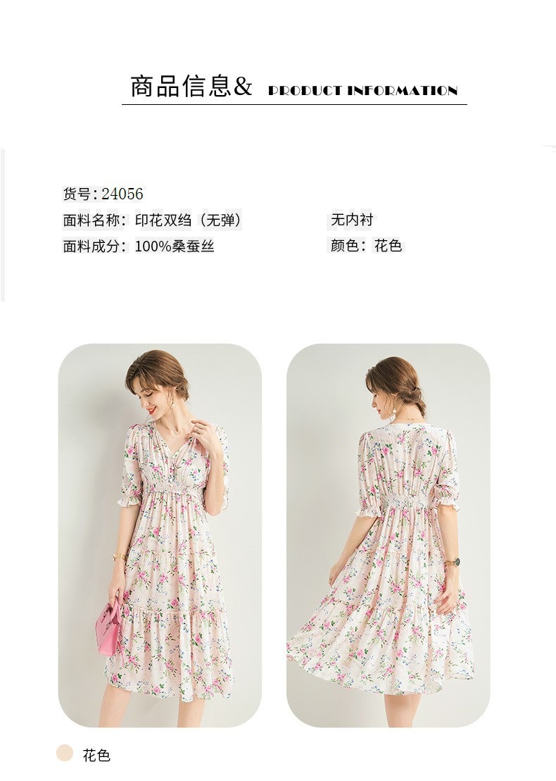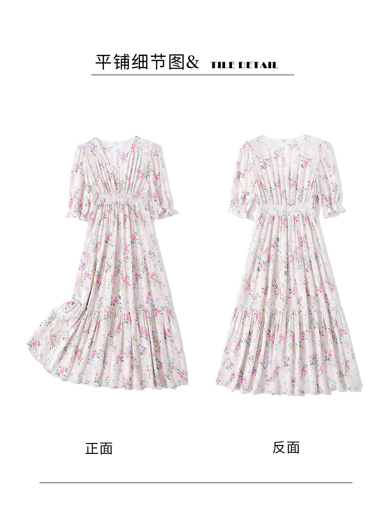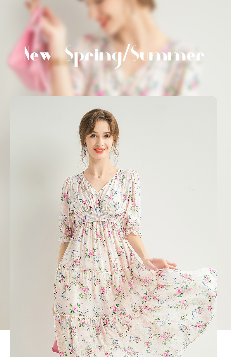 「高货kbnq」全新升级【铂金会员487/天猫659/差价172】(72117)洛诗琳法式V领印花裙2025夏季气质长款碎花真丝连衣裙女