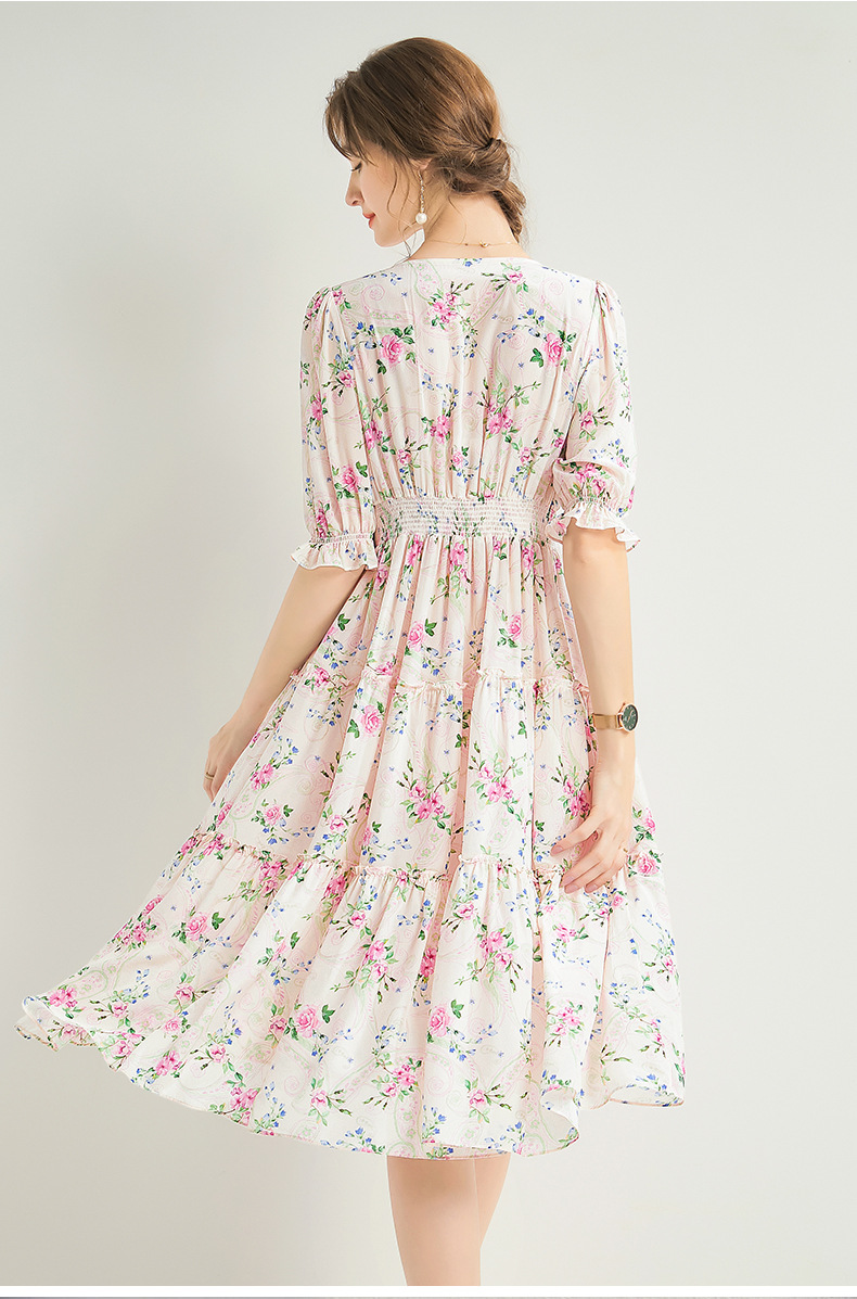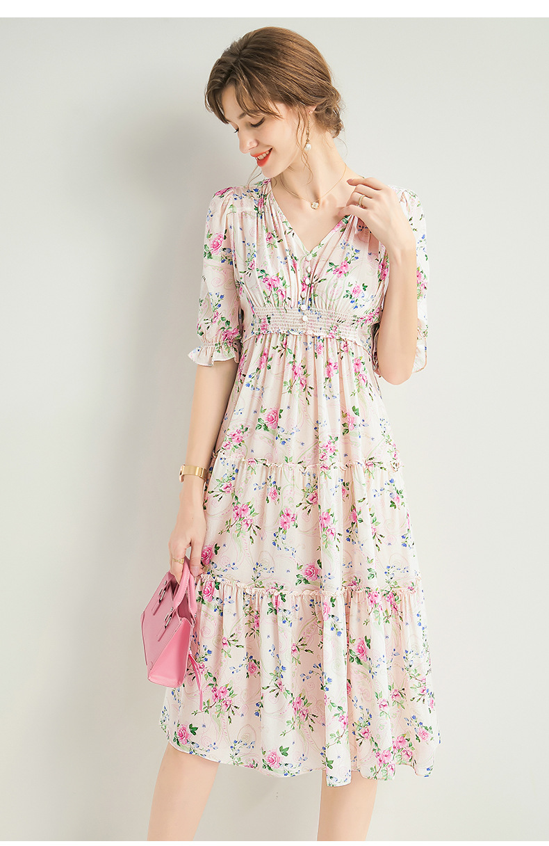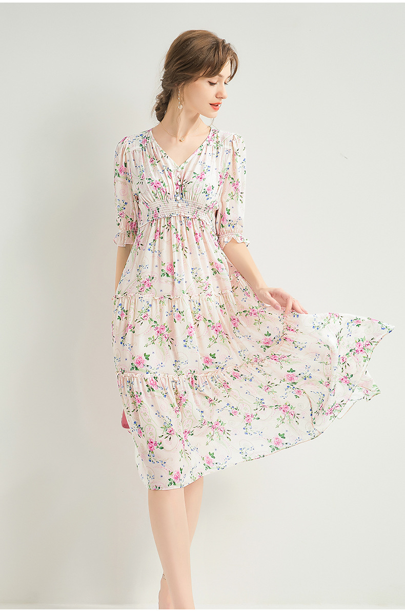 「高货kbnq」全新升级【铂金会员487/天猫659/差价172】(72117)洛诗琳法式V领印花裙2025夏季气质长款碎花真丝连衣裙女