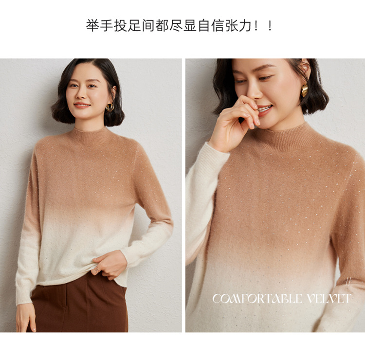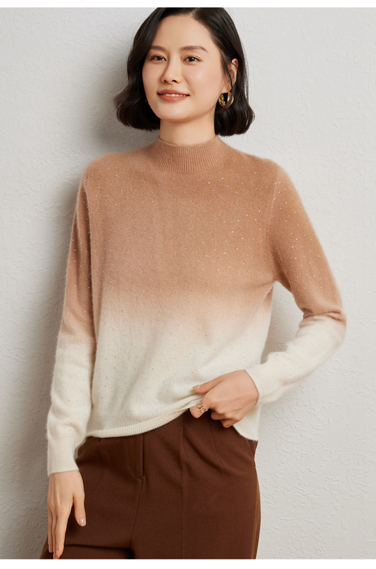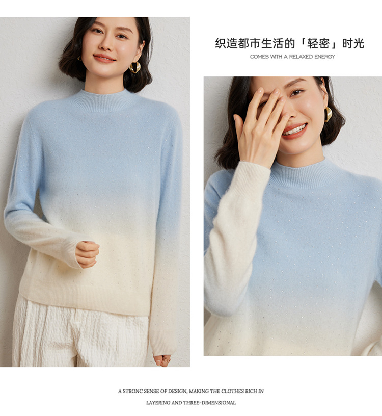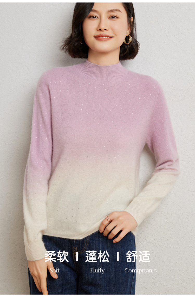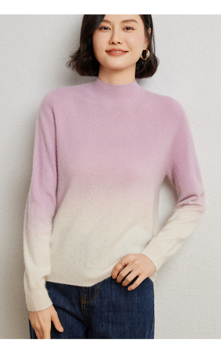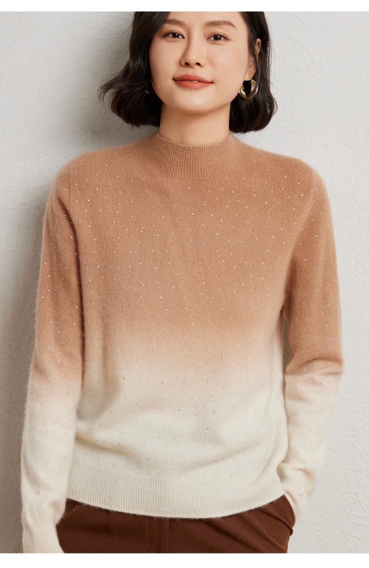 「老顾客福利羊绒羊毛衫」秋冬新款重工吊染烫钻羊绒衫女2025渐变色宽松套头毛衣显瘦羊毛打底衫73433