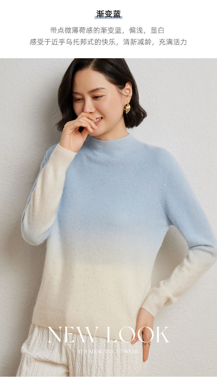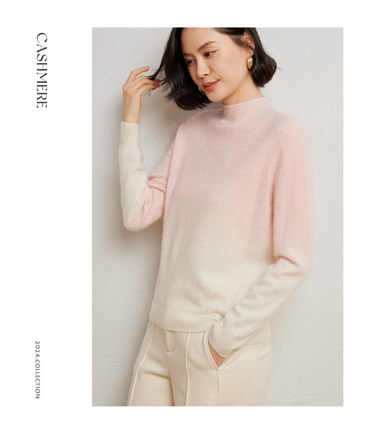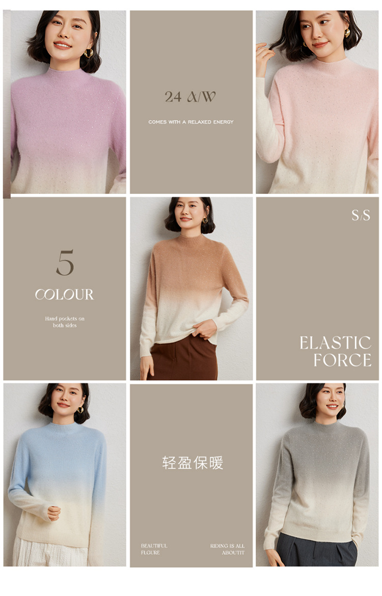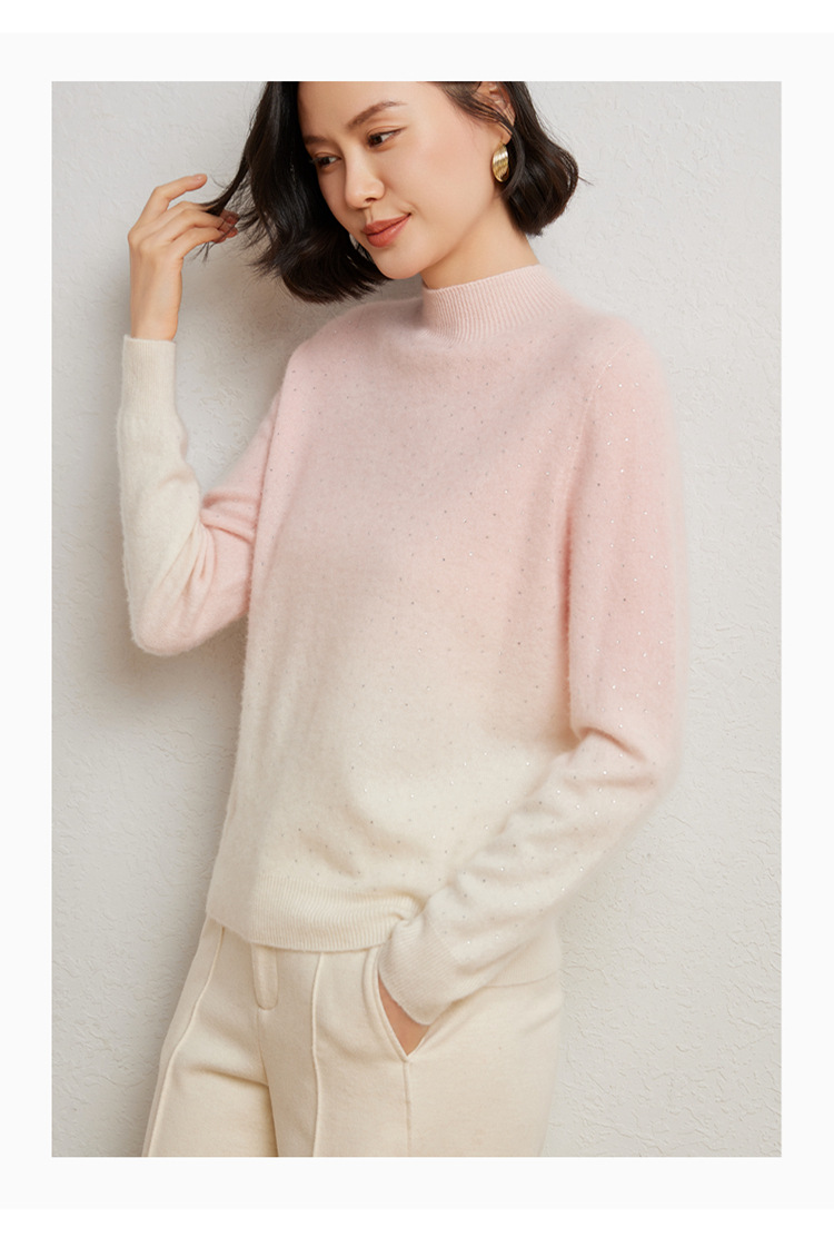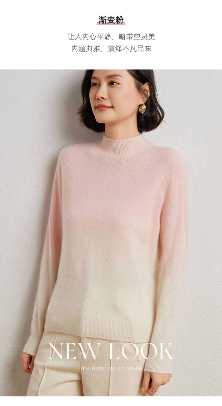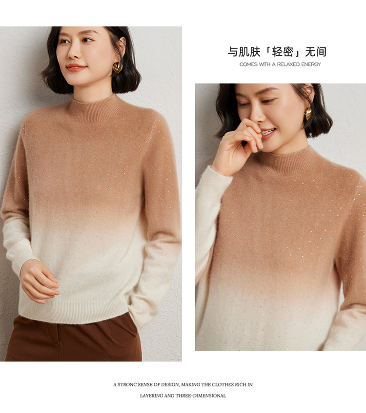 「老顾客福利羊绒羊毛衫」秋冬新款重工吊染烫钻羊绒衫女2025渐变色宽松套头毛衣显瘦羊毛打底衫73433