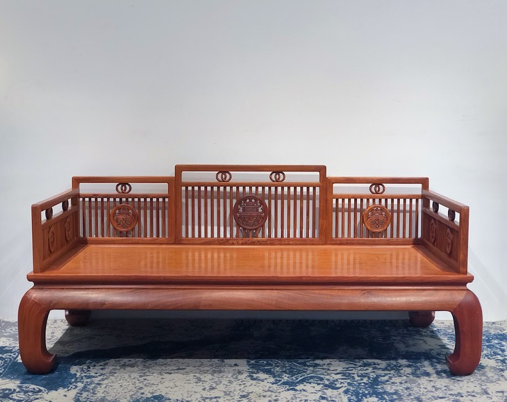 条子栏杆 弯腿罗汉床 两件套