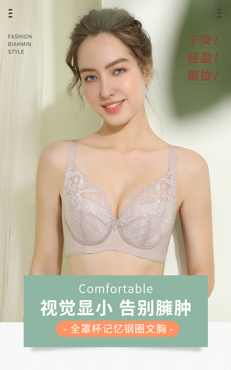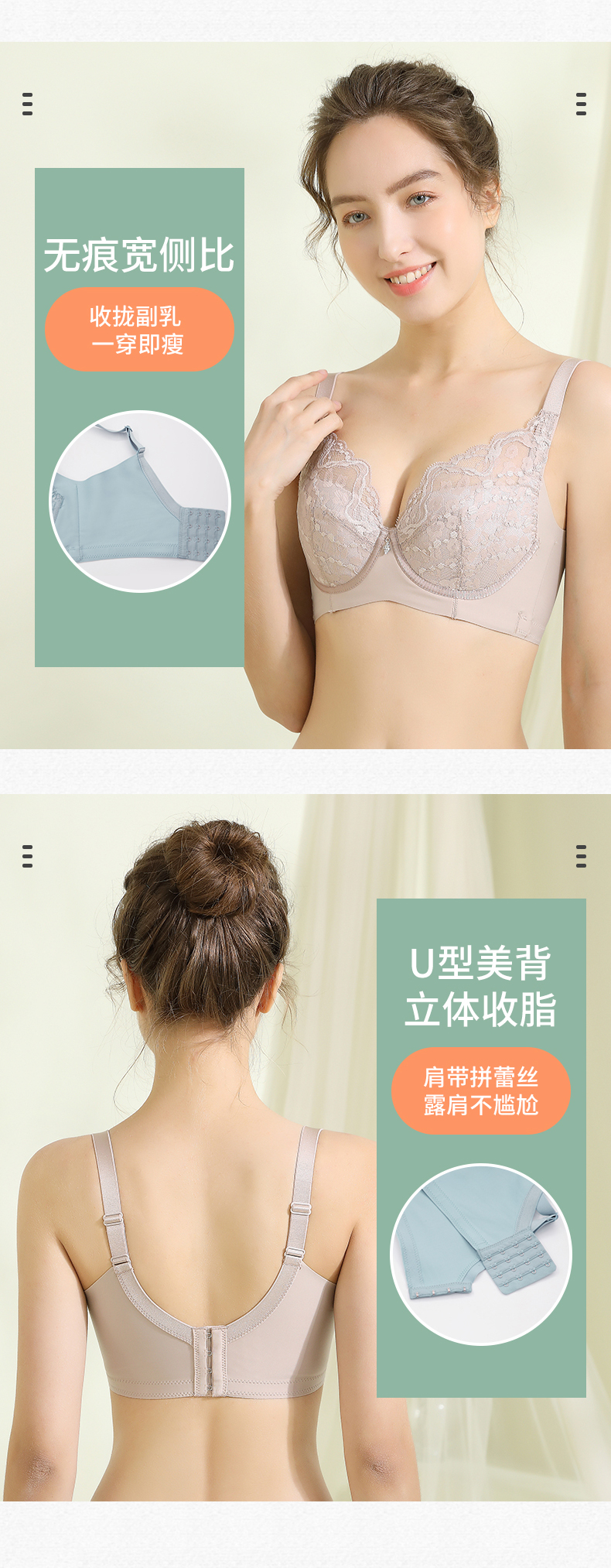 贝佳人新聚拢文胸蕾丝收副乳大显小美背调整内衣全包胸罩BW92903