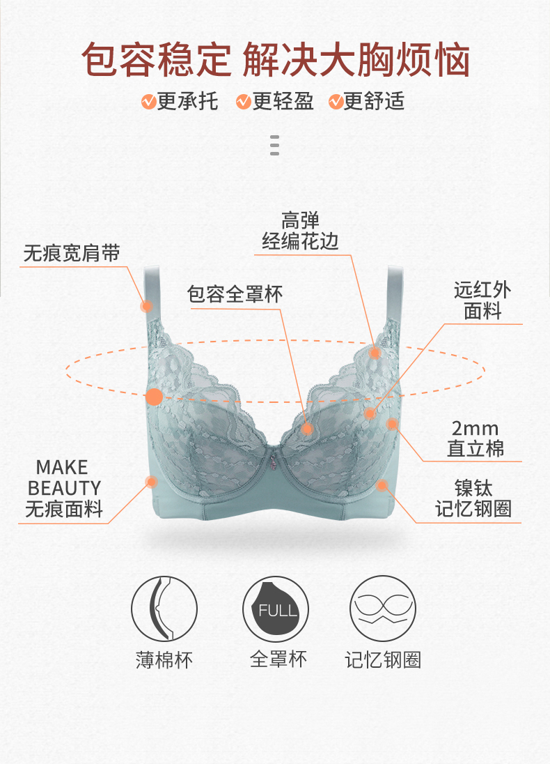 贝佳人气质蕾丝软钢圈大码文胸内衣女全罩杯包容不空杯BW982007