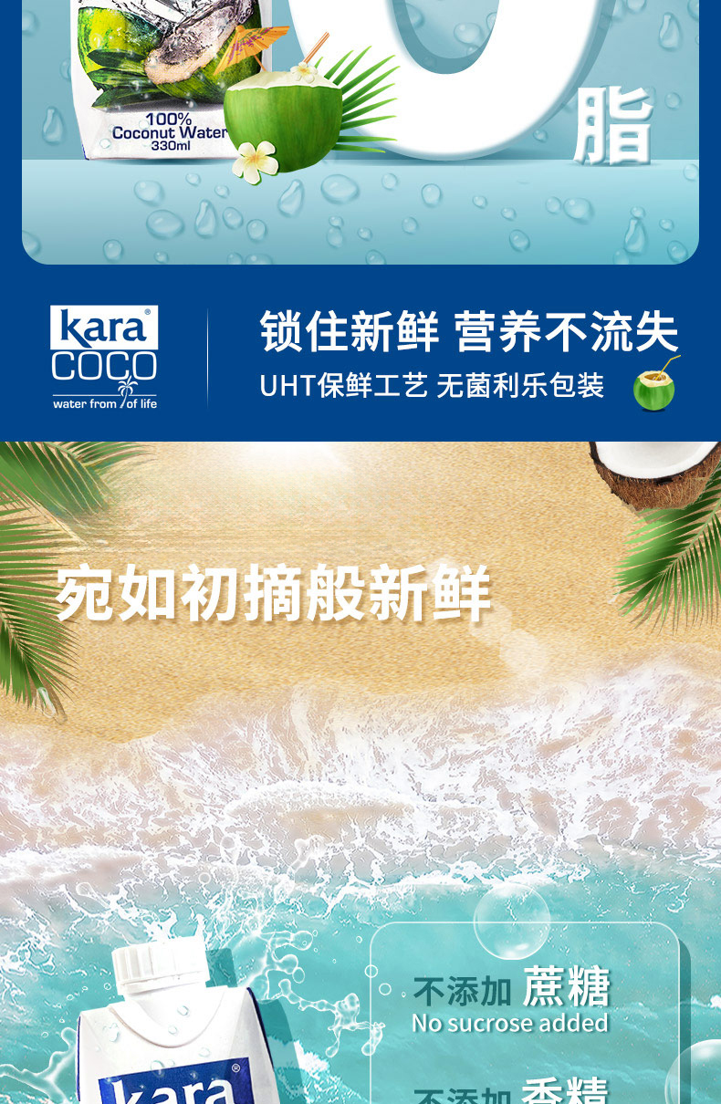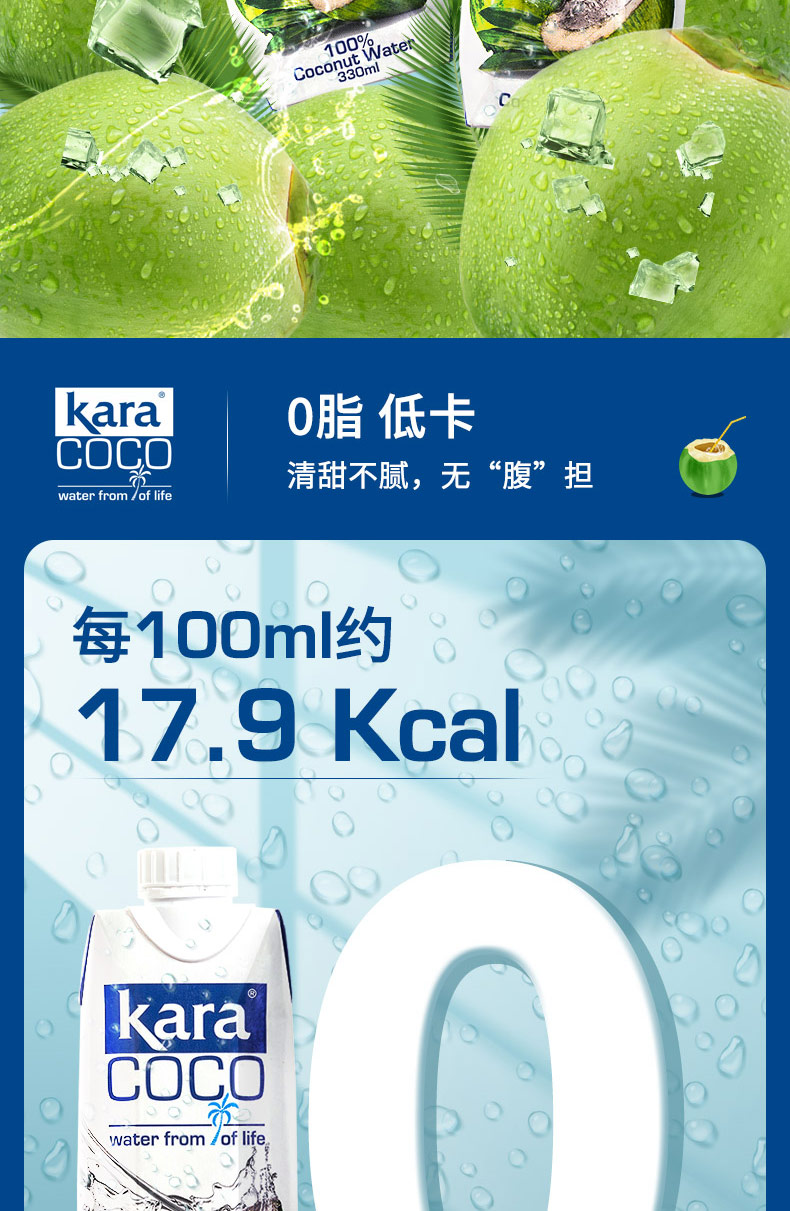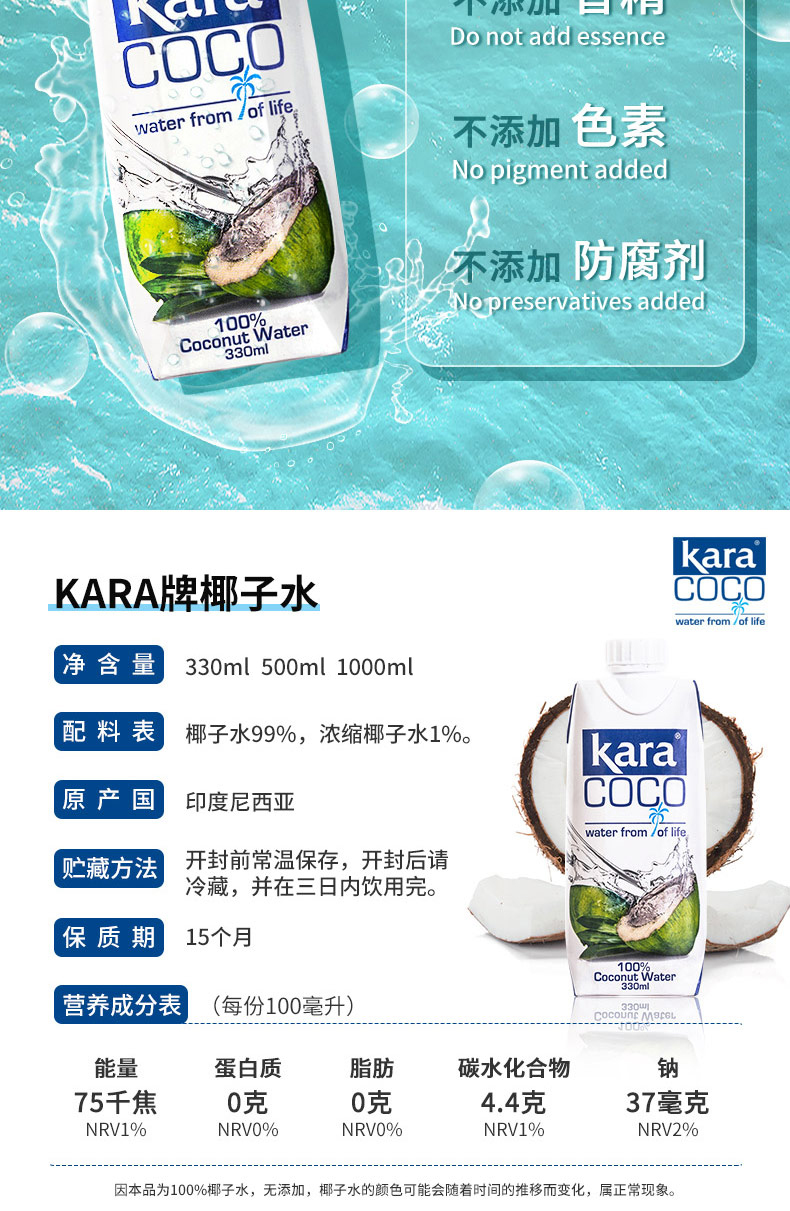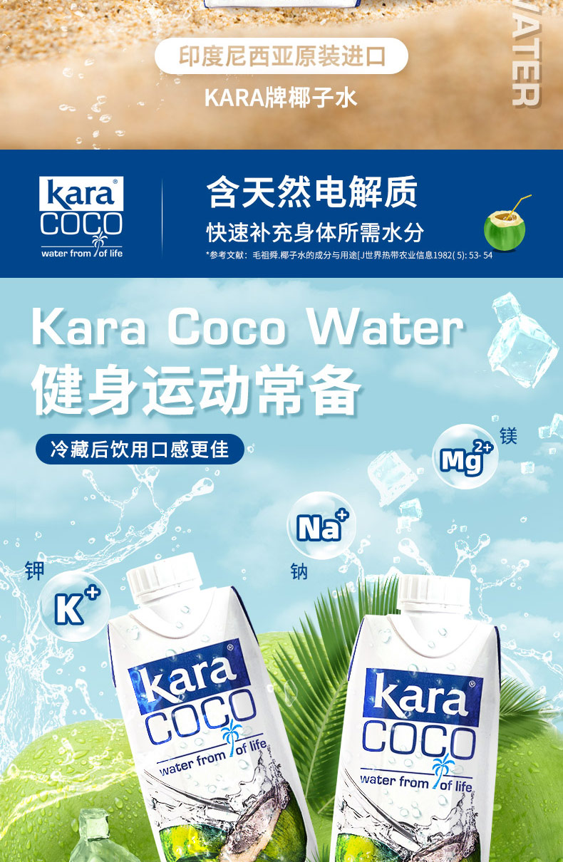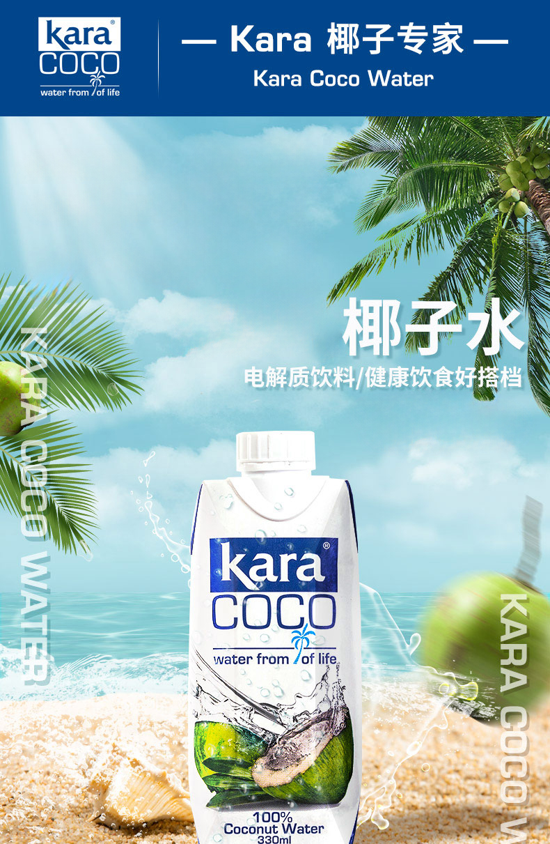 Kara椰子水 | 330ml*12瓶 电解质饮料 印度尼西亚进口 自有生态椰林 无菌利乐包装