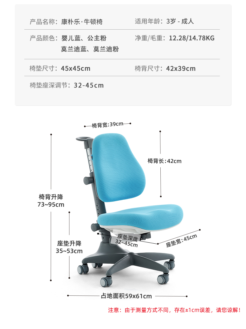 3岁+ 康朴乐气压棒升降学习桌 | 布朗桌+牛顿椅 90cm 简约百搭 适合不同户型 S 型背椅 随时保护脊柱 尺寸:90cm*80cm,送椅套+桌垫