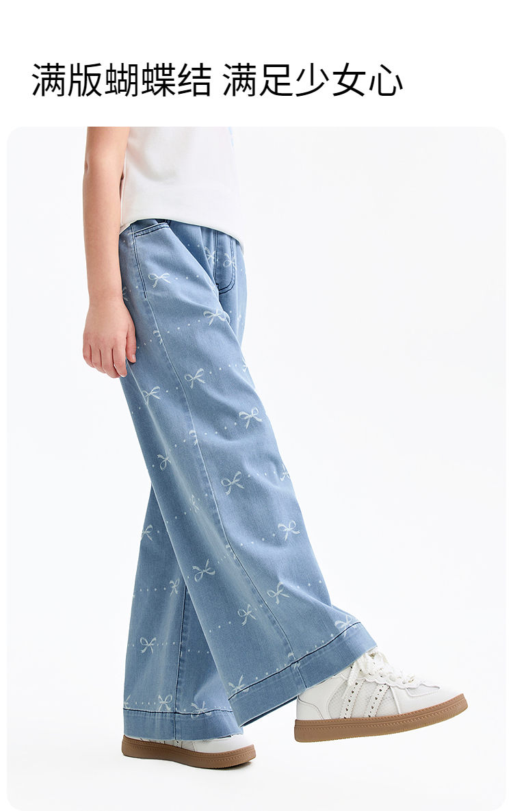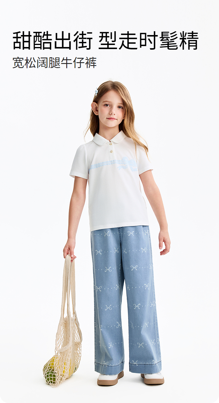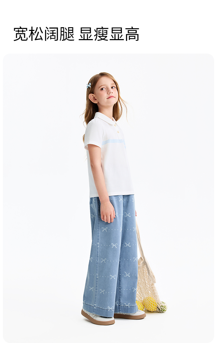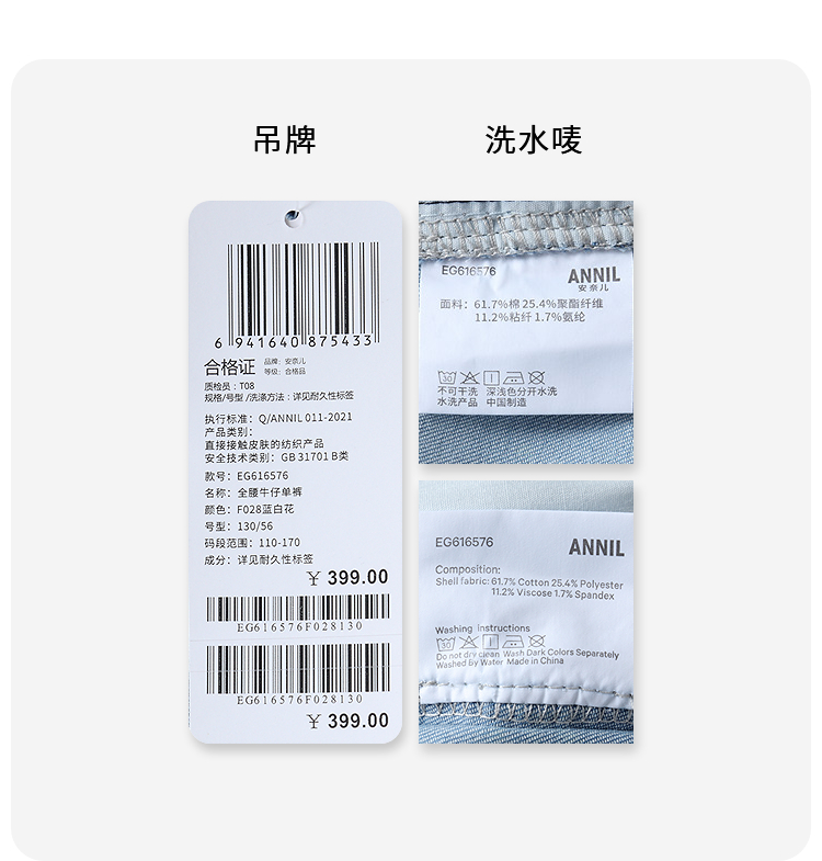 女童全腰牛仔单裤春季新款安奈儿童装EG616576