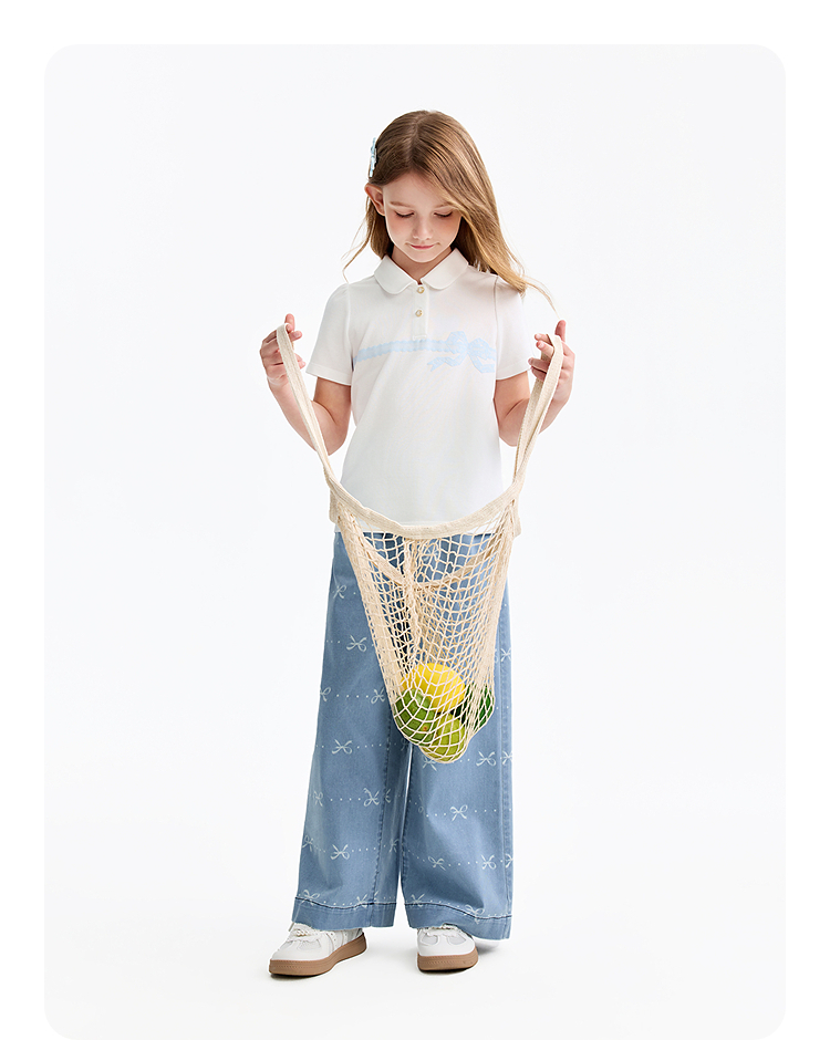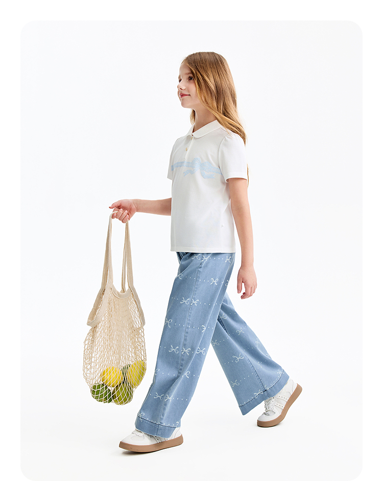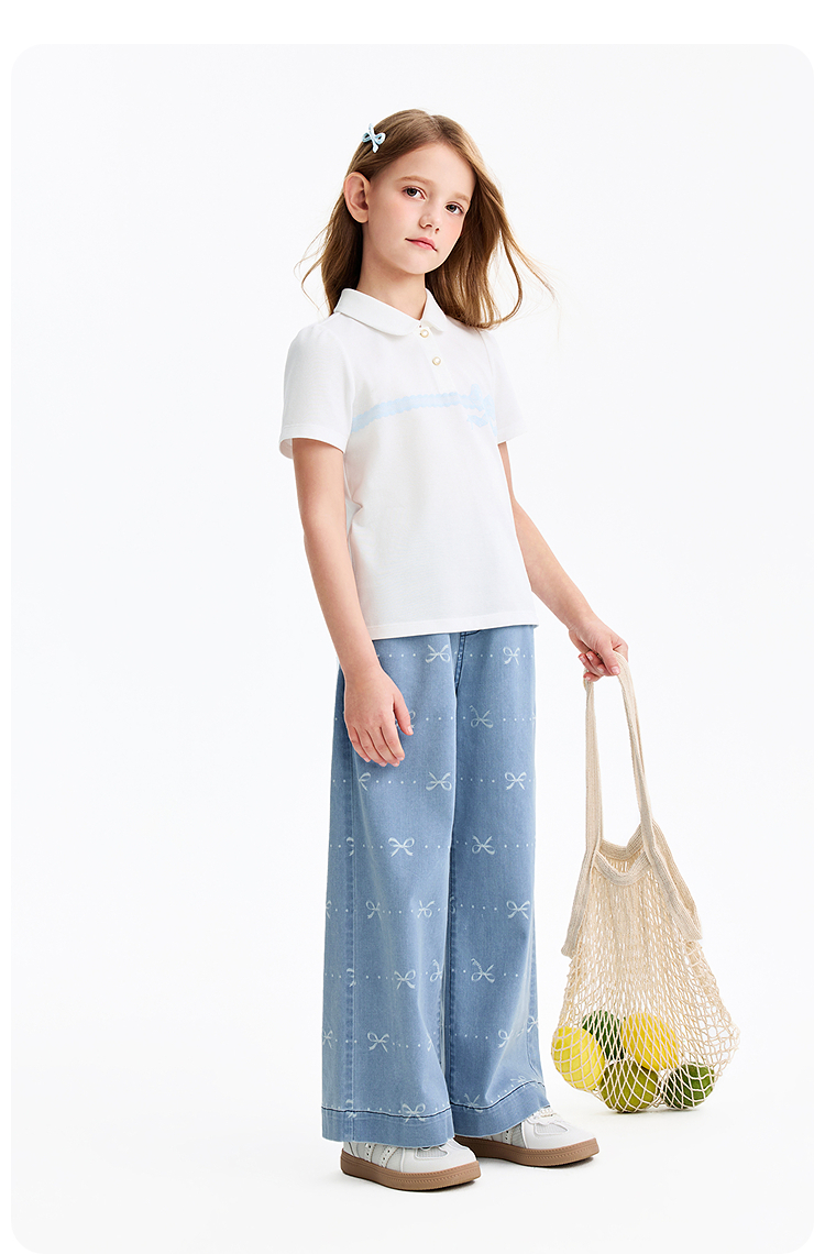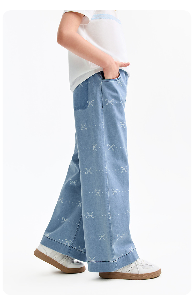 女童全腰牛仔单裤春季新款安奈儿童装EG616576
