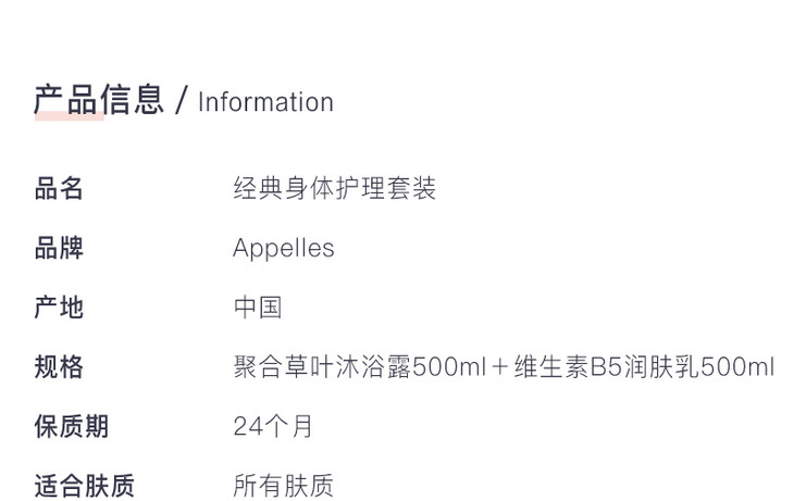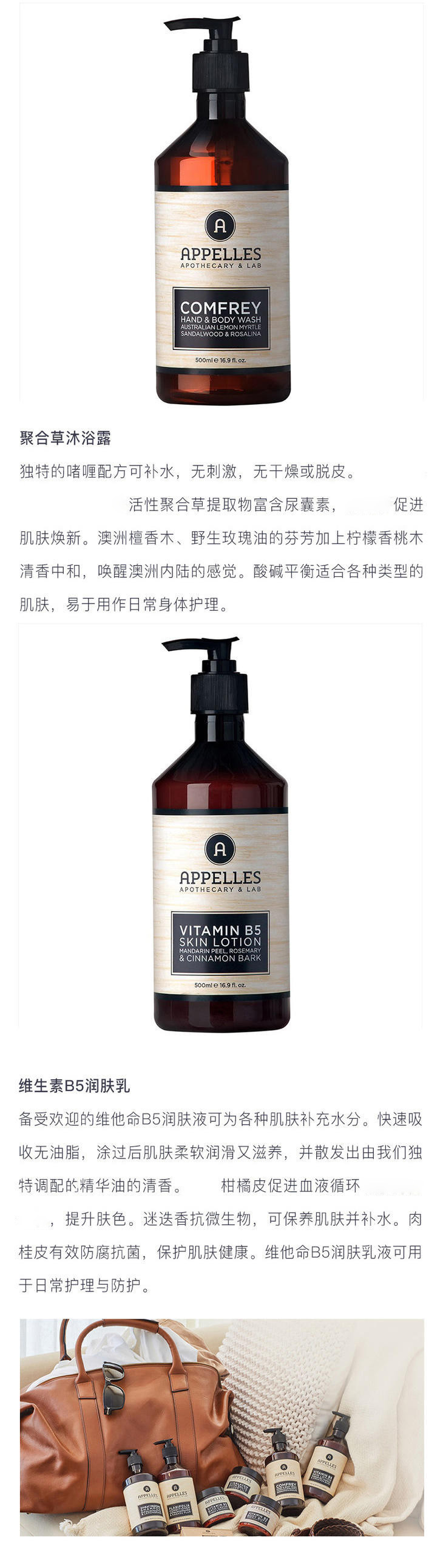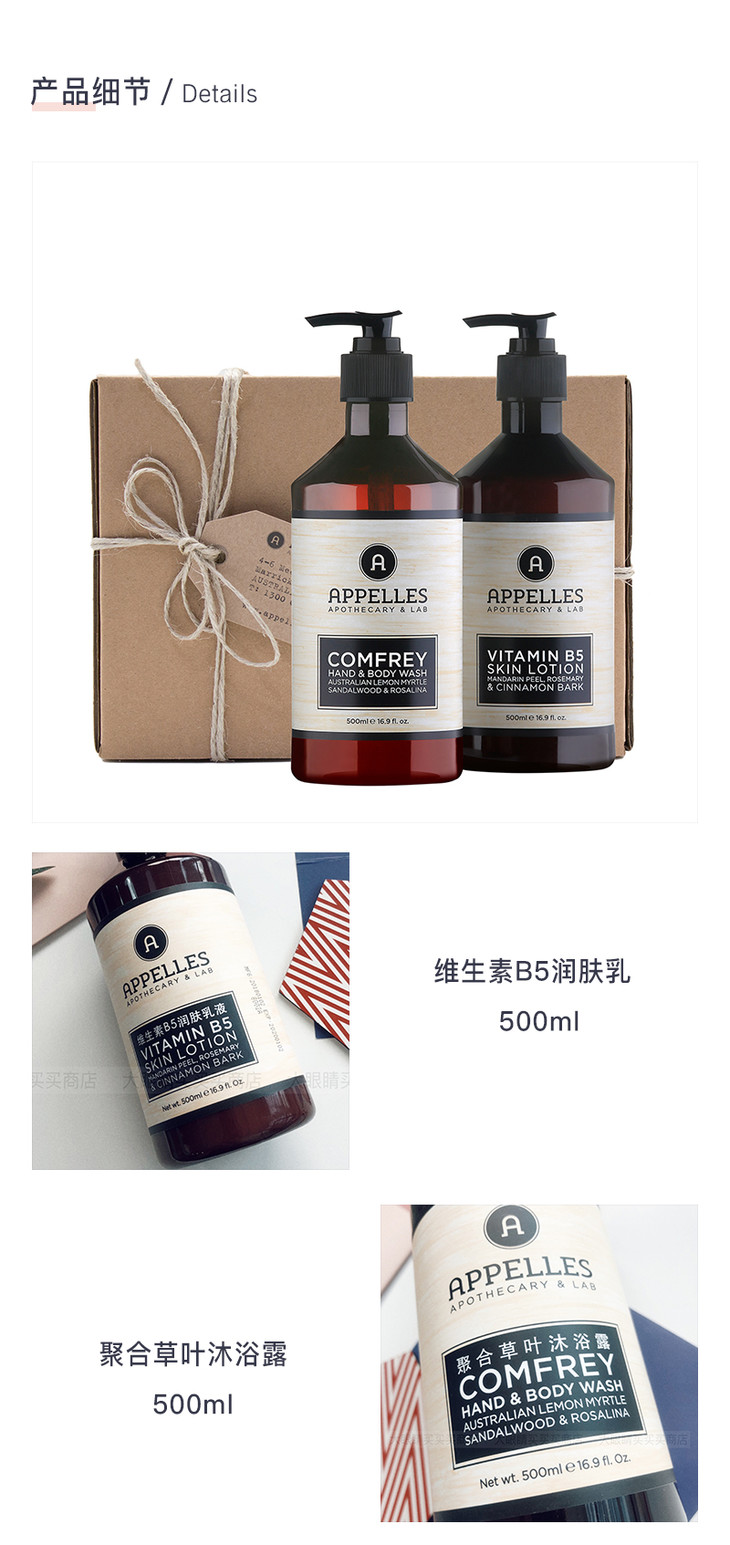 现货 维护肌肤健康状态 Apelles经典身体护理套装 聚合草叶沐浴露500ml+维生素B5润肤乳500ml 国内发货