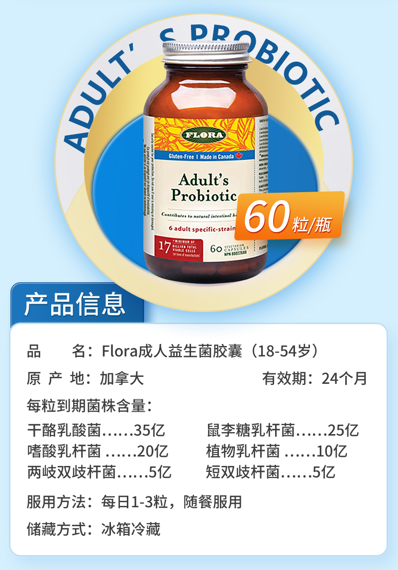 【FLORA】加拿大富兰 益生菌60粒/瓶 针对各年龄层设计