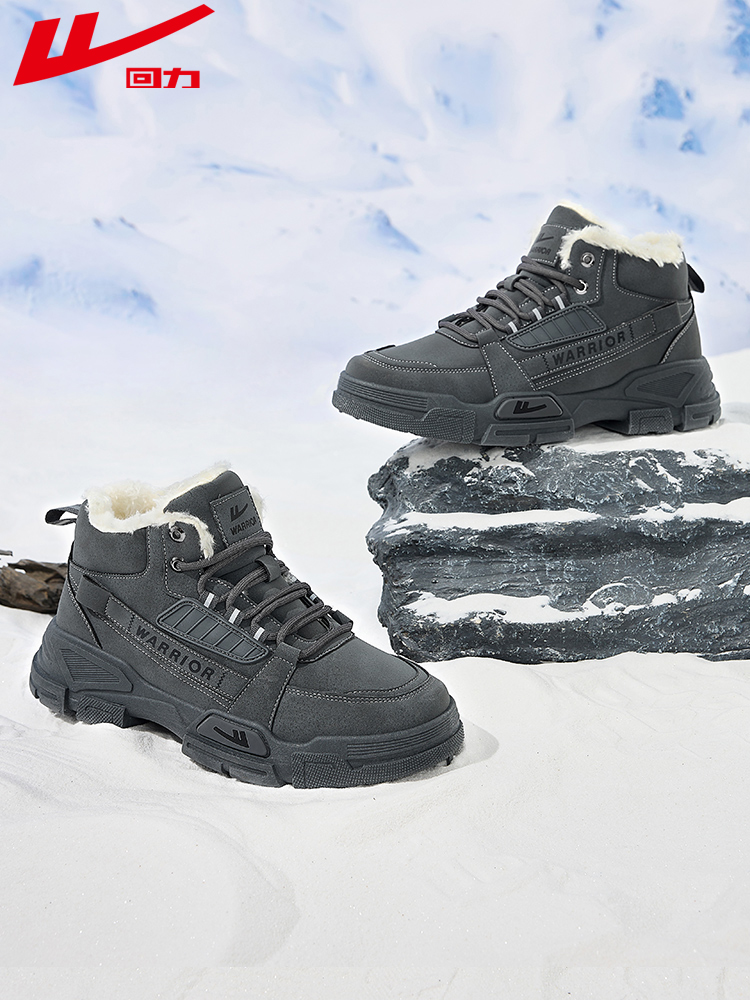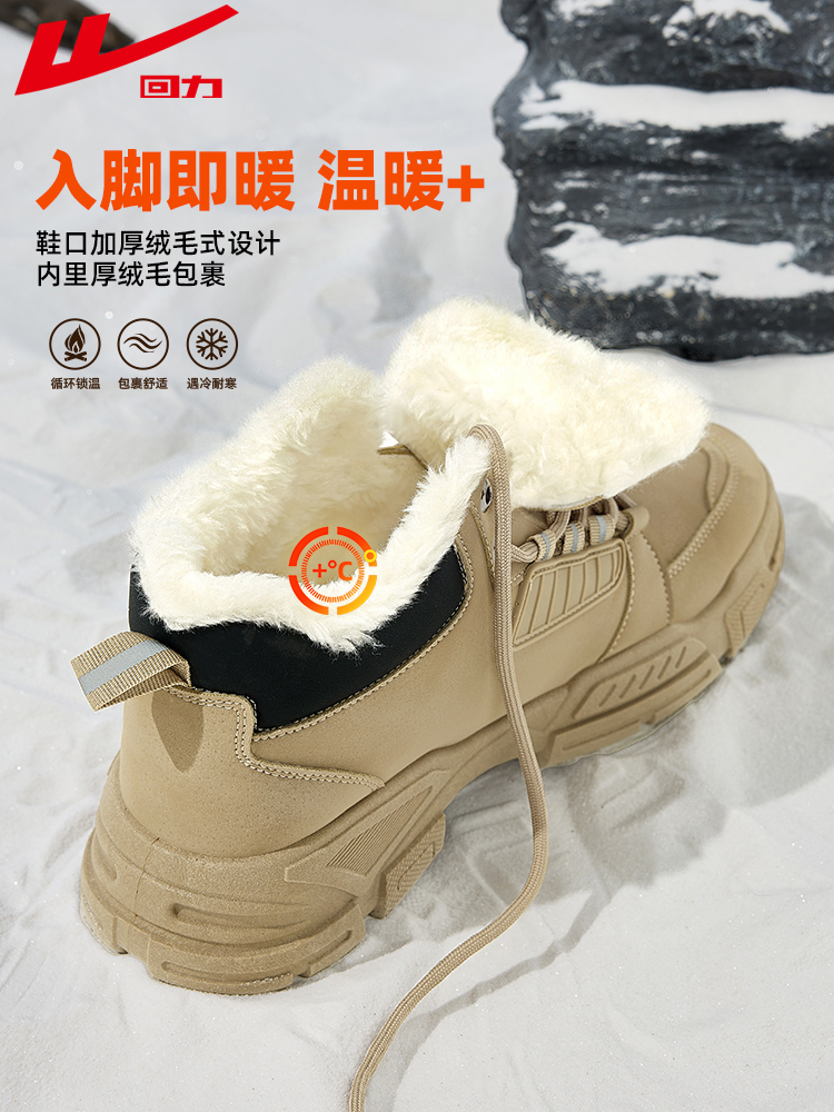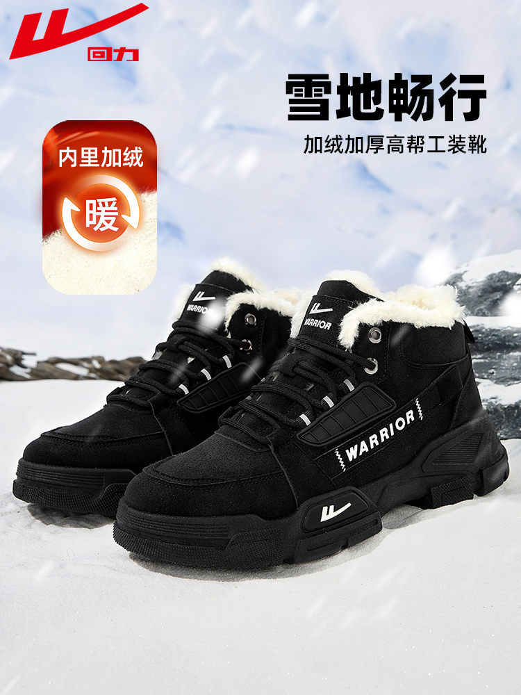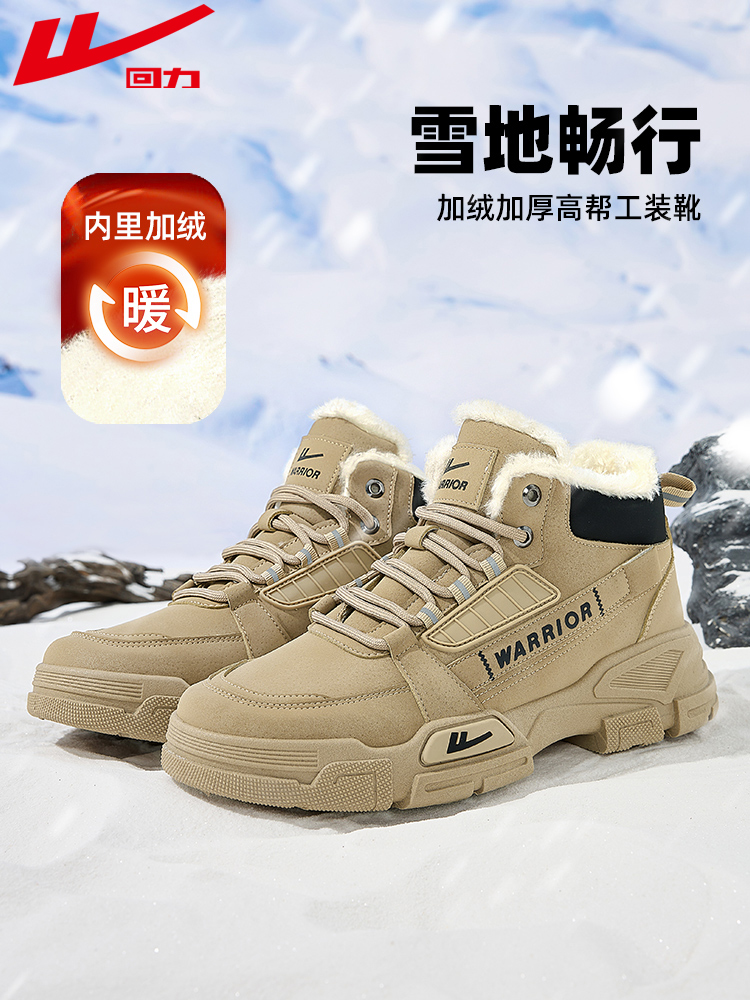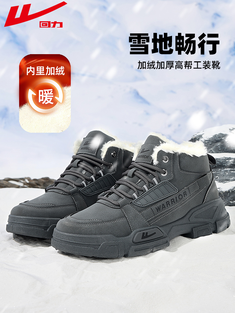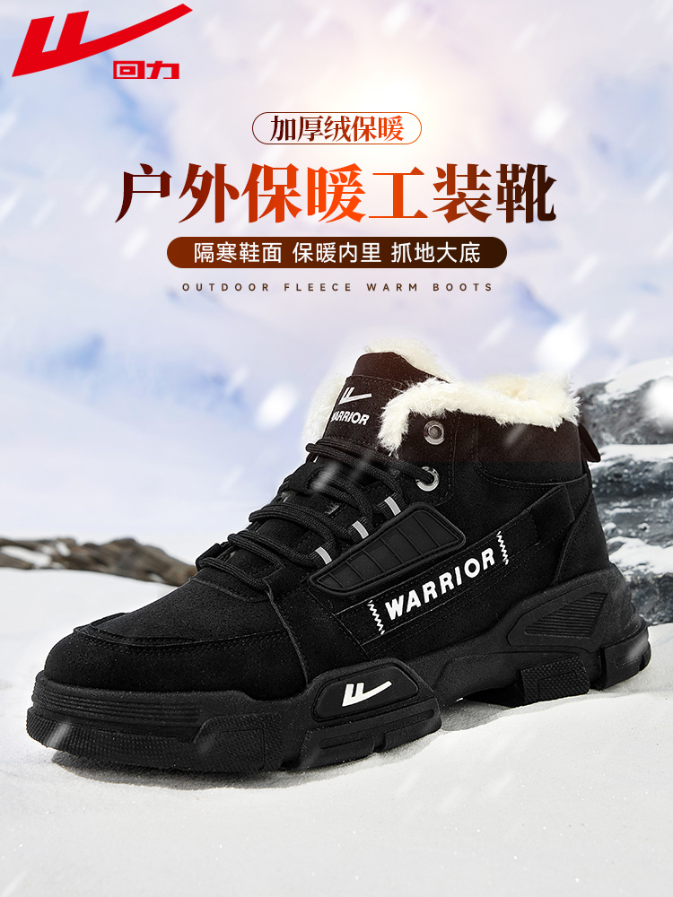 回力棉鞋男款冬季加绒工装鞋东北男鞋冬加厚户外登山鞋男士马丁靴