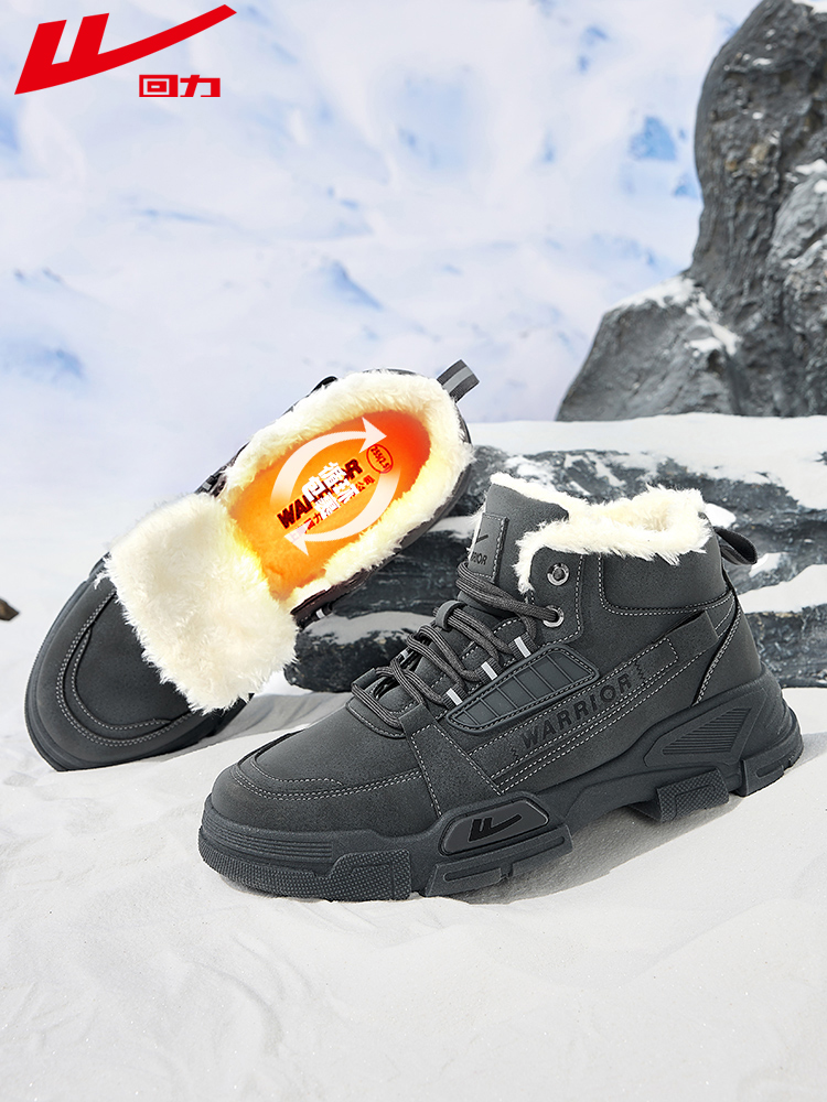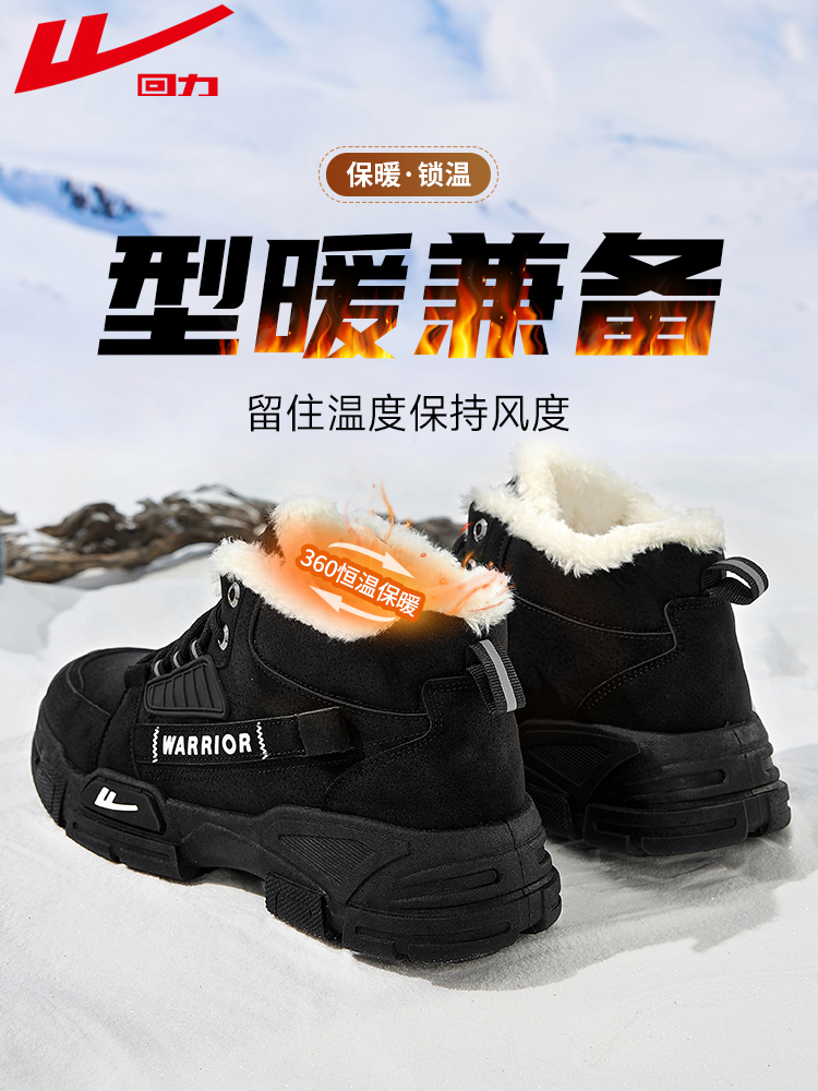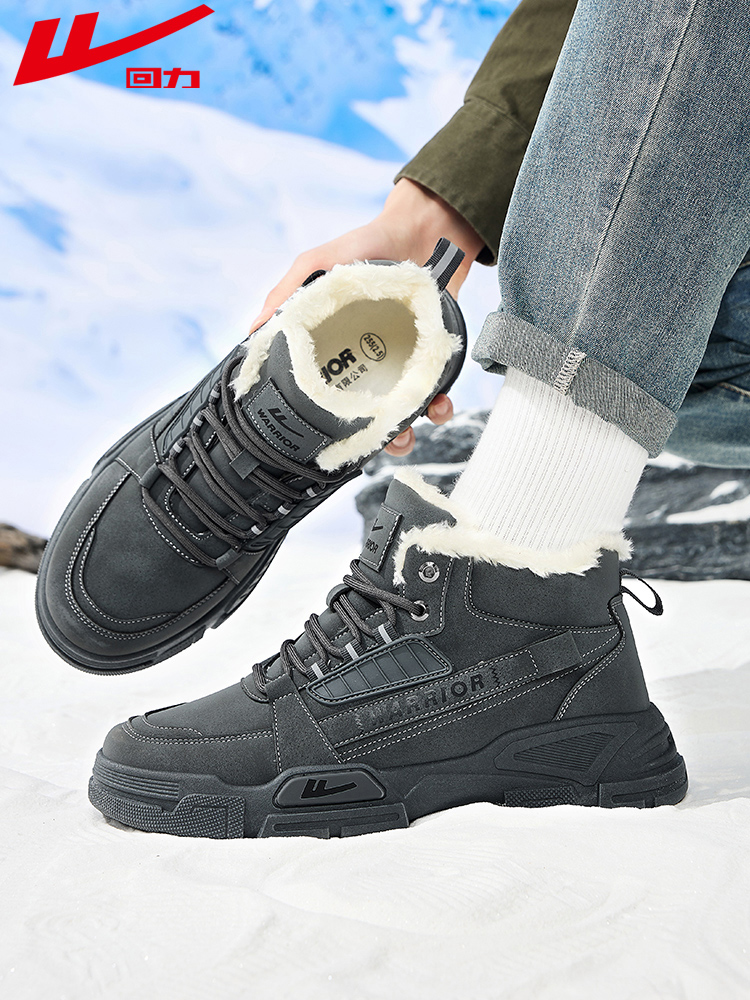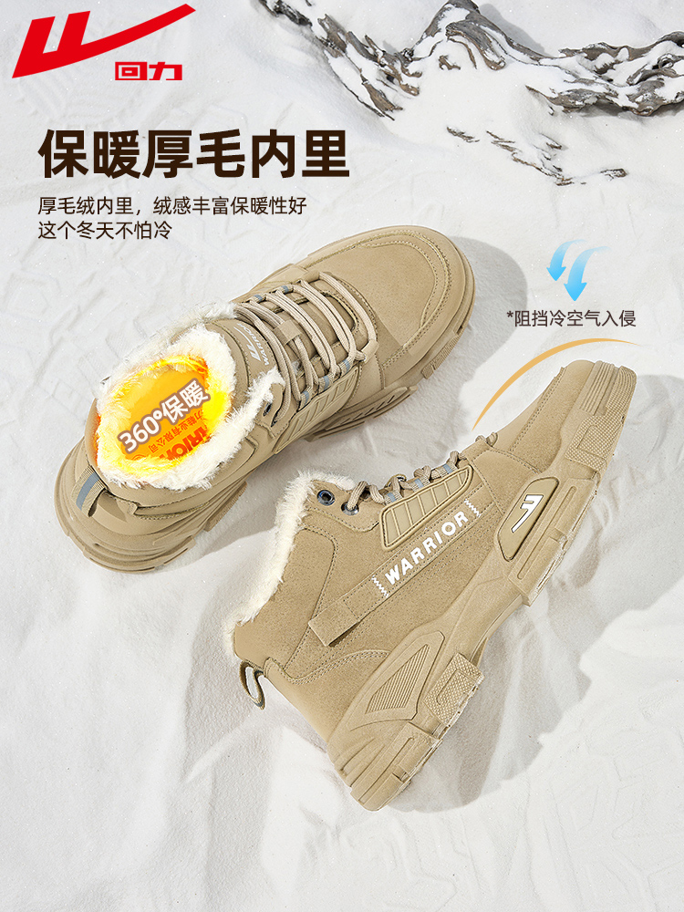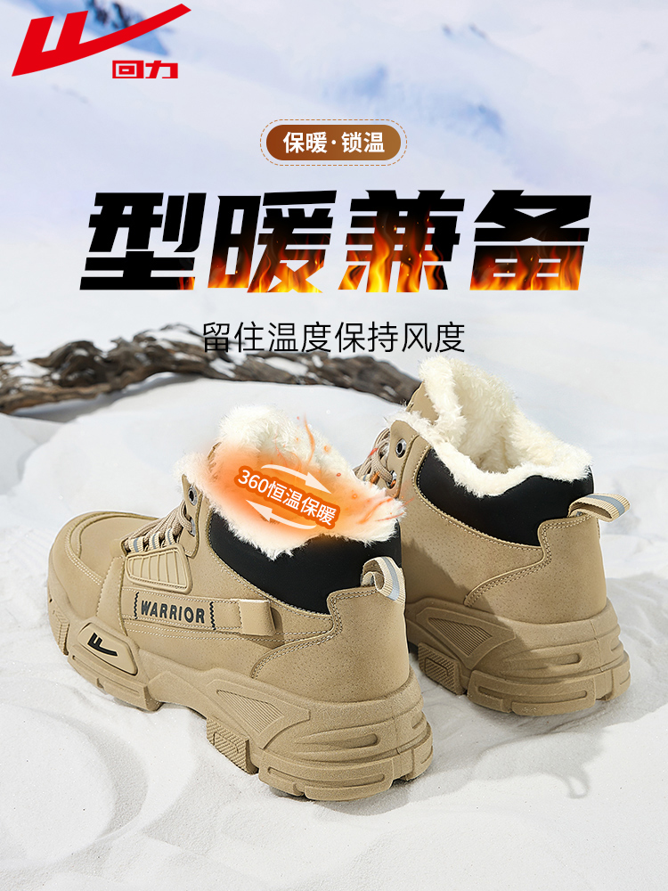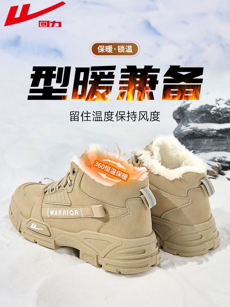 回力棉鞋男款冬季加绒工装鞋东北男鞋冬加厚户外登山鞋男士马丁靴