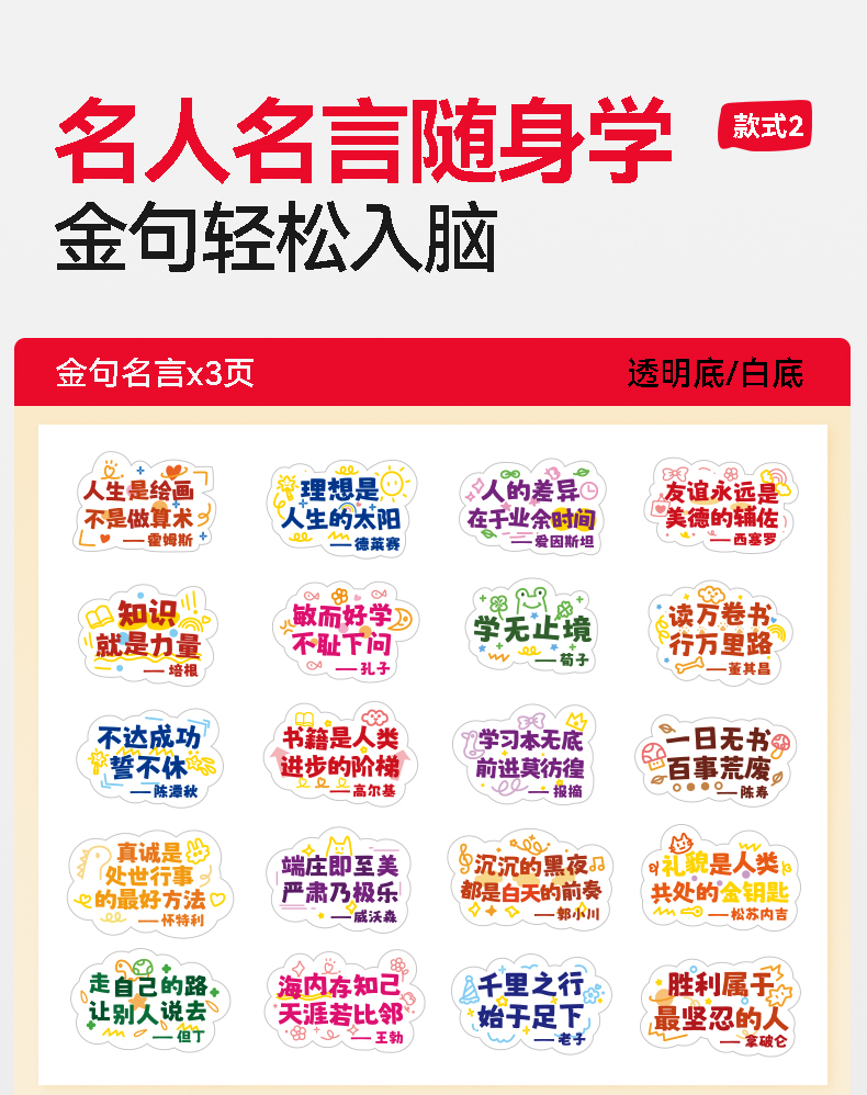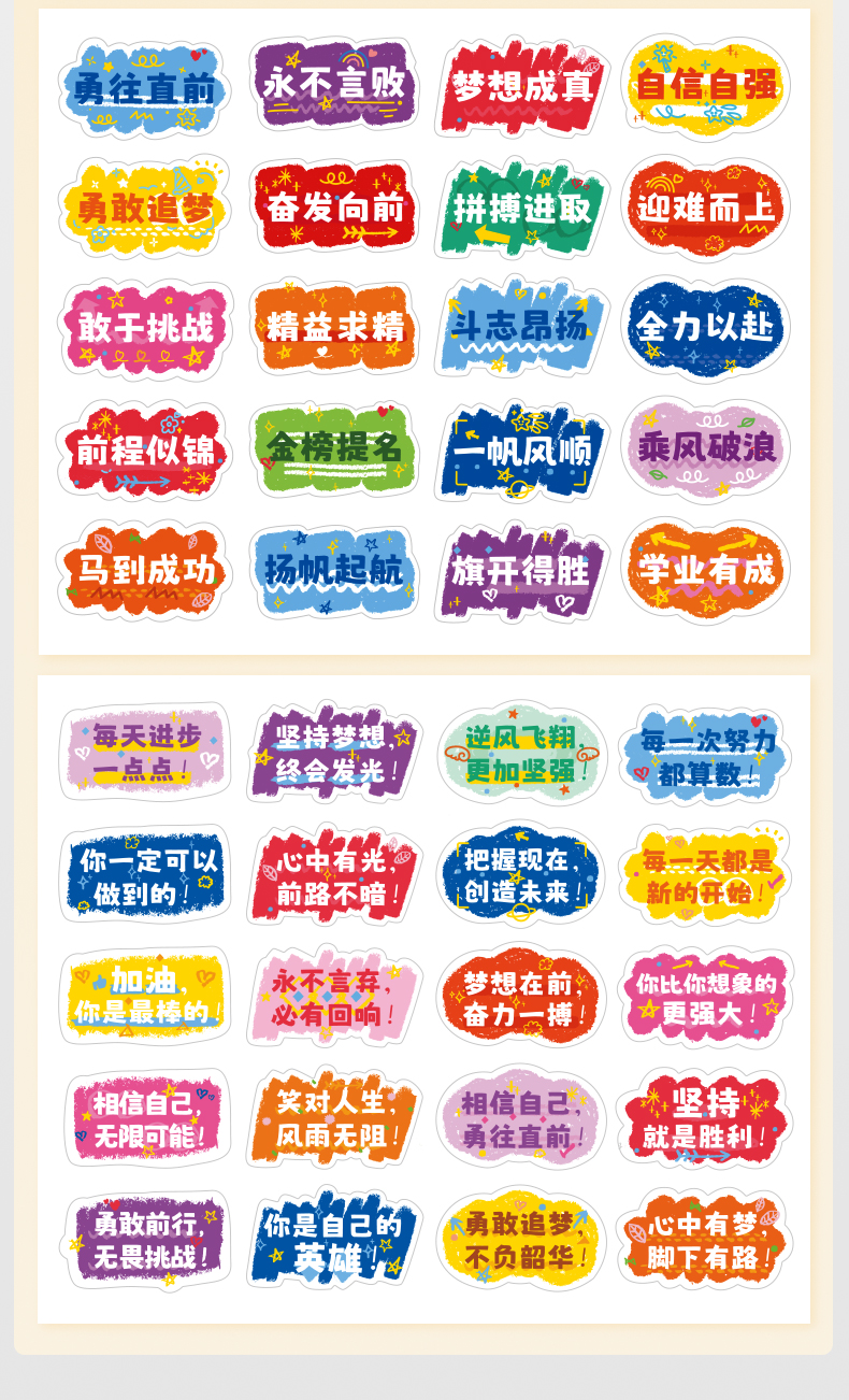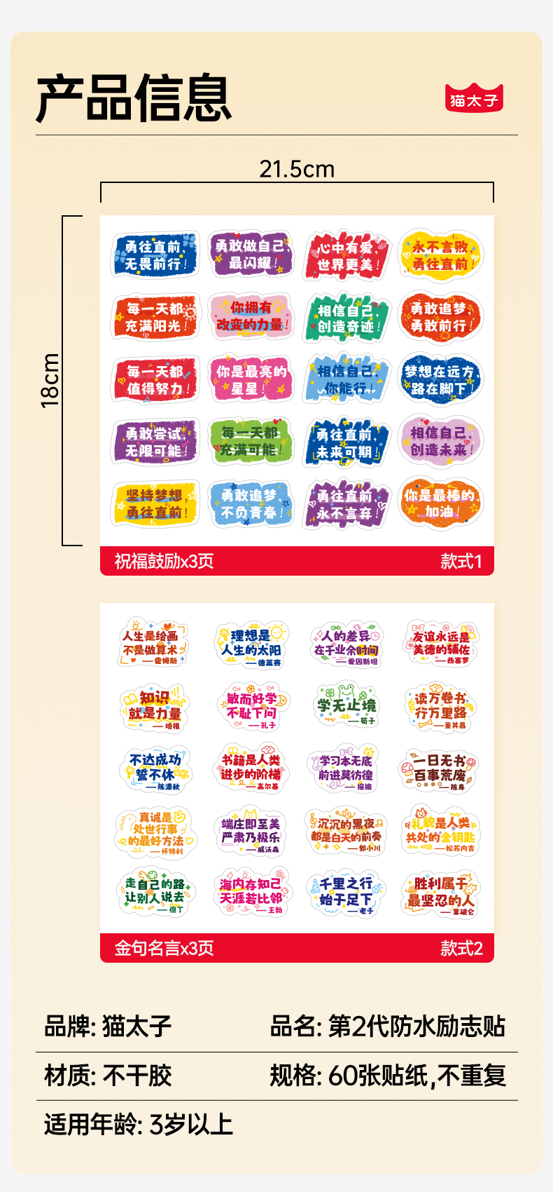【开学季】【限时秒杀】猫太子 励志贴纸防水励志金句名人名言祝福语环保油墨随贴易撕不留痕贴纸