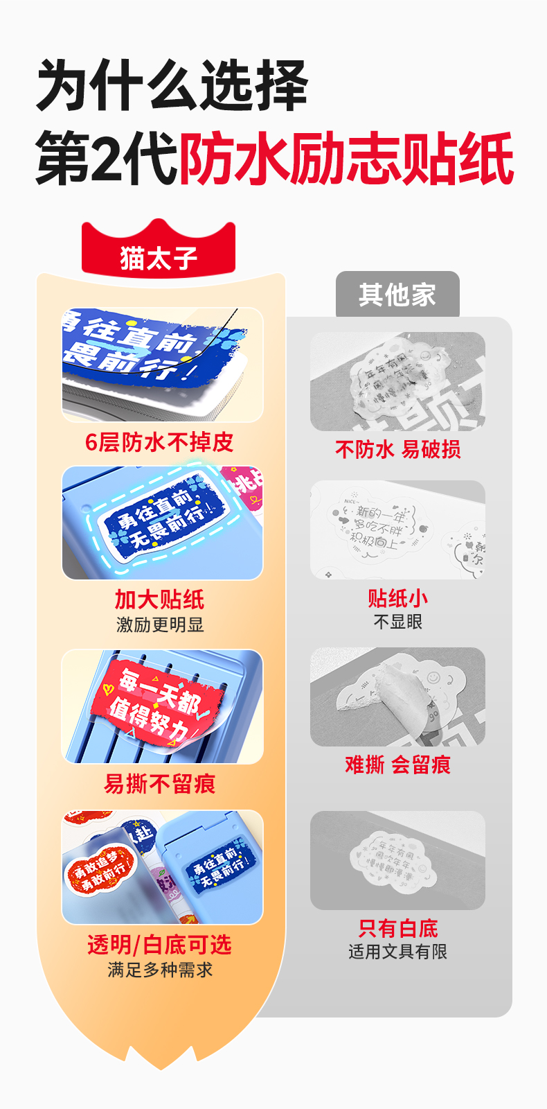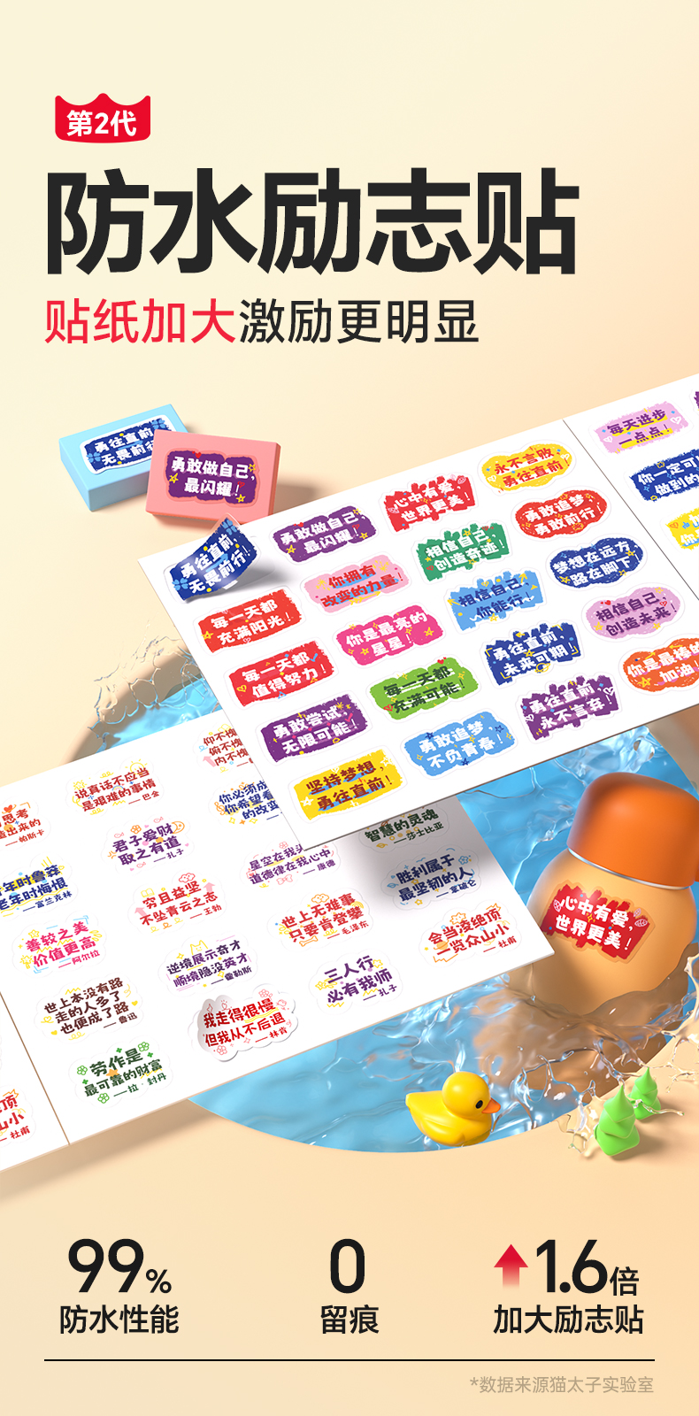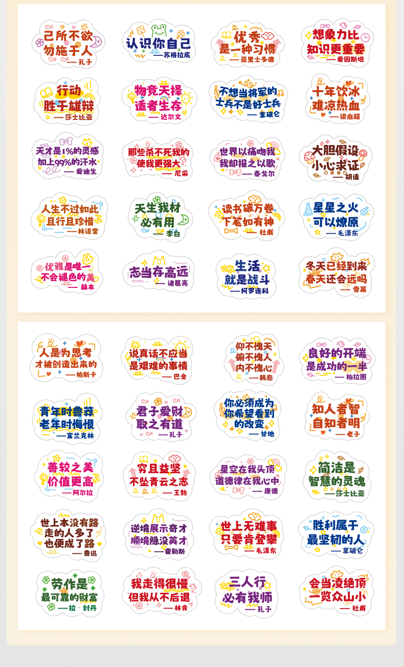 【开学季】【限时秒杀】猫太子 励志贴纸防水励志金句名人名言祝福语环保油墨随贴易撕不留痕贴纸