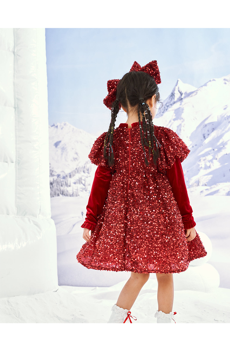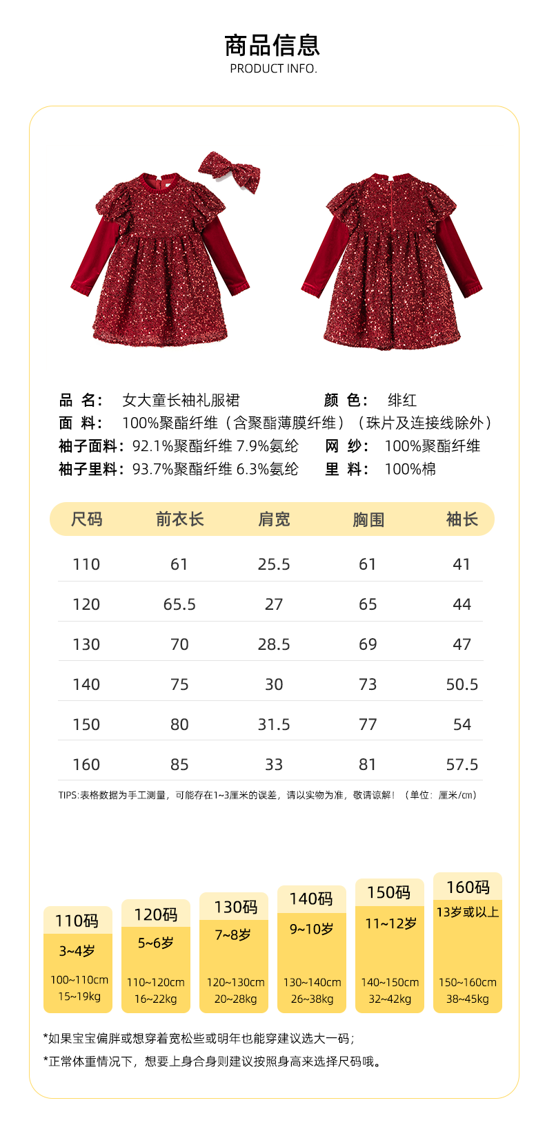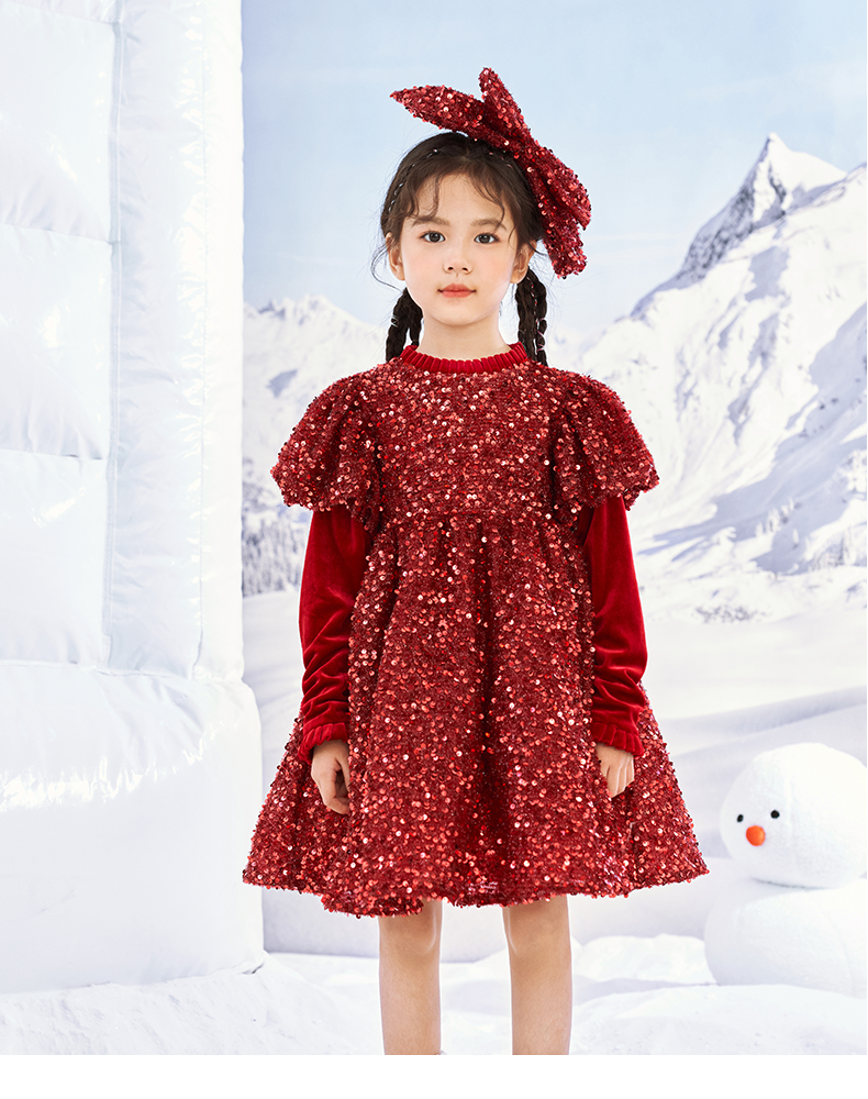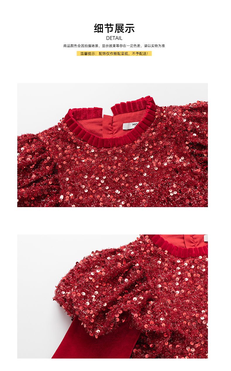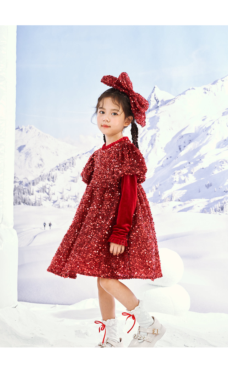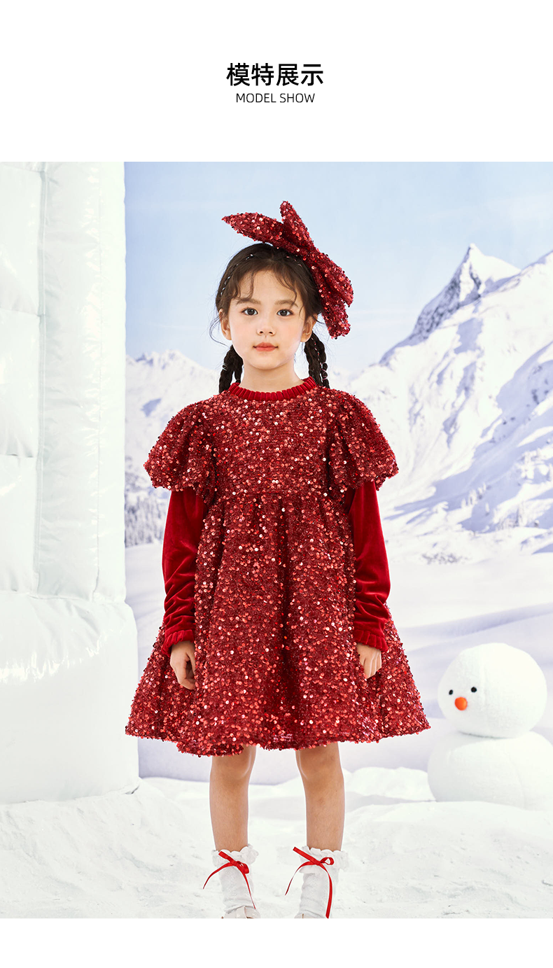 【秒】【MQD】【特】女大童冬季新款时尚个性可拆卸蝴蝶结公主风长袖礼服裙