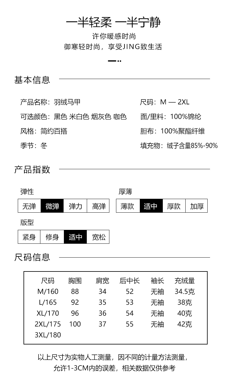 冬季新款,90白鸭绒打底外穿羽绒马甲HR-MXG2443