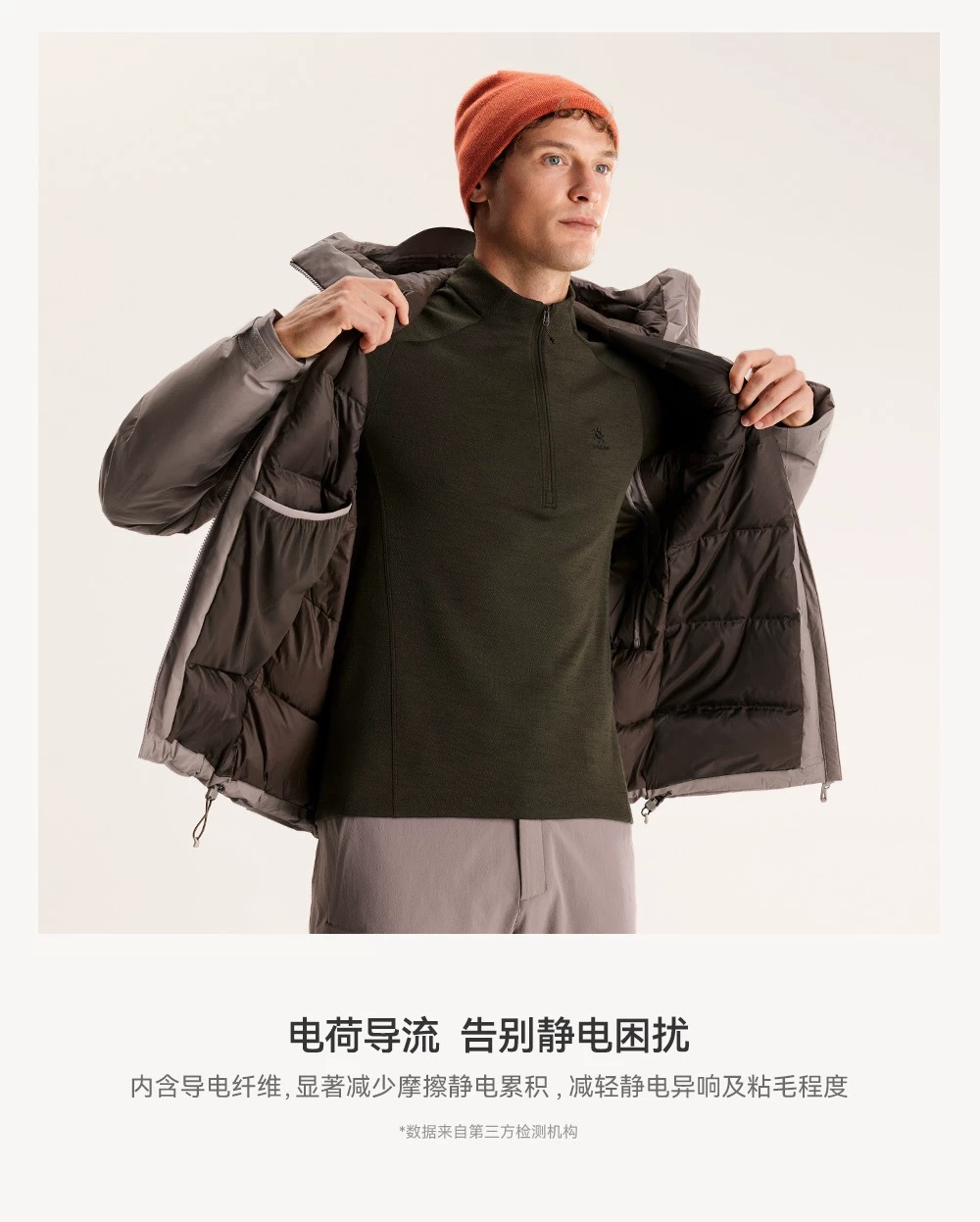内里人体学分仓充绒设计,便于活动更自如!