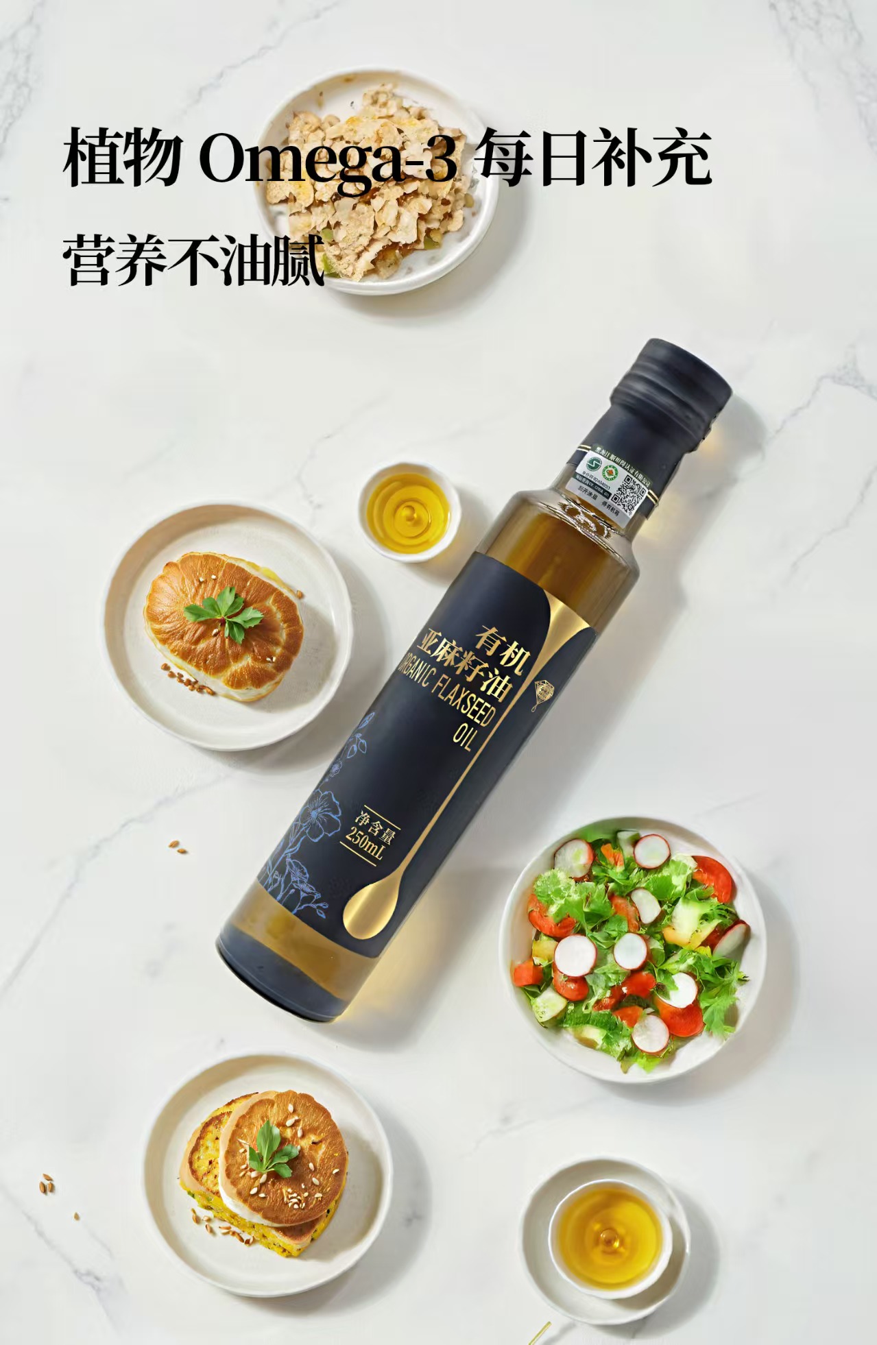 有机植物油系列 物理冷榨活性锁鲜 /有机亚麻籽粉 高营养油 轻脂 健脑油/抗炎油/辅食油/冷拌油/沙拉油