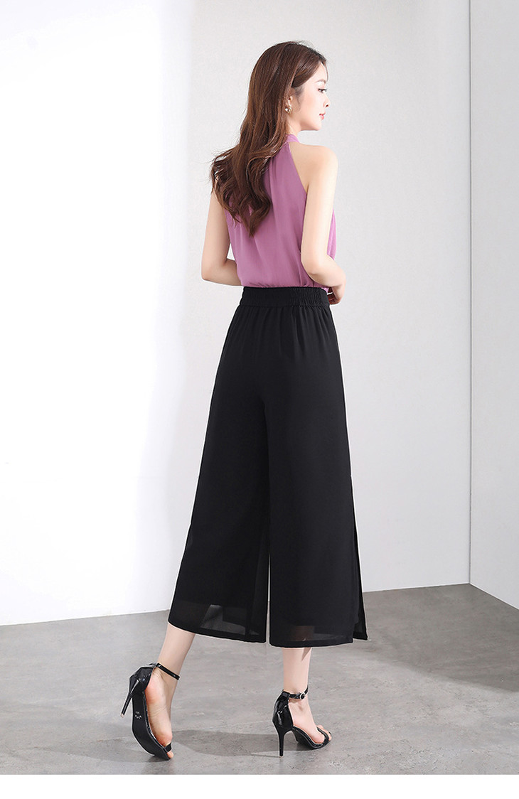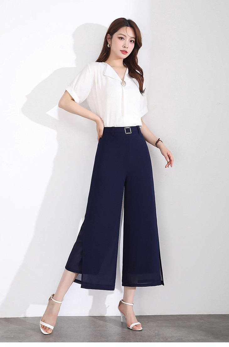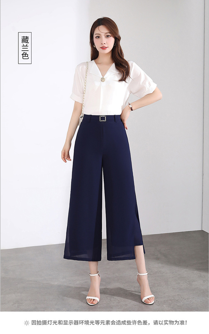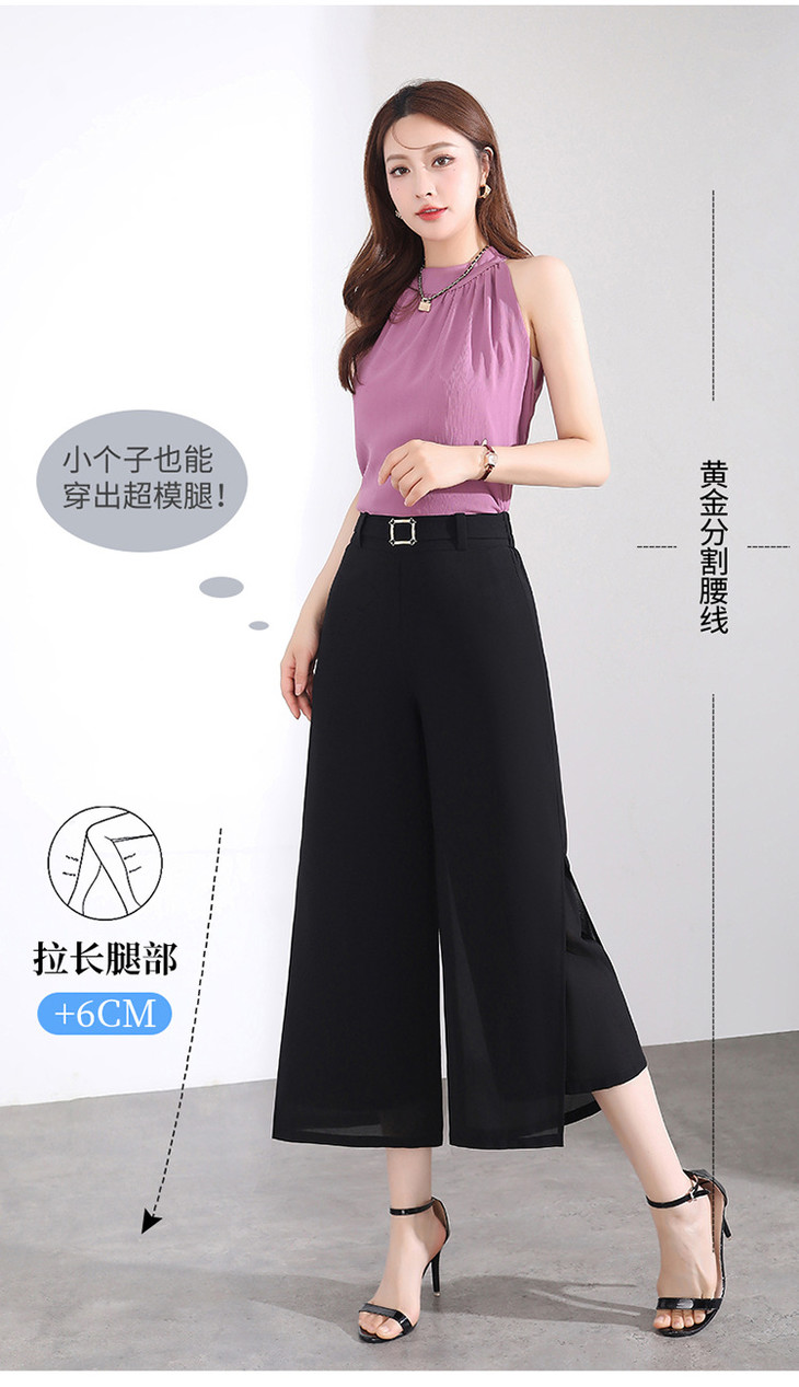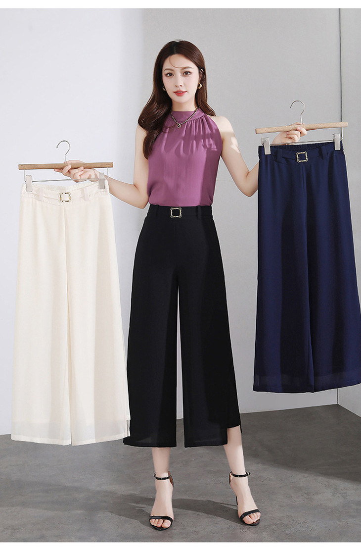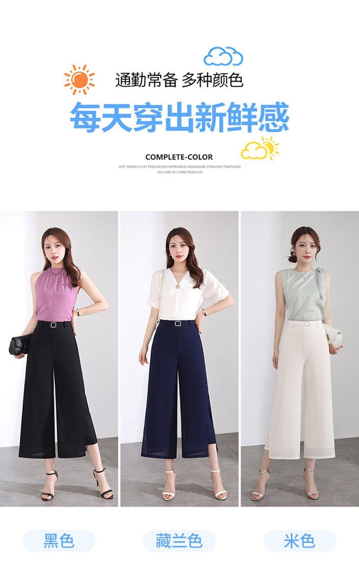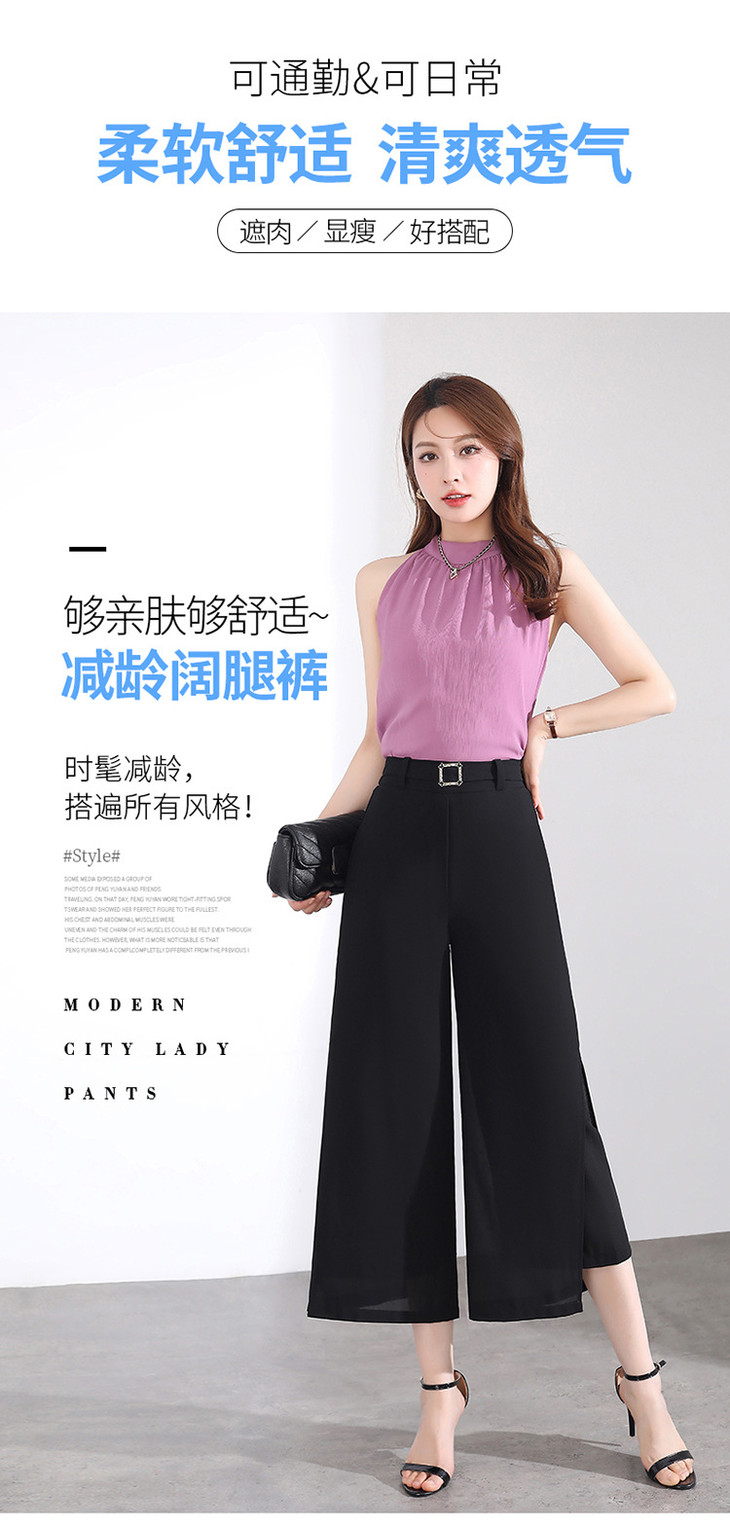 简约休闲雪纺后腰松紧,垂感修身洋气阔腿裤MYX-2155