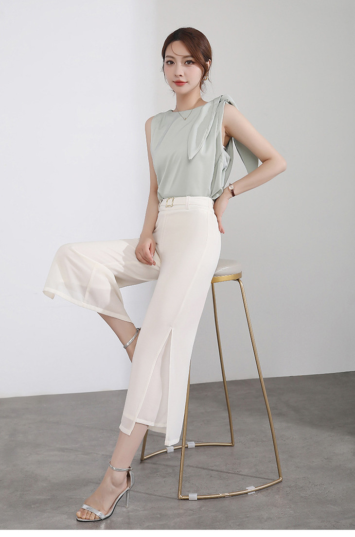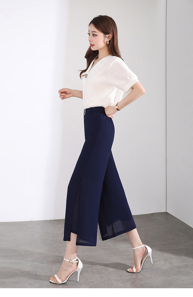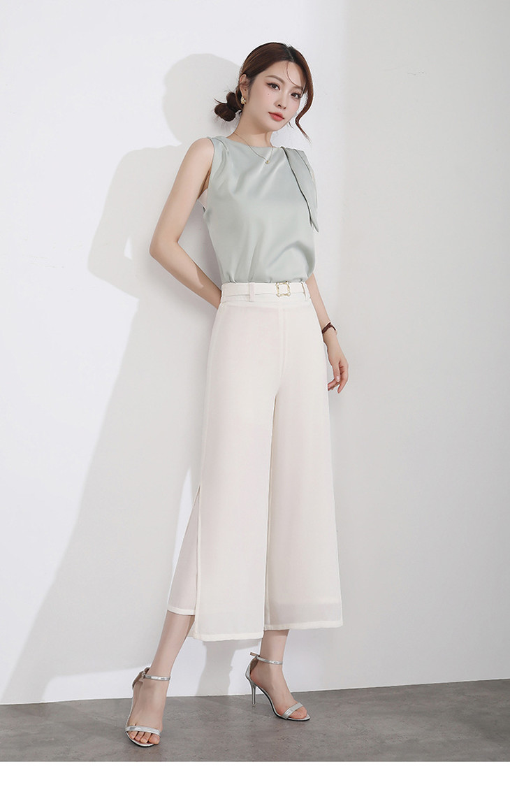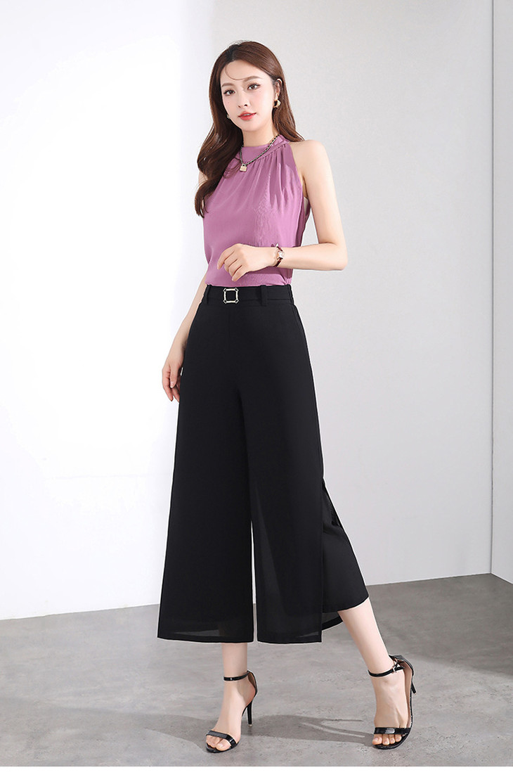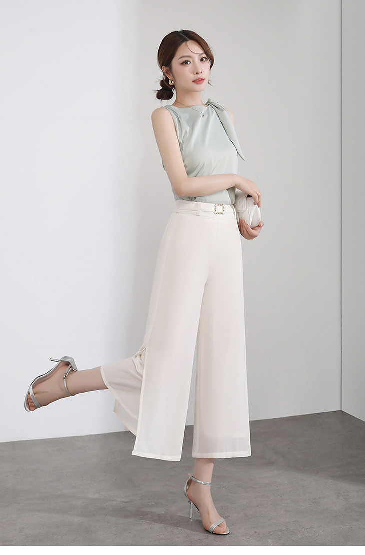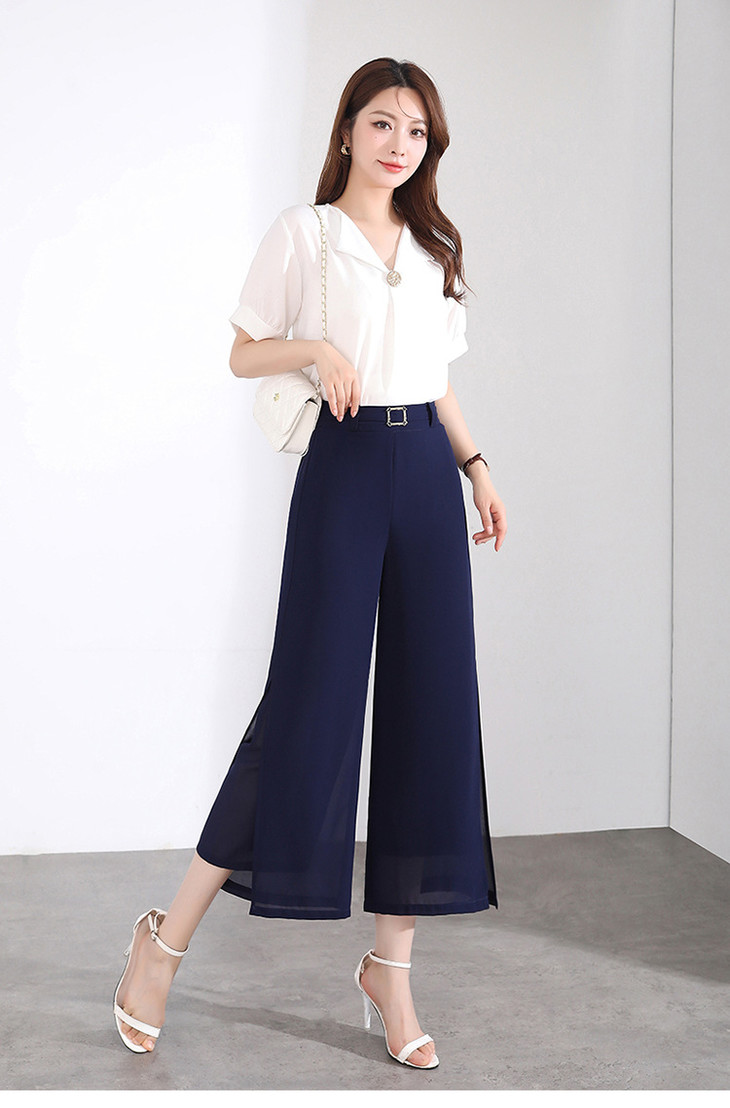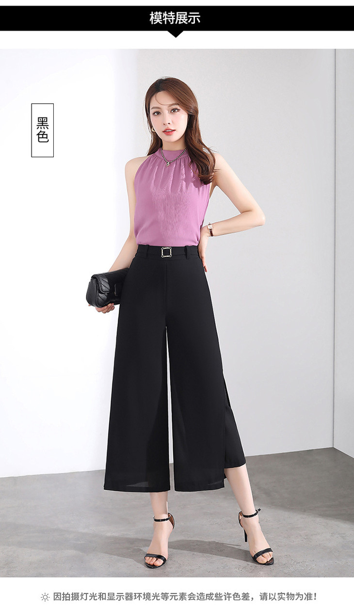 简约休闲雪纺后腰松紧,垂感修身洋气阔腿裤MYX-2155
