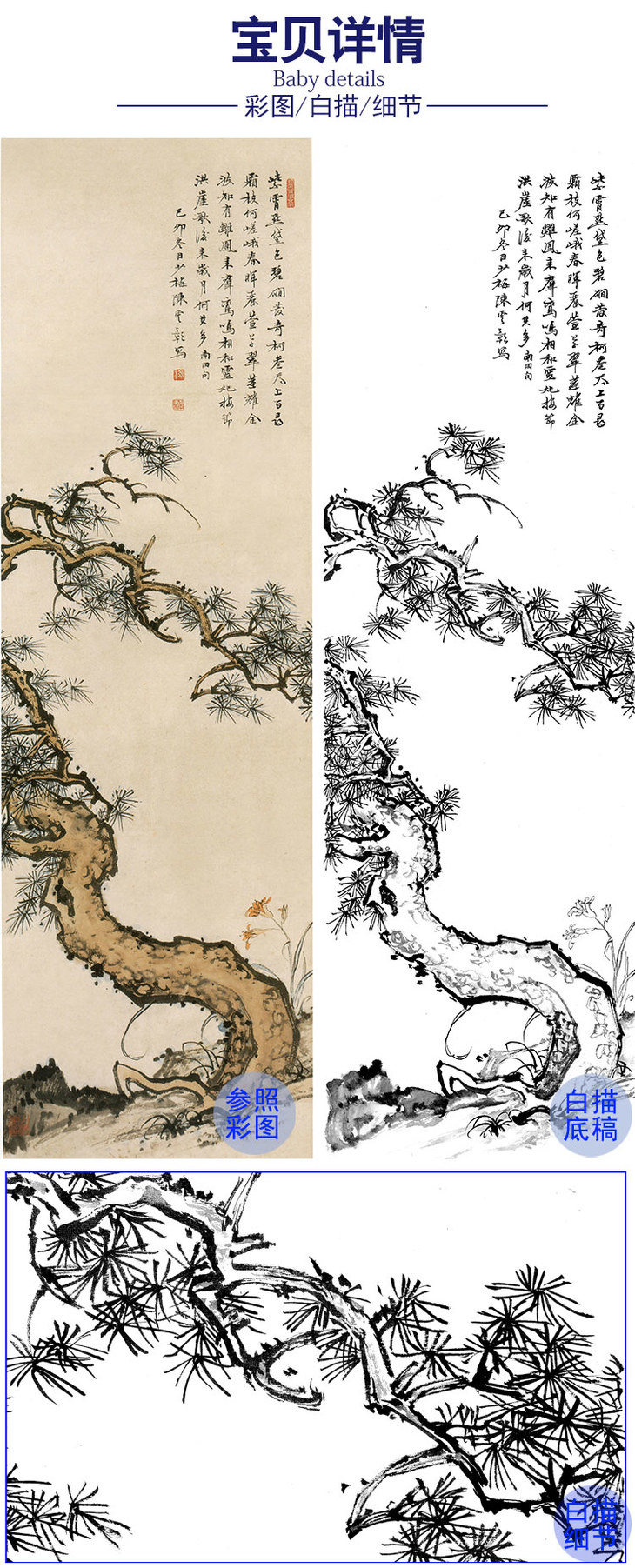 陈少梅竖幅工笔山水白描底稿-《松萱益寿》-多种白描尺寸可选-CR63