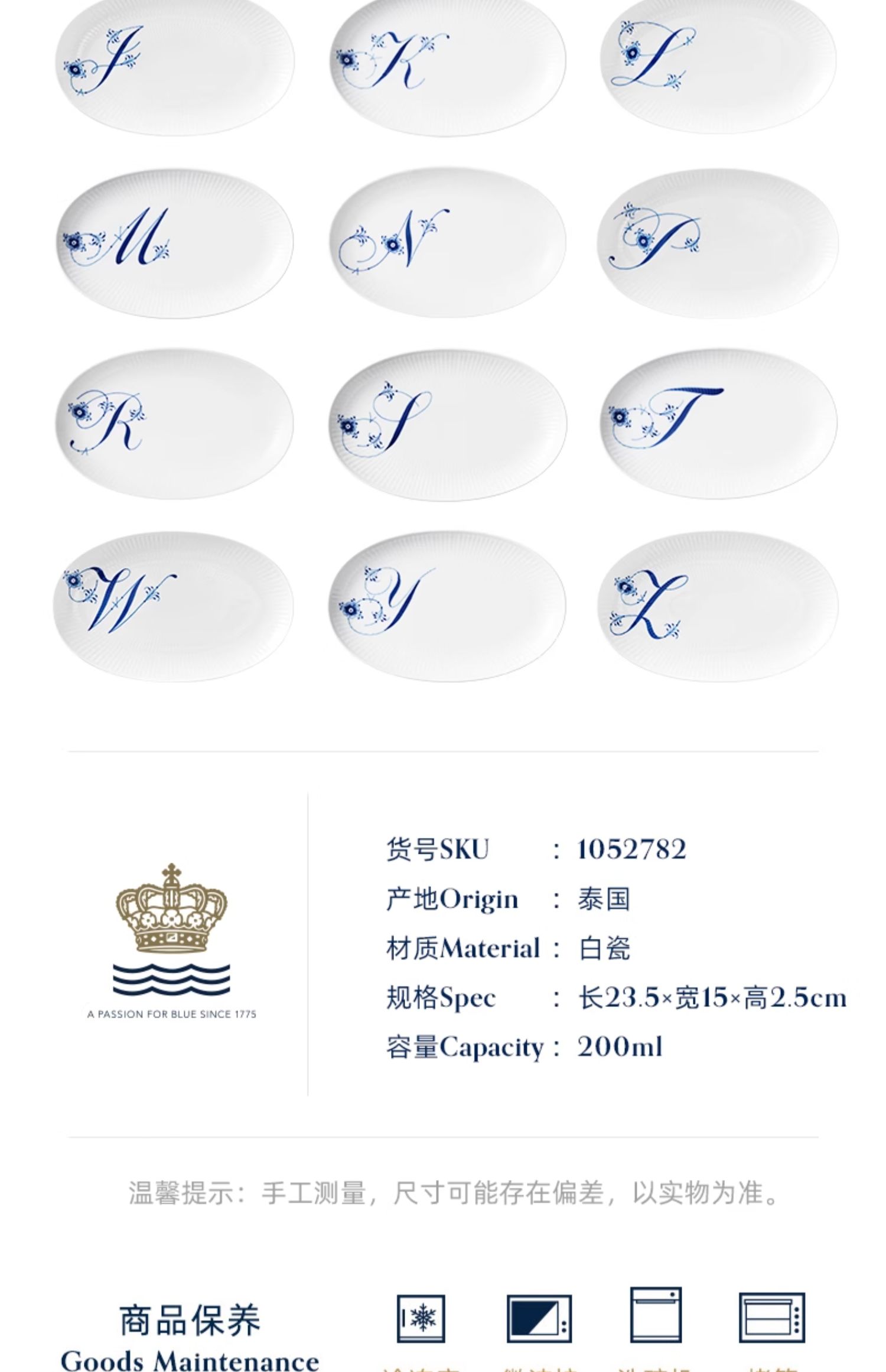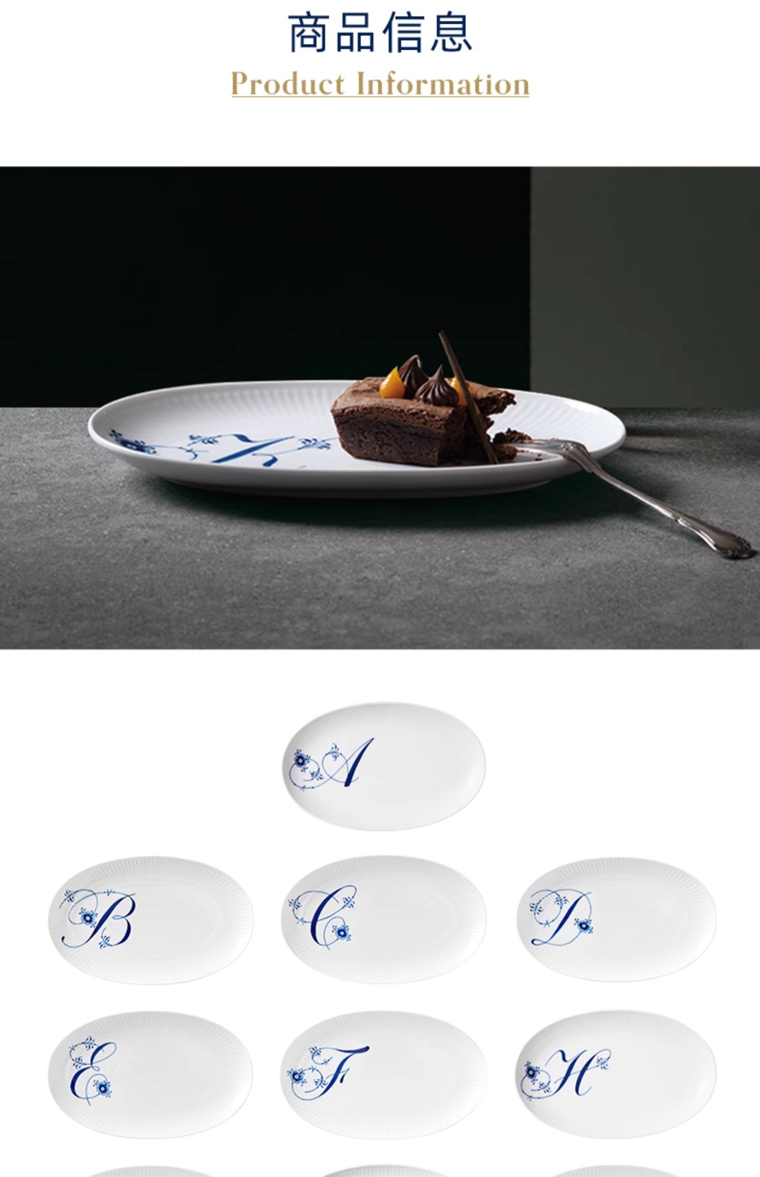 【ROYAL COPENHAGEN】皇家哥本哈根手绘字母餐具 餐盘子菜盘家用高级