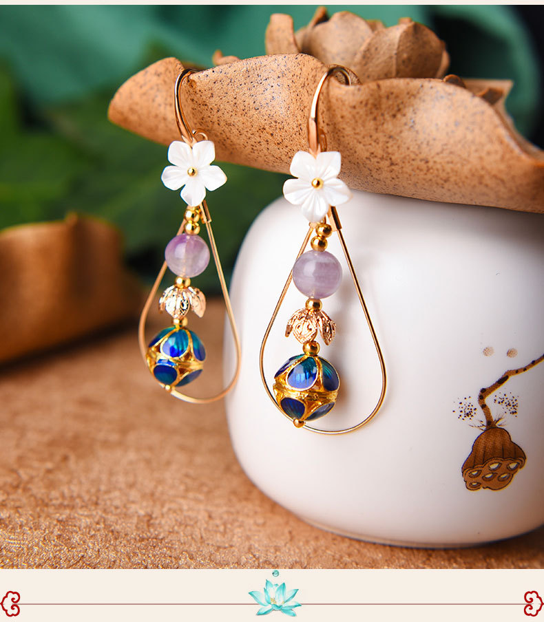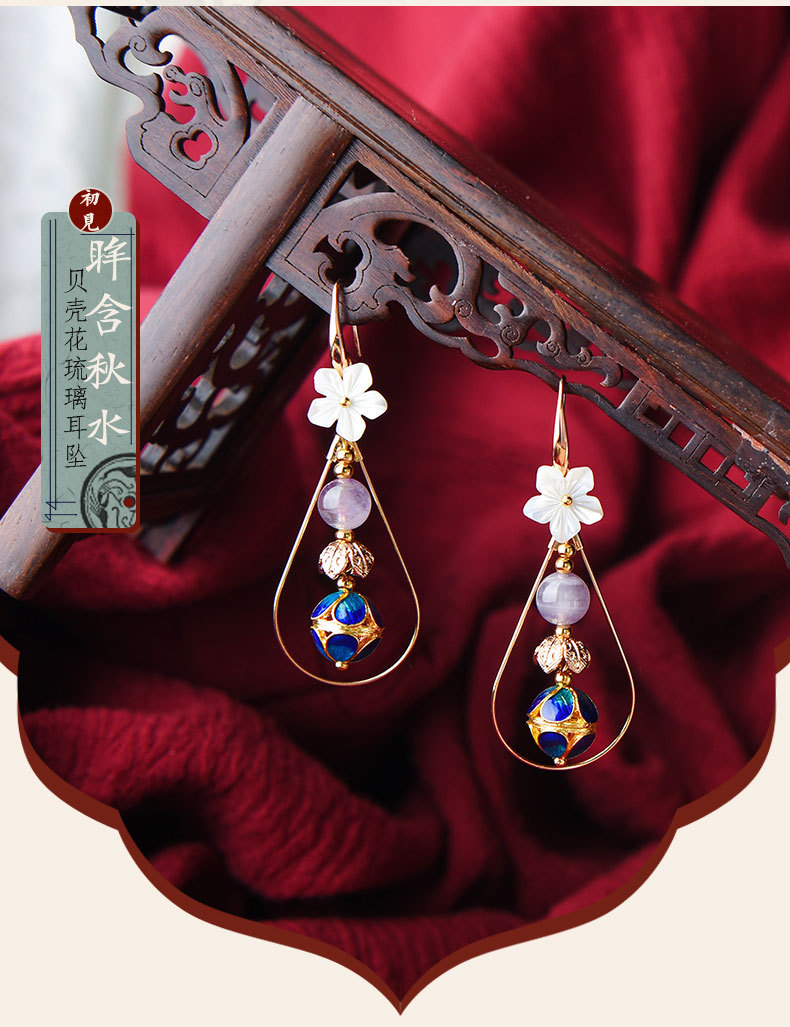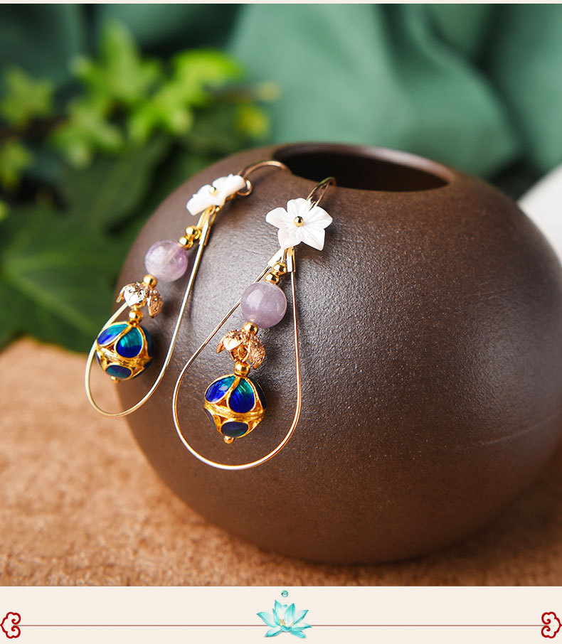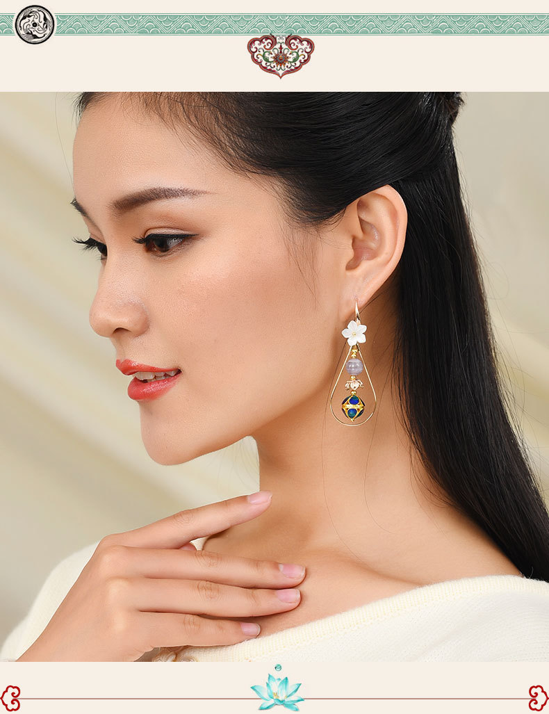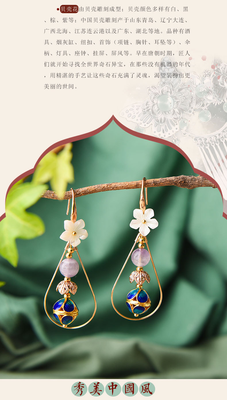 JGL-03220094清新花朵古风耳坠仙长款显脸瘦的韩国气质耳环