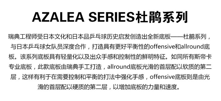 STIGA斯帝卡杜鹃花AzaleaOC AC纯木乒乓球拍底板球拍斯蒂卡