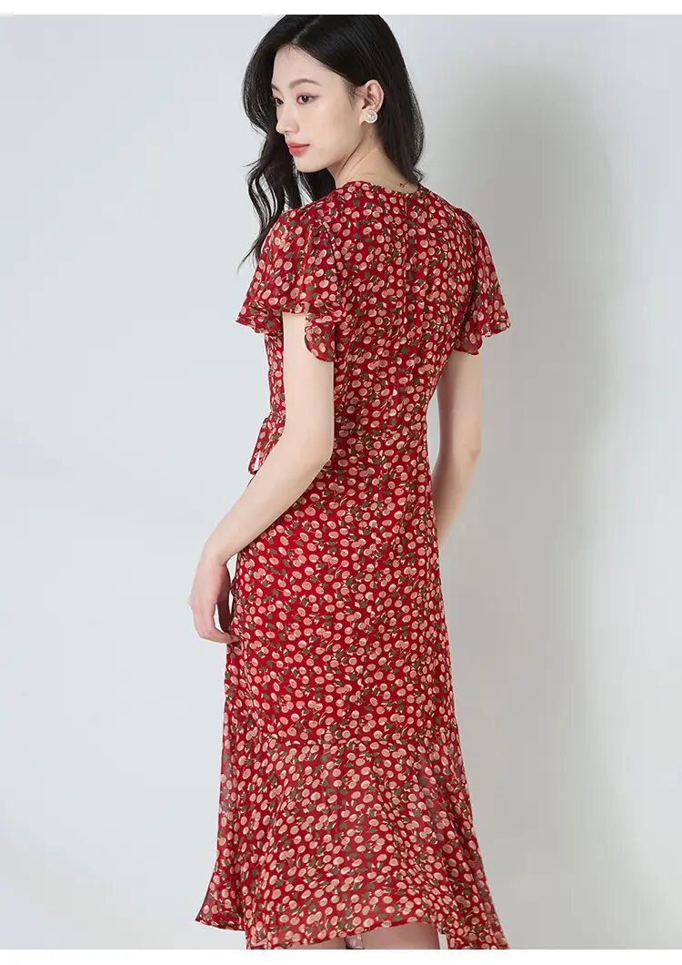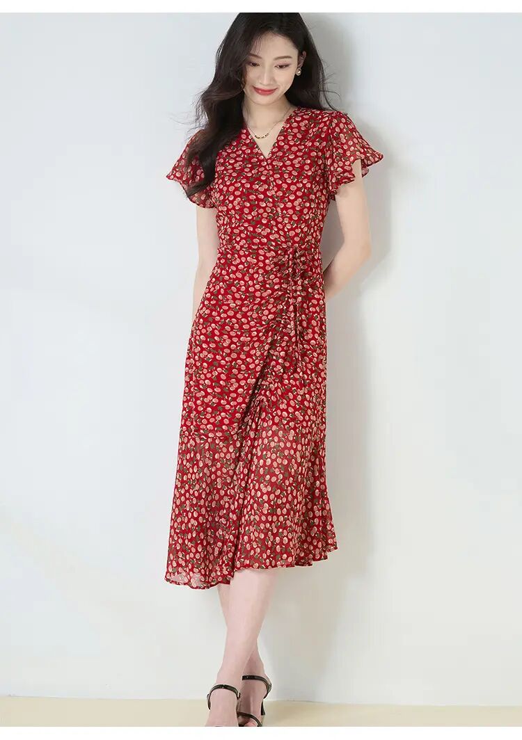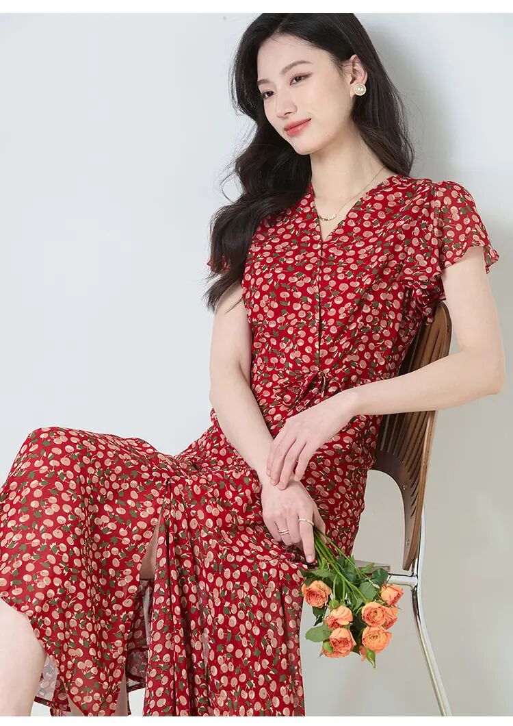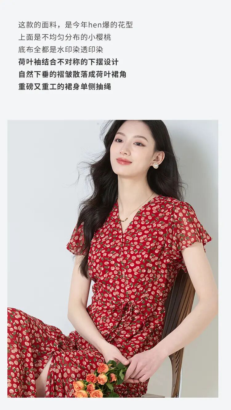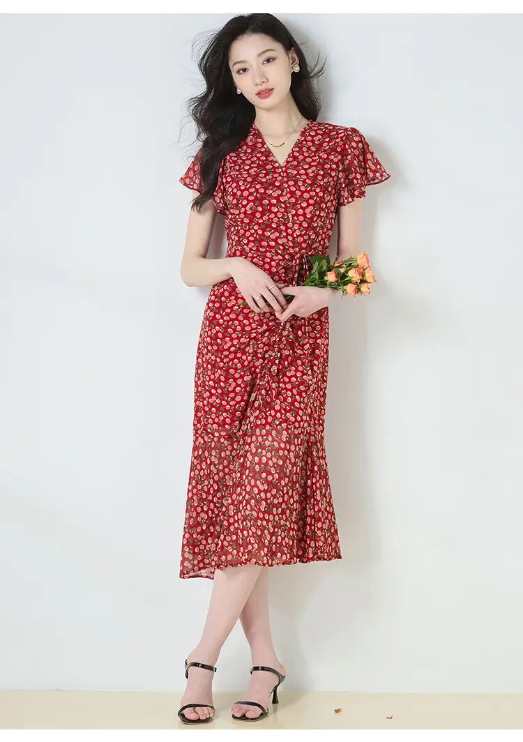 「高货sh」全新升级【铂金会员266/天猫359/差价93】(01859)洛诗琳夏季新款法式清新抽褶鱼尾碎花V领显瘦中长款连衣裙01859