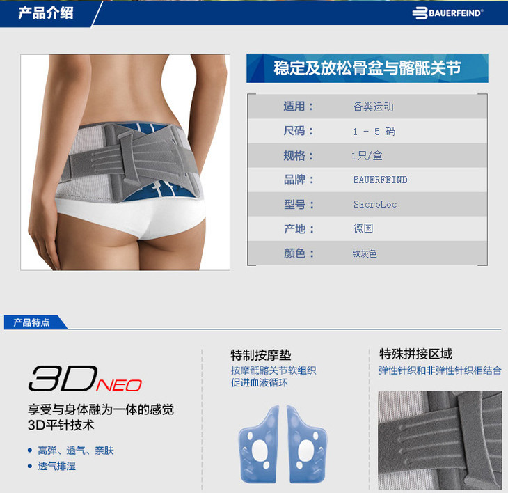 德国运动护具BAUERFEIND 稳定及放松骨盆与髂骶关节的矫形器SacroLoc