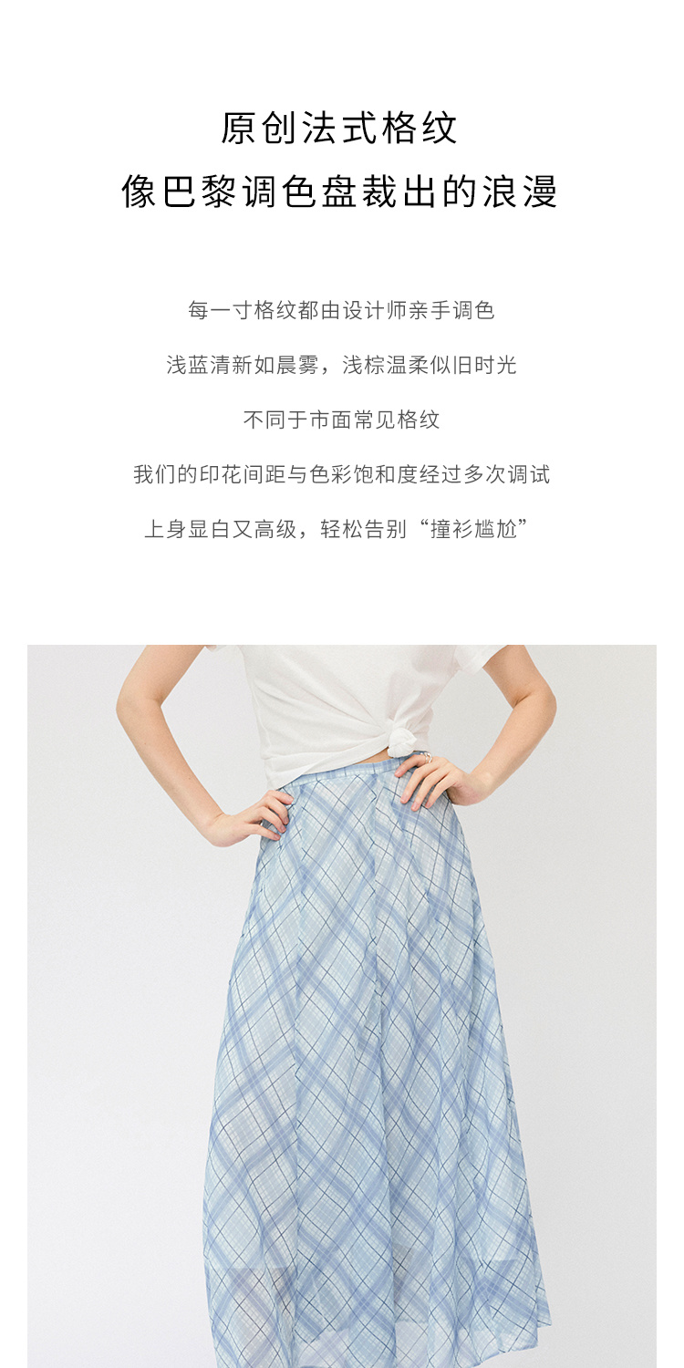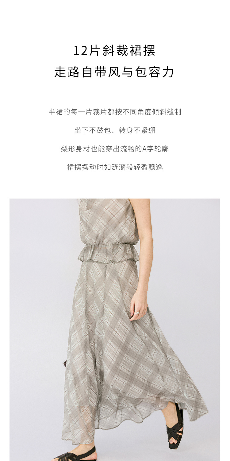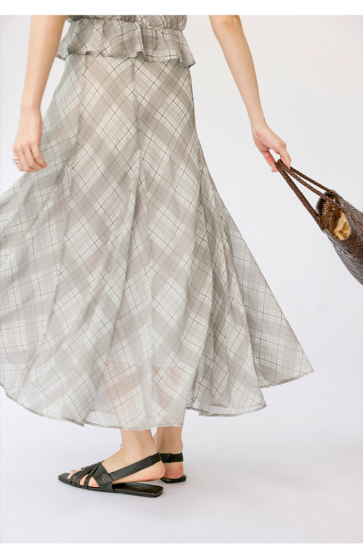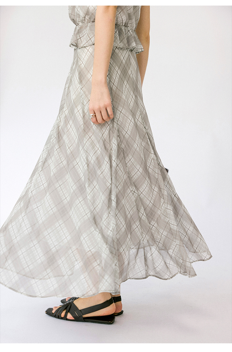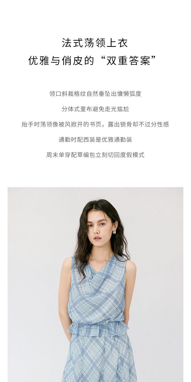 (小眠专属)HeyDress法式格纹气质套装女夏季荡领花边上衣高腰立体斜裁半身裙