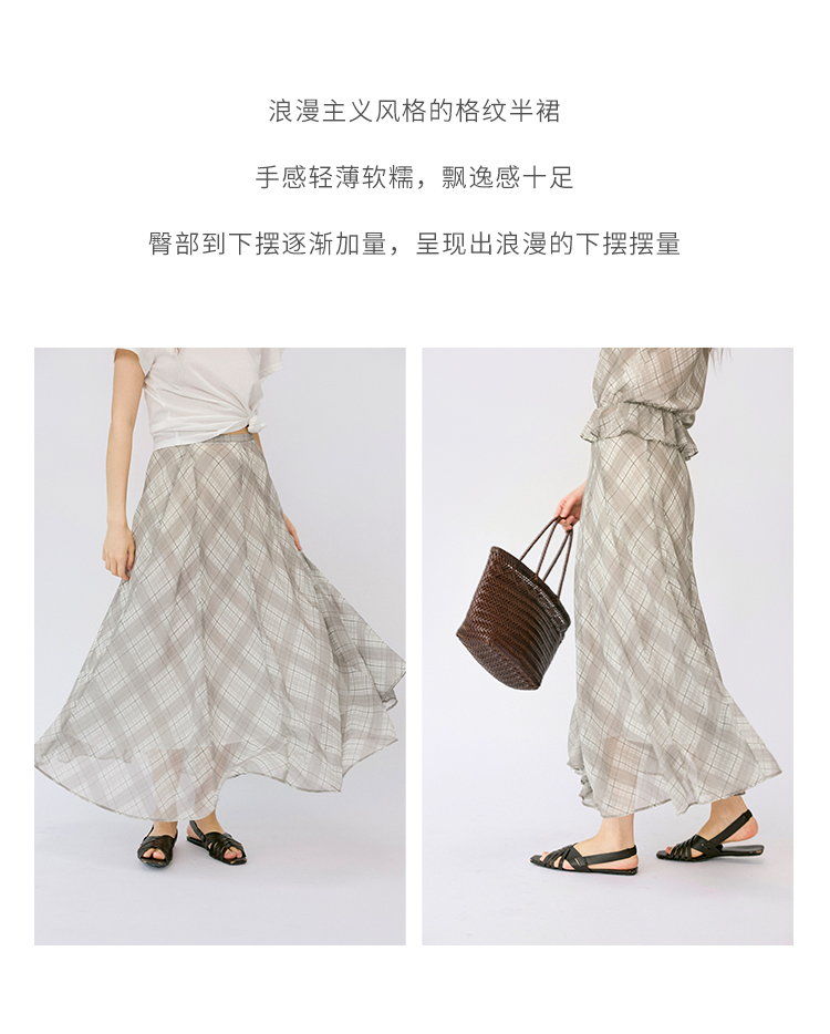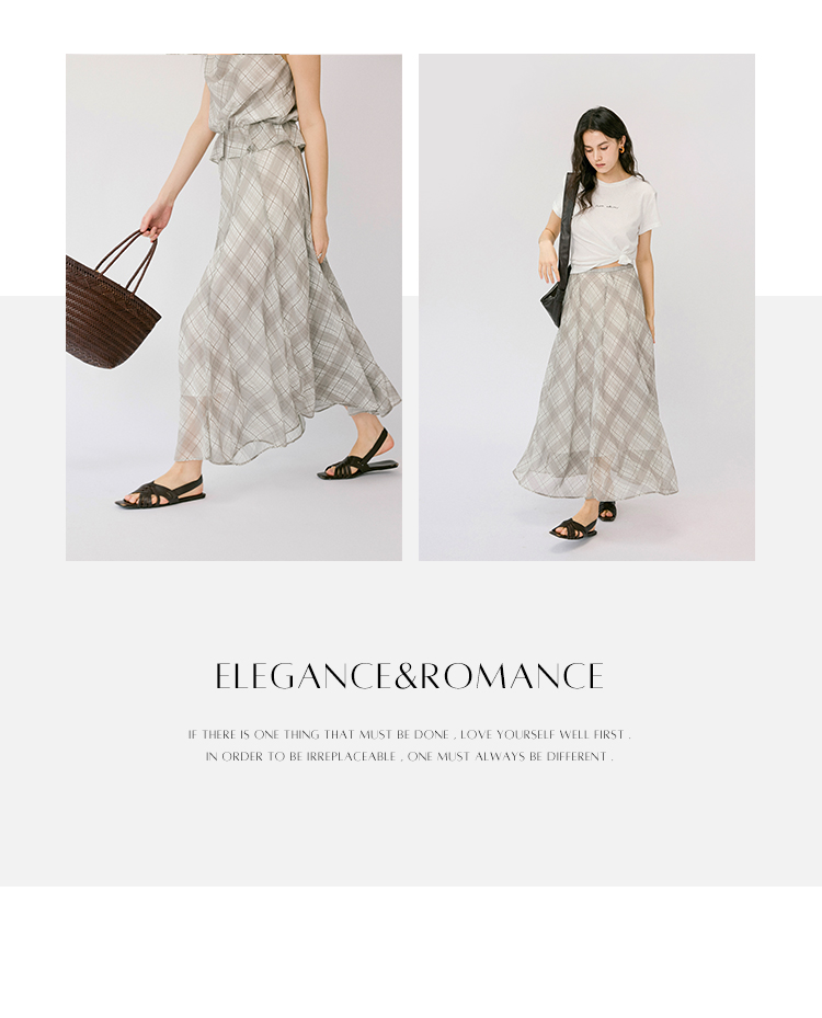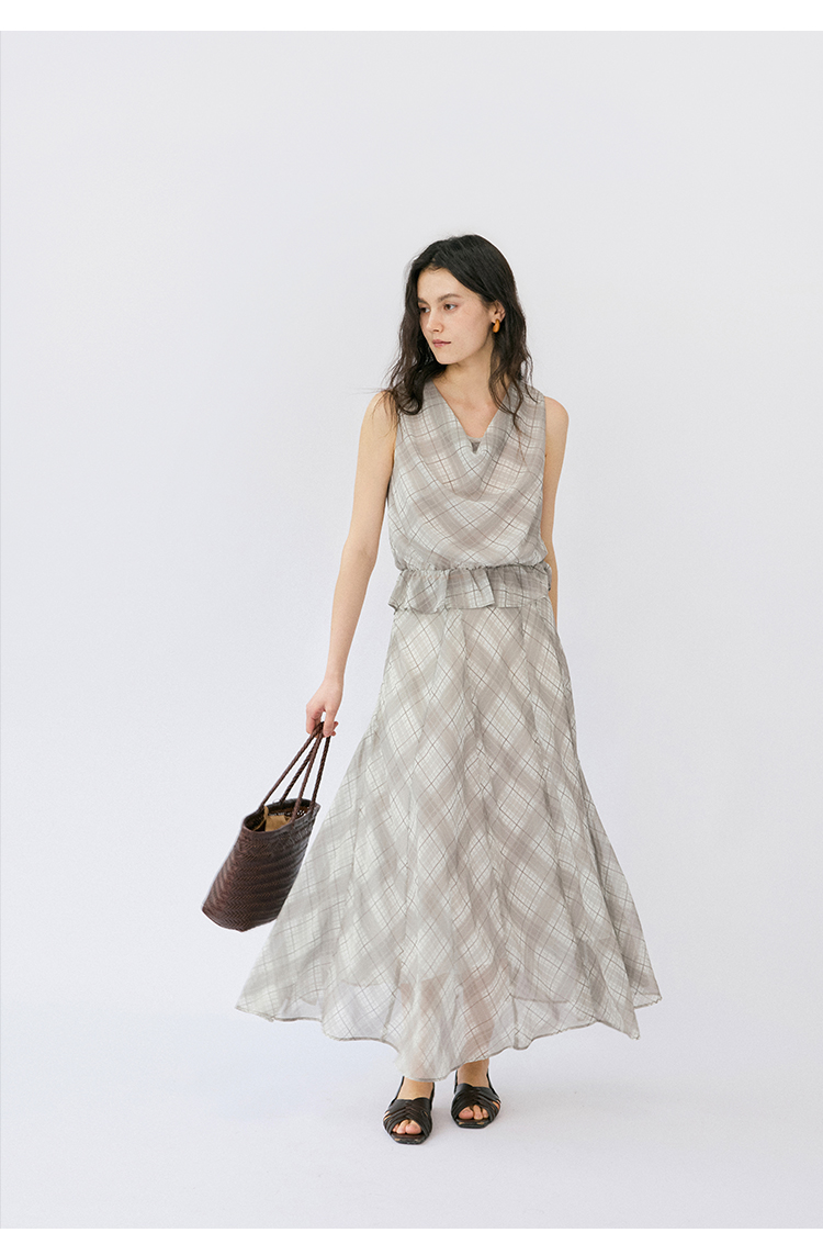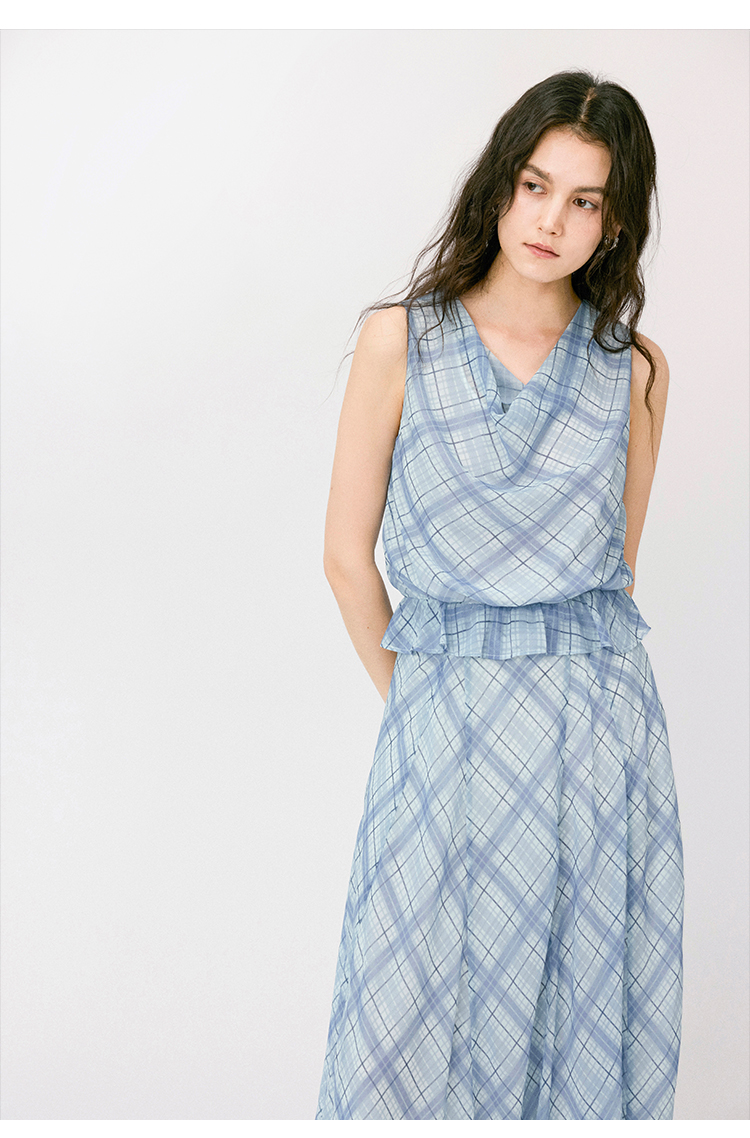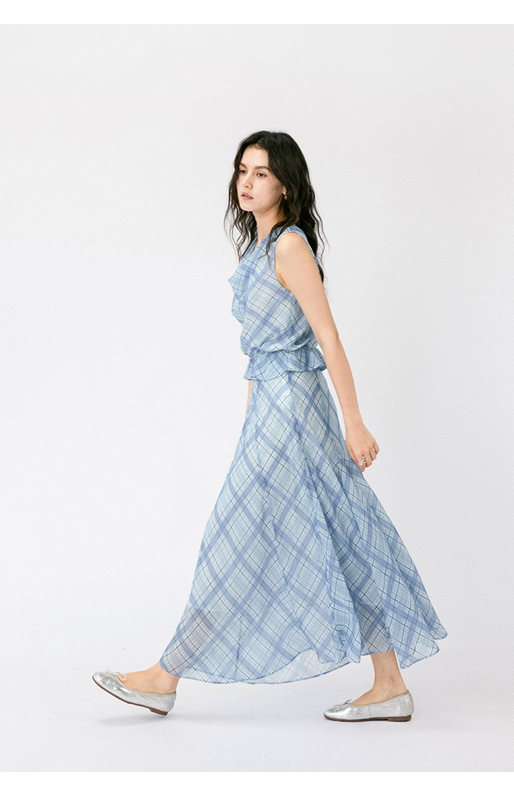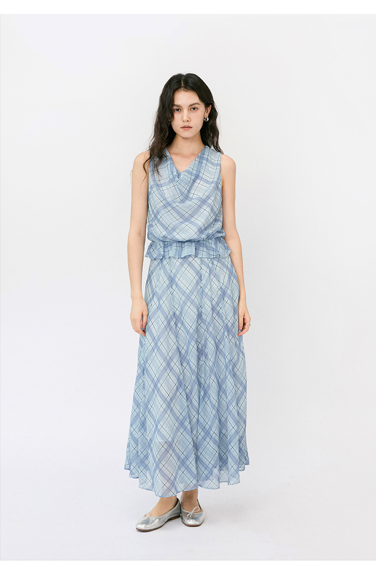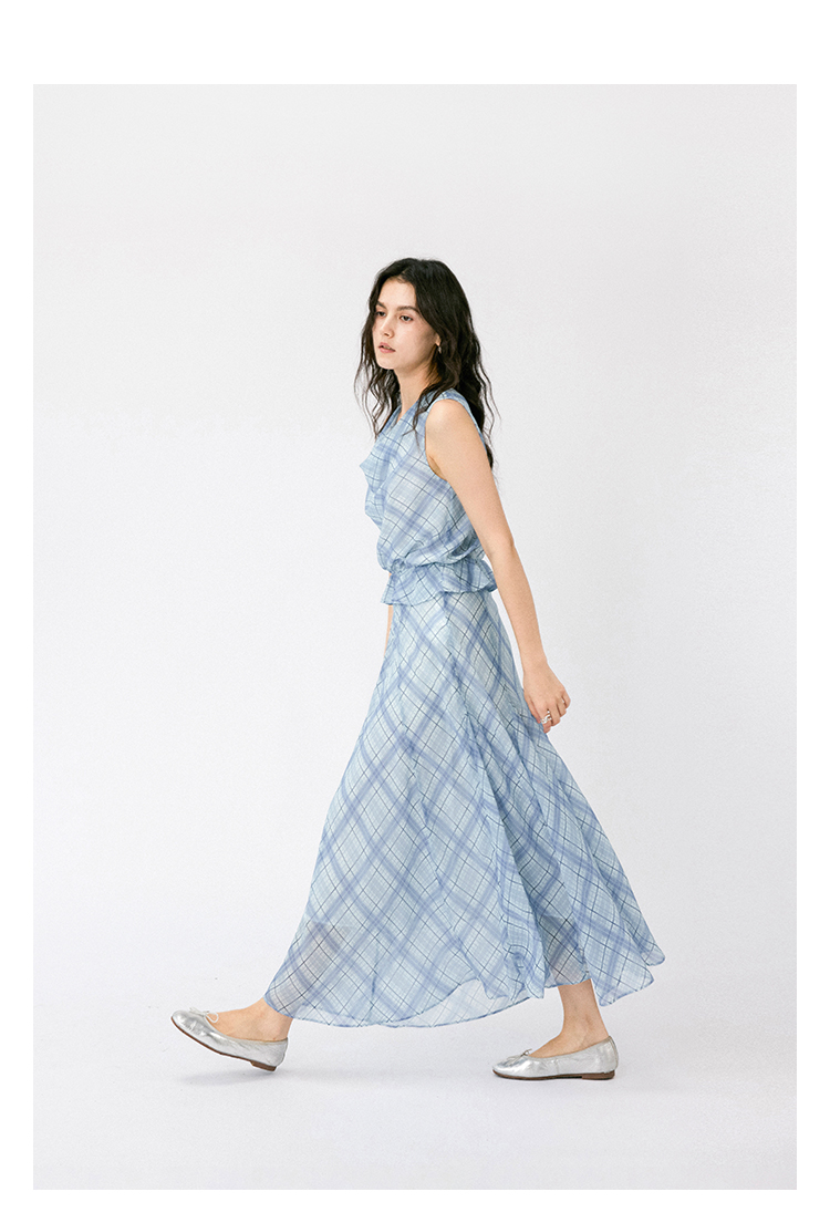 (小眠专属)HeyDress法式格纹气质套装女夏季荡领花边上衣高腰立体斜裁半身裙