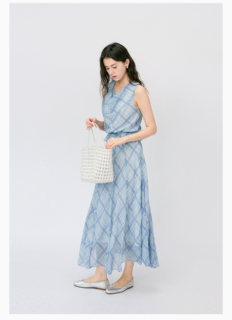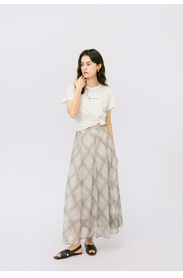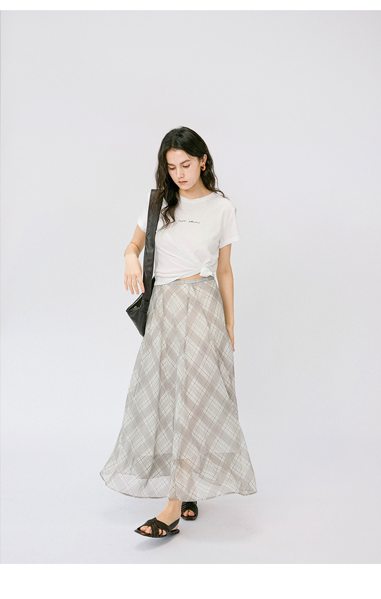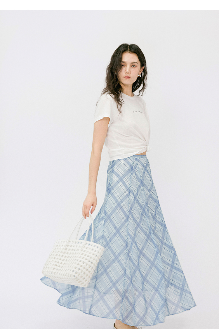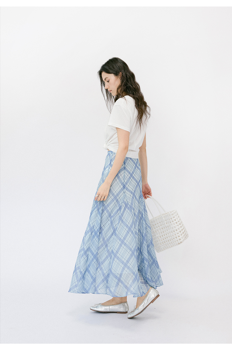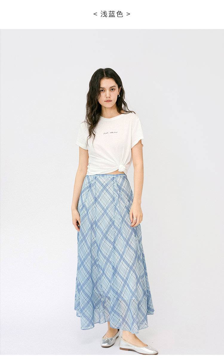 (小眠专属)HeyDress法式格纹气质套装女夏季荡领花边上衣高腰立体斜裁半身裙