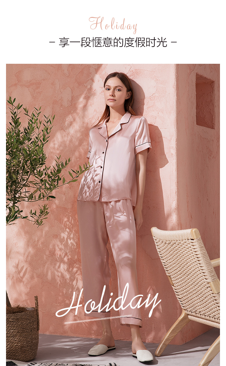金三塔 女真丝素绉缎素色睡衣套8YSF7B412