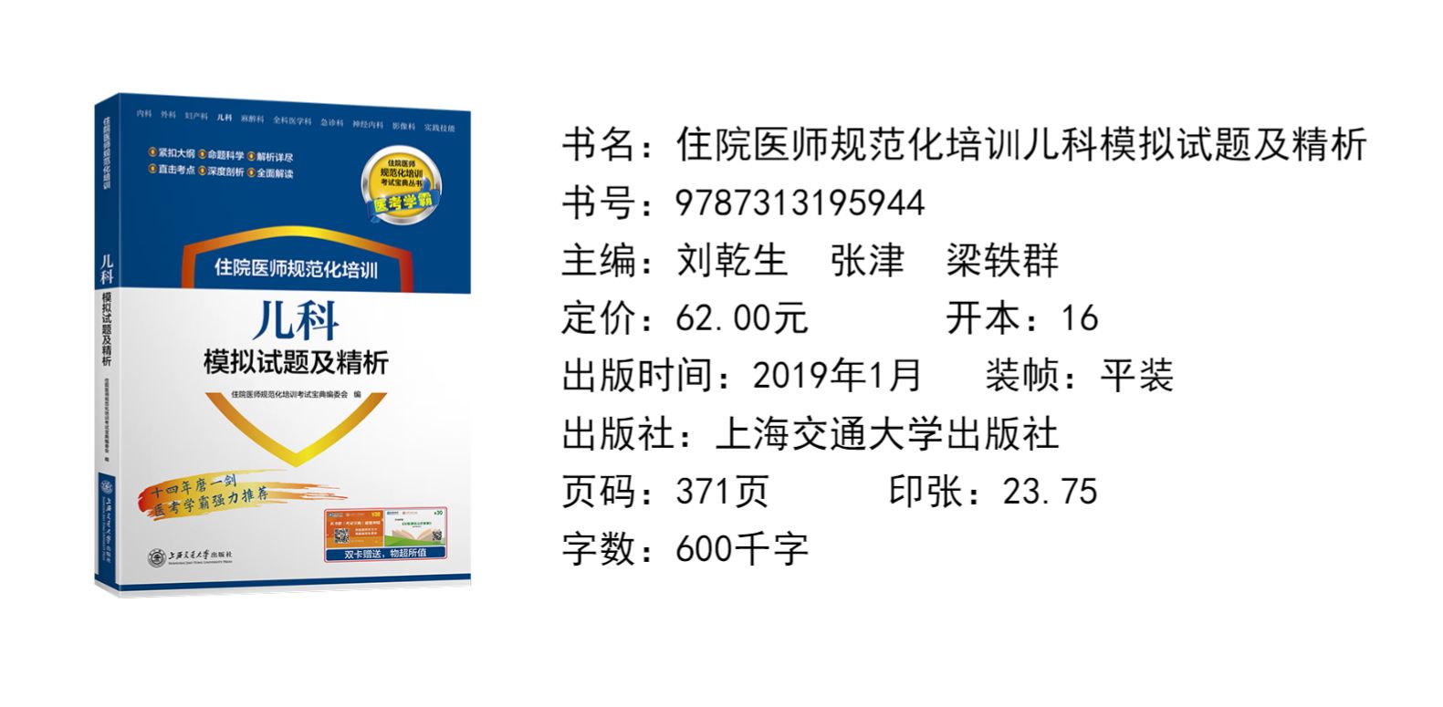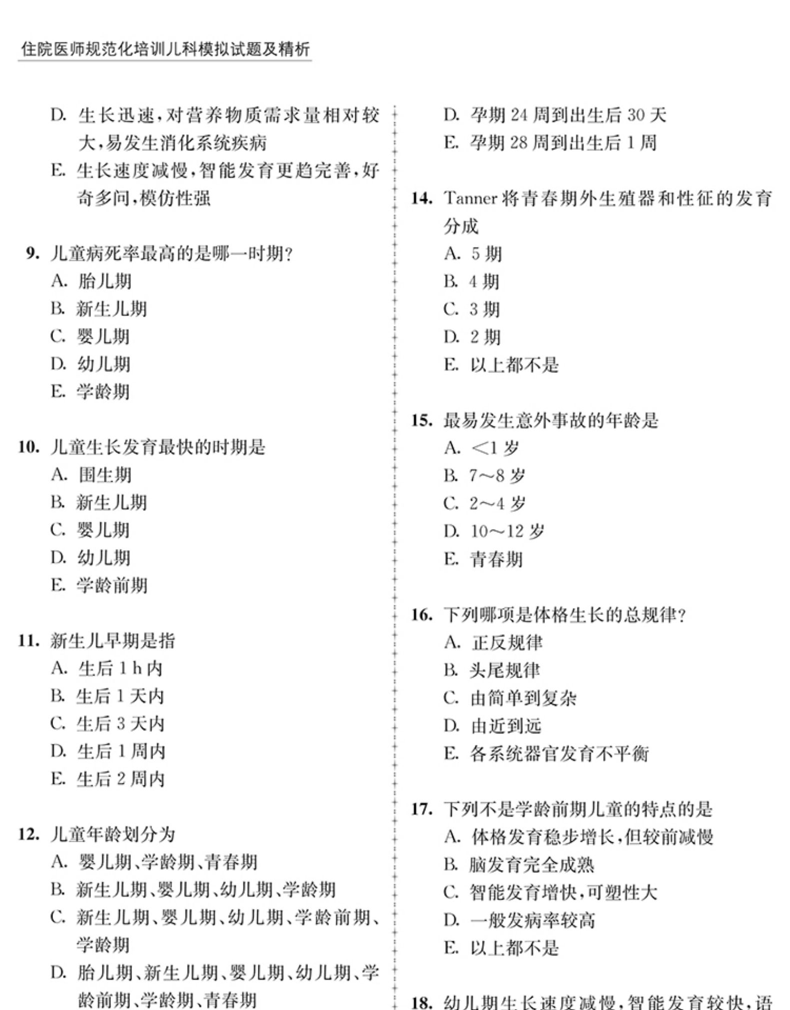 住院医师规范化培训儿科模拟试题及精析 刘乾生 张津 梁轶群 住培考试宝典丛书