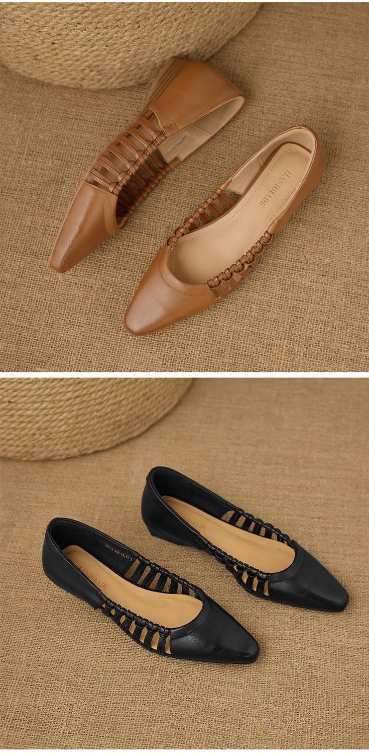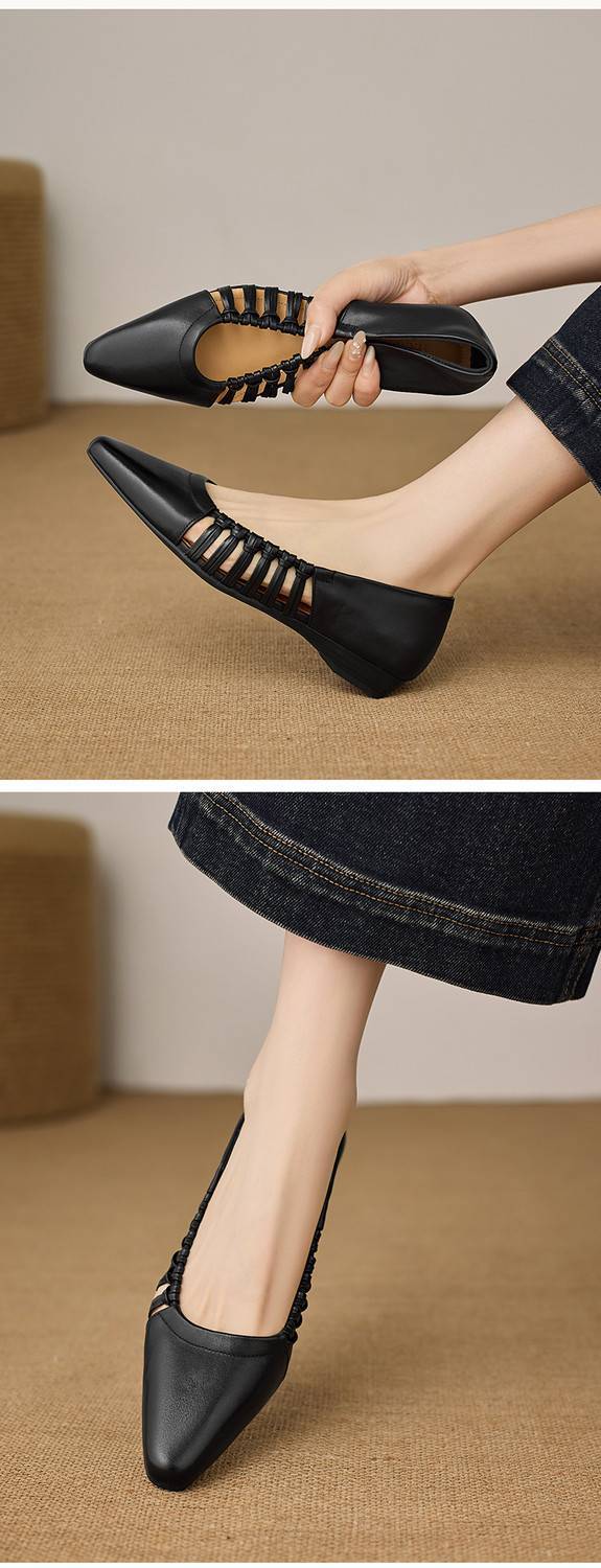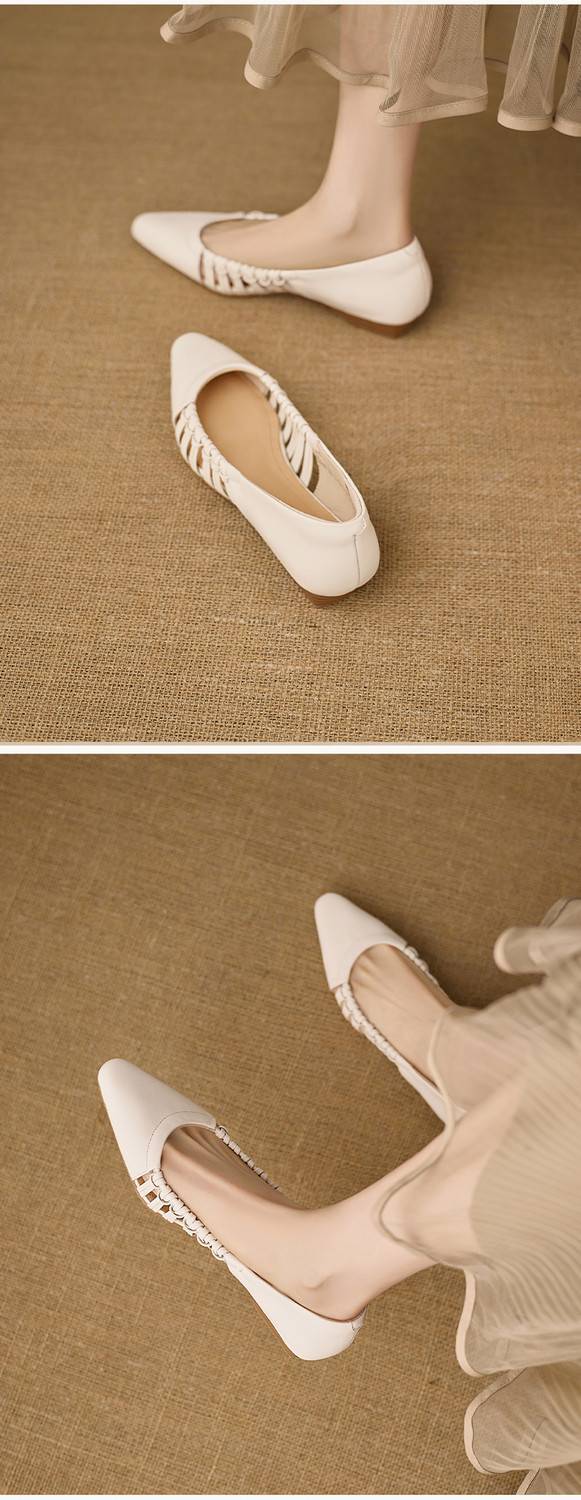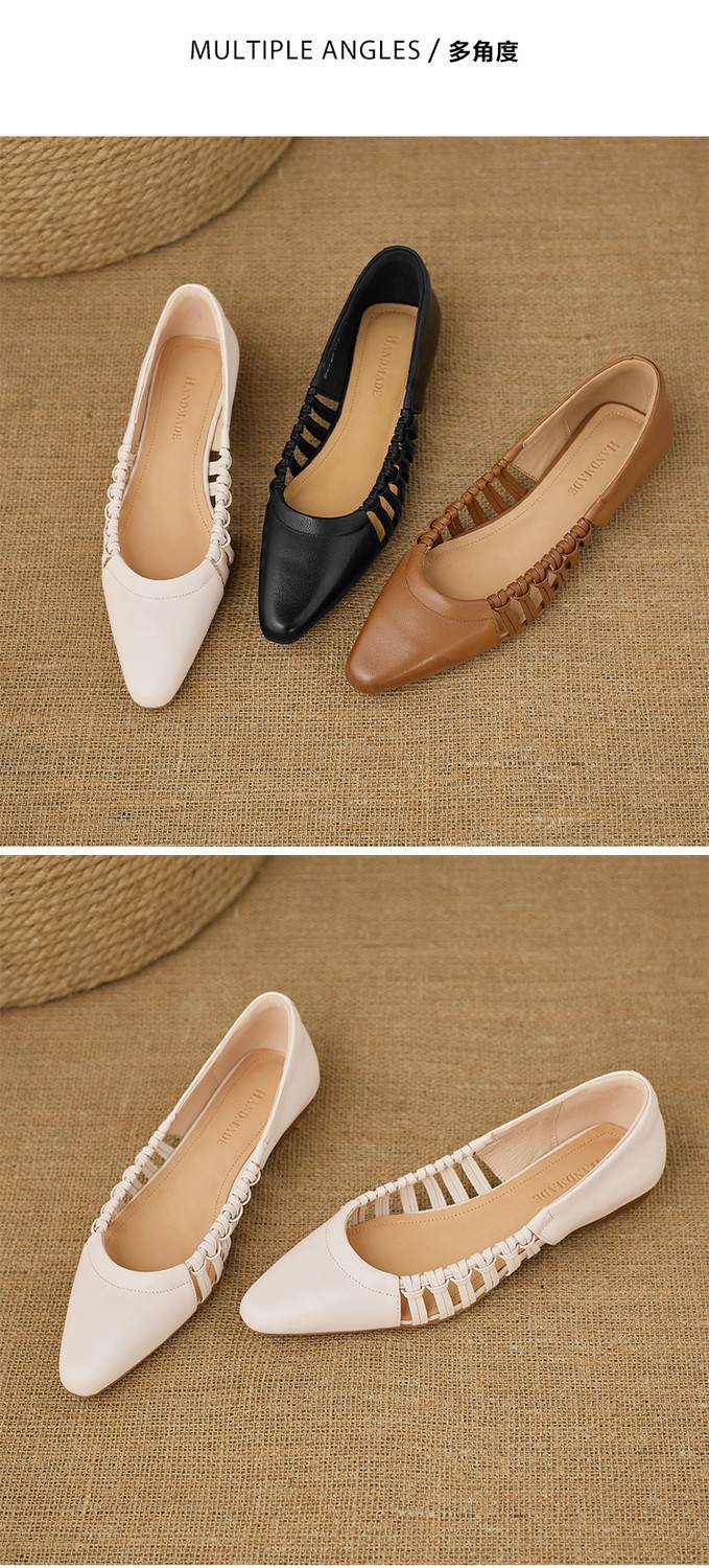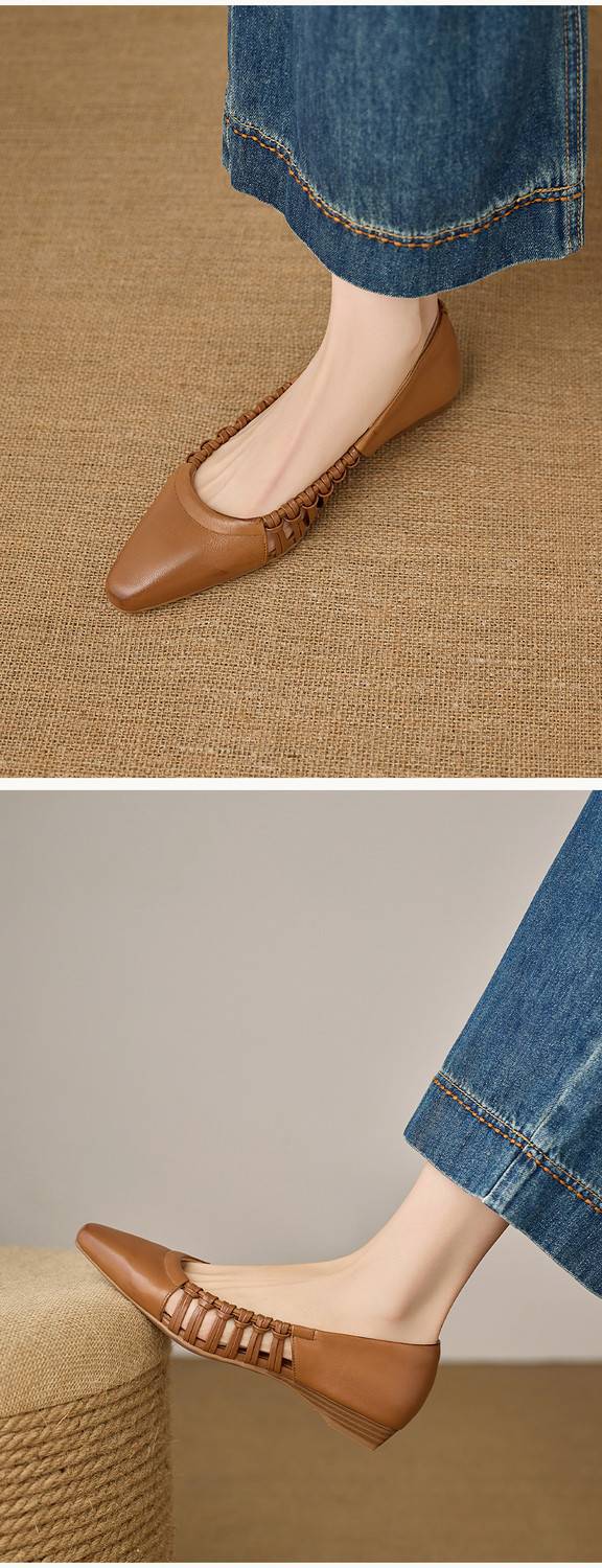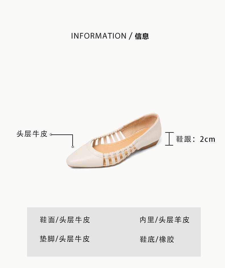 【预售5天】巨好穿法式单鞋女浅口春夏季方头低跟平底粗跟真皮编织软底凉鞋女NX&S3114