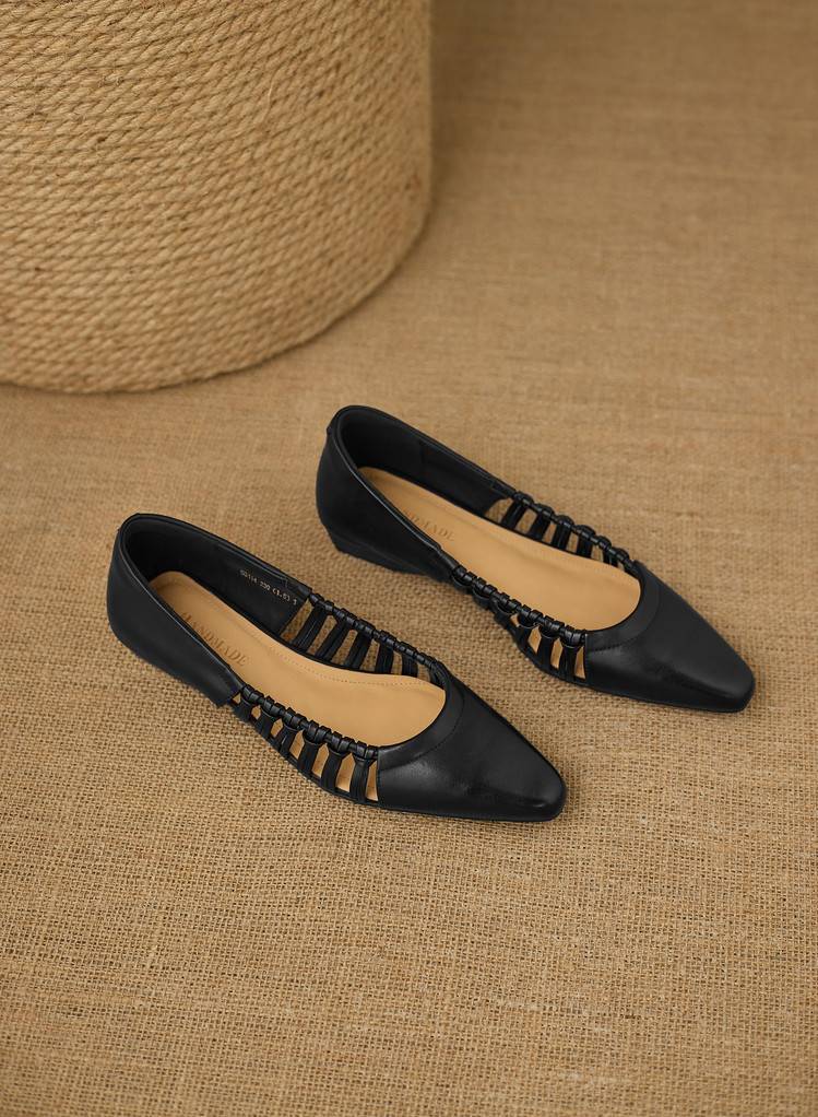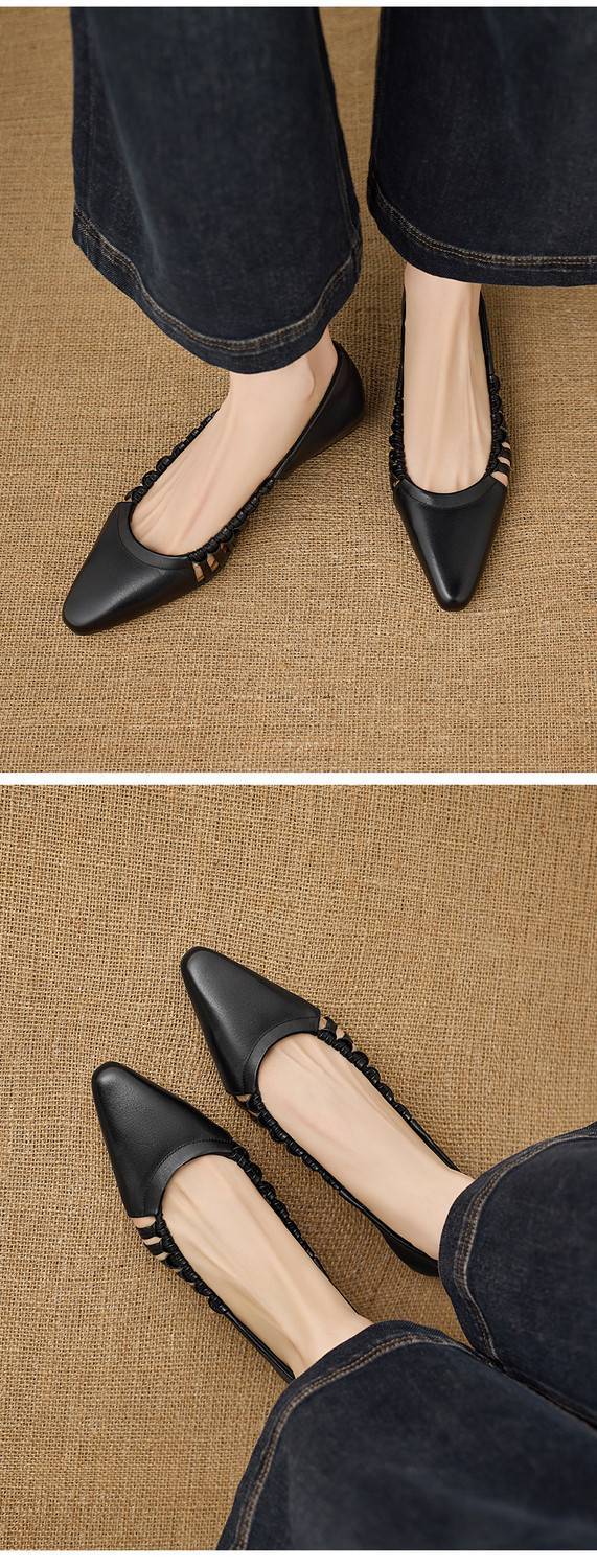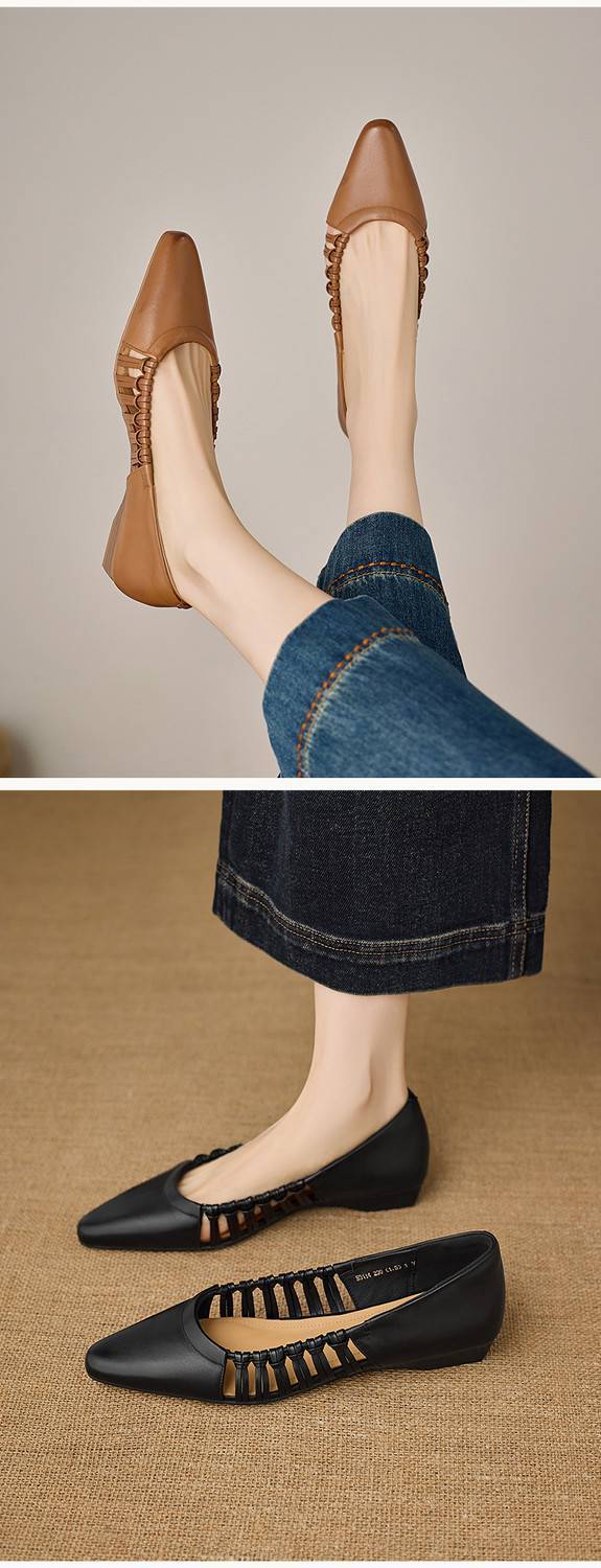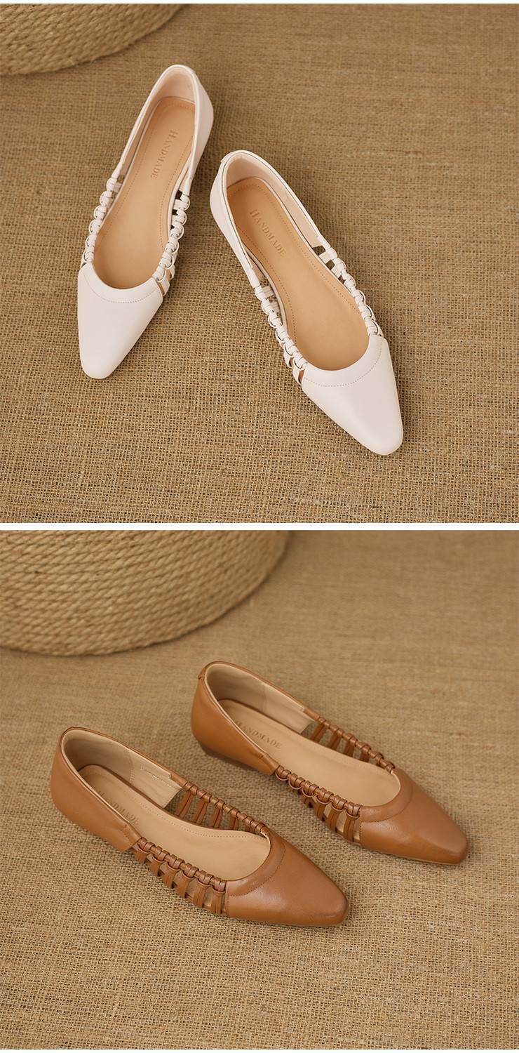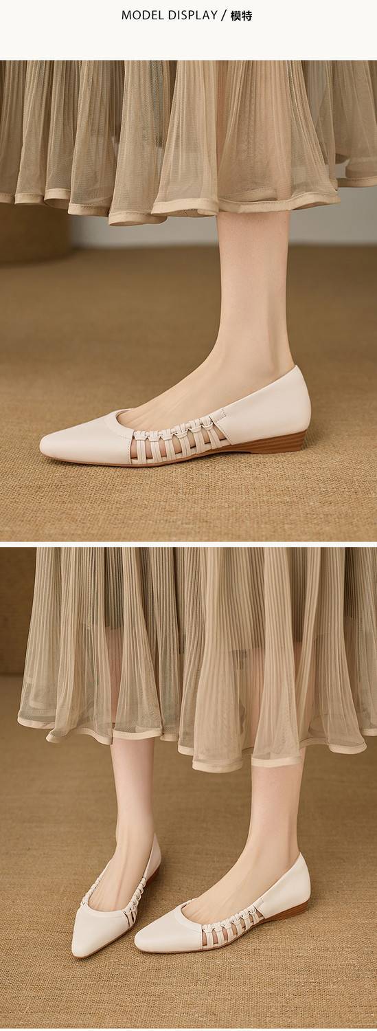 【预售5天】巨好穿法式单鞋女浅口春夏季方头低跟平底粗跟真皮编织软底凉鞋女NX&S3114