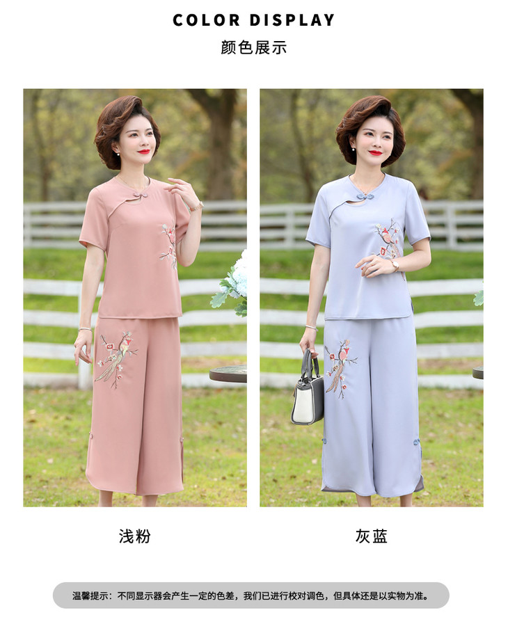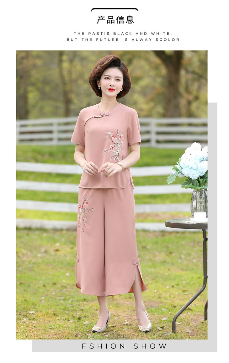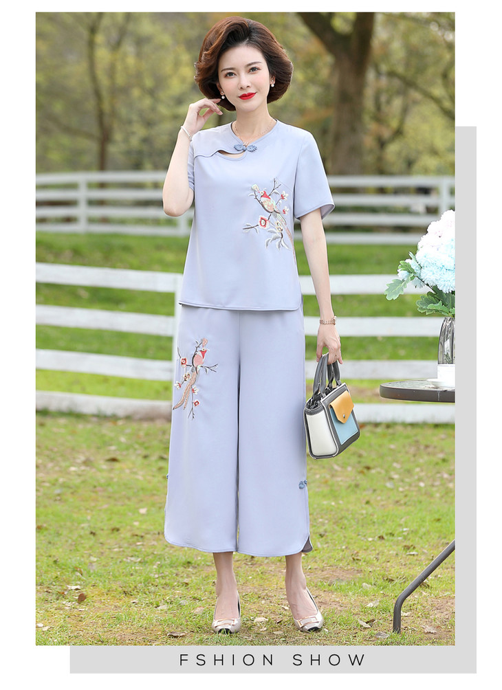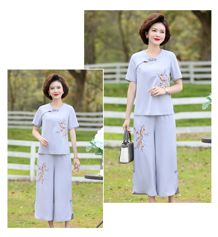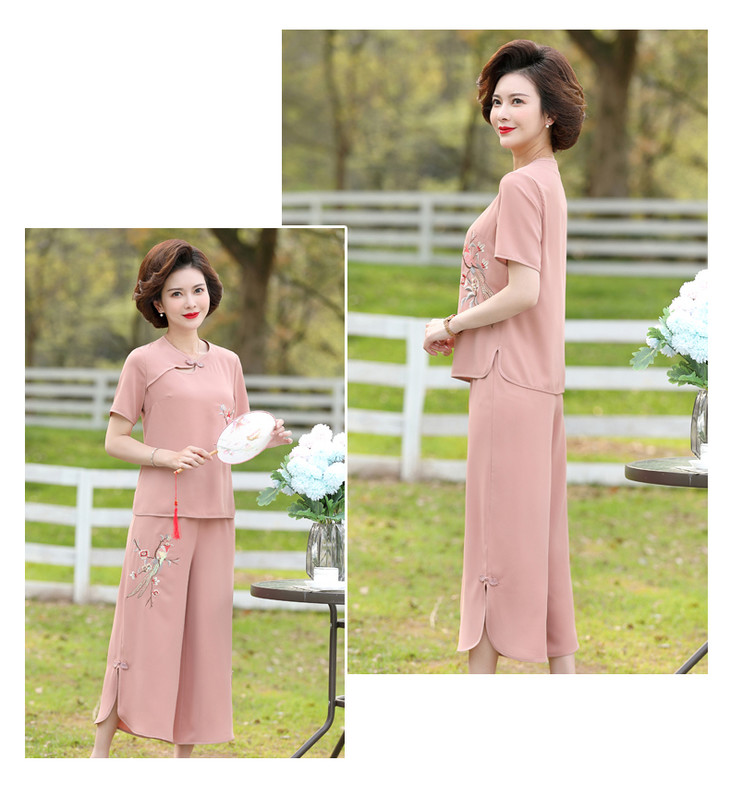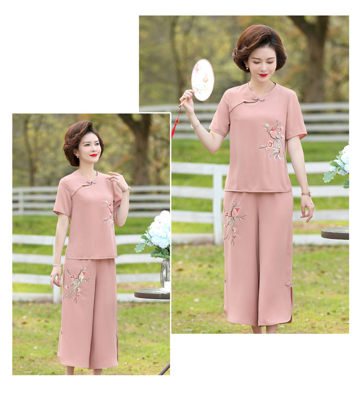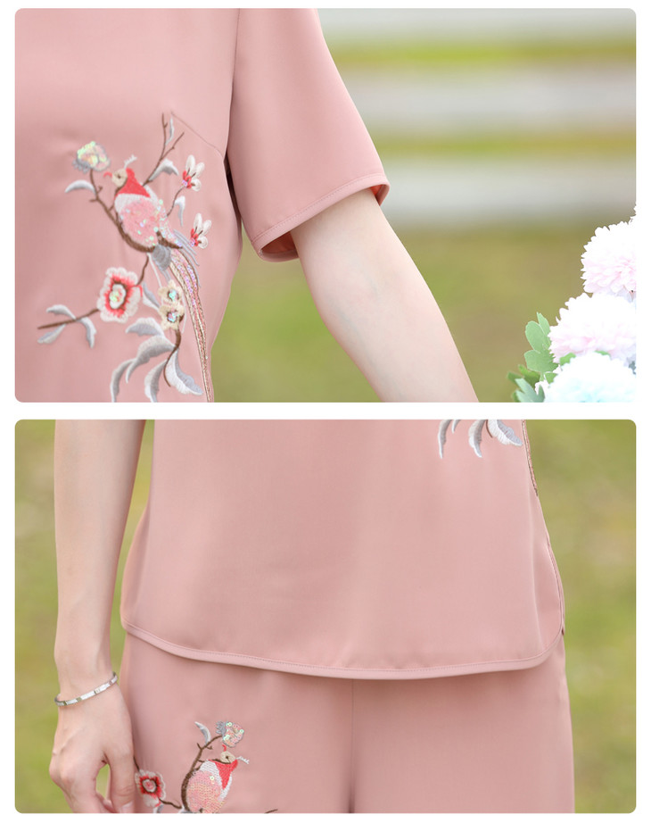 Y-188夏装洋气精美绣花盘扣时尚短袖中国风两件套