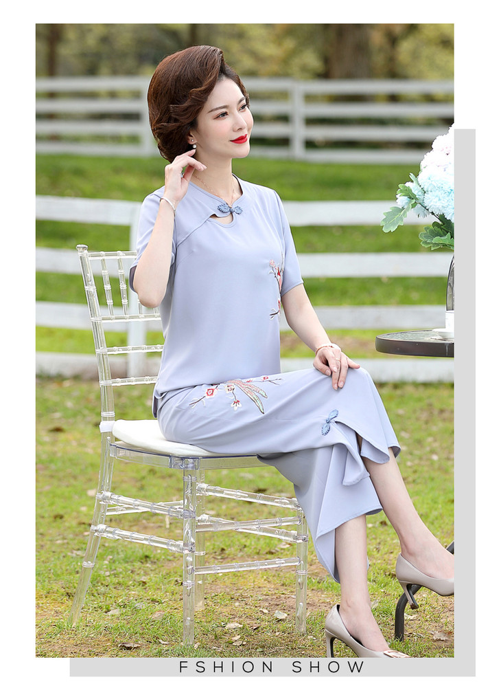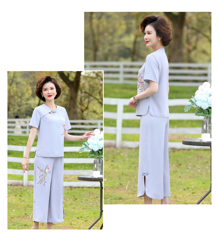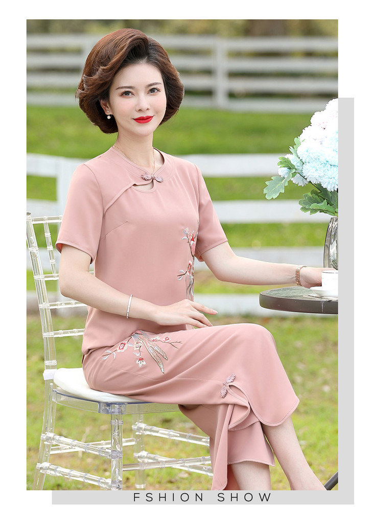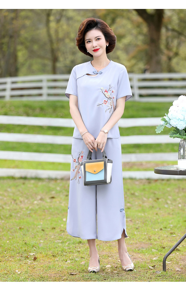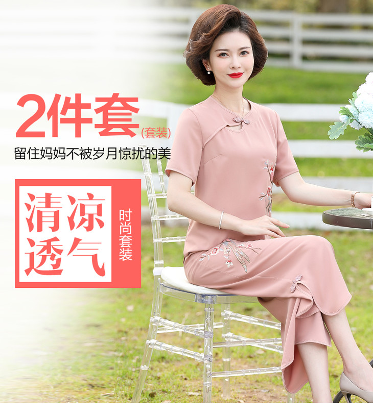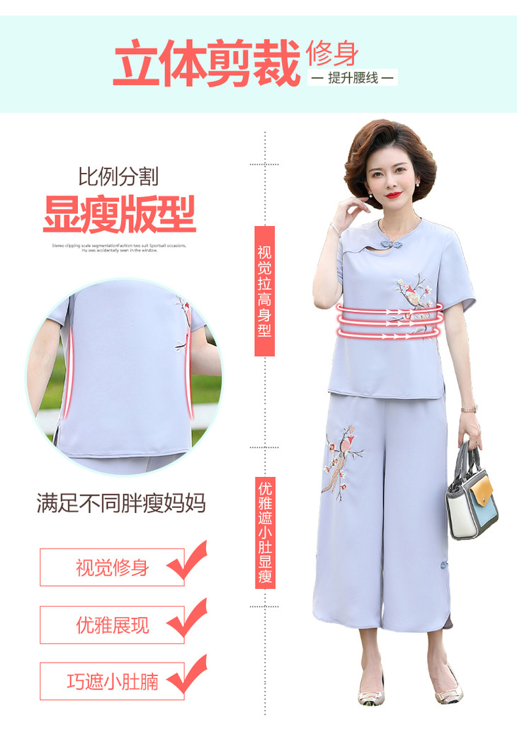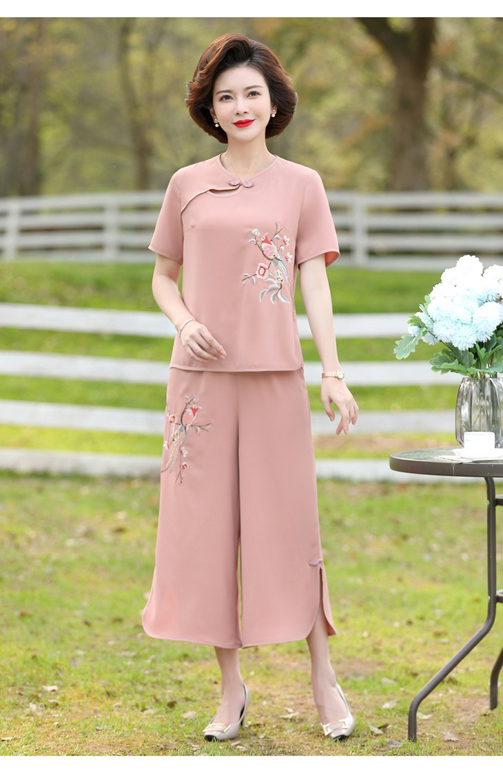 Y-188夏装洋气精美绣花盘扣时尚短袖中国风两件套
