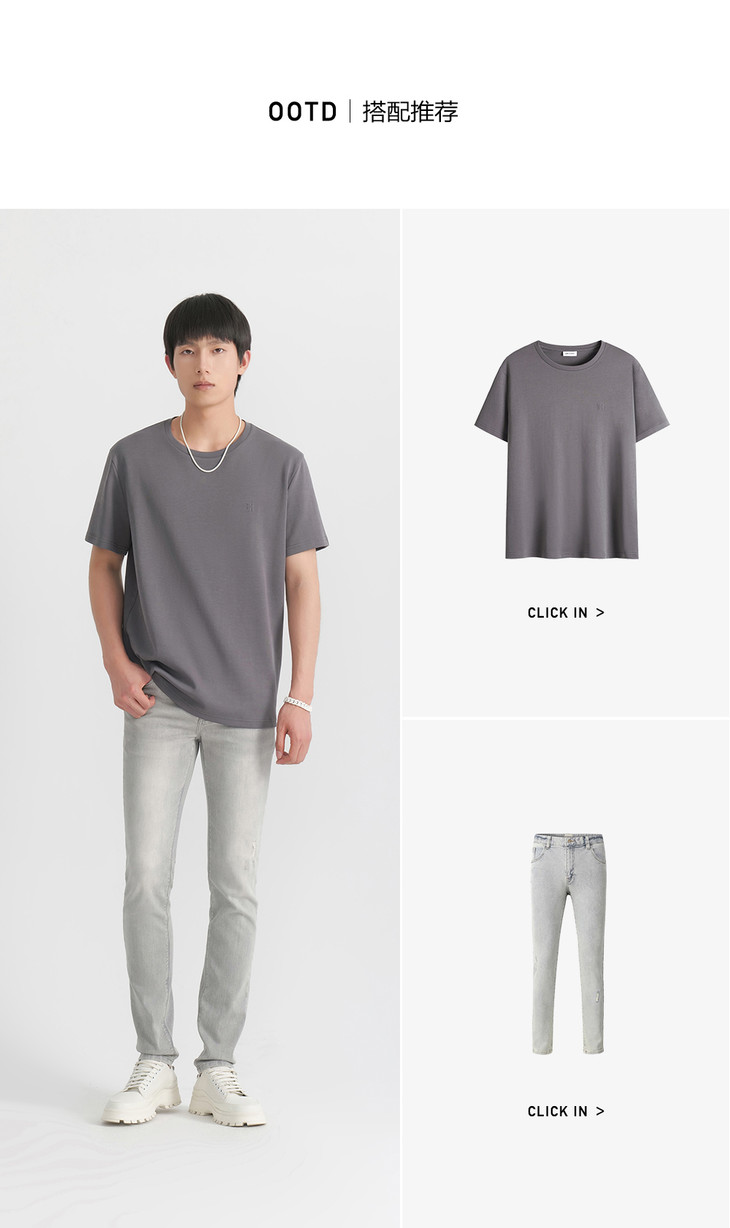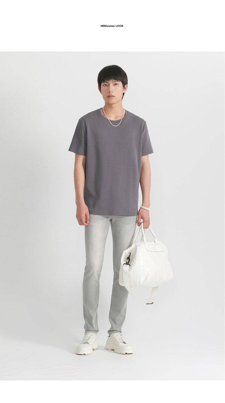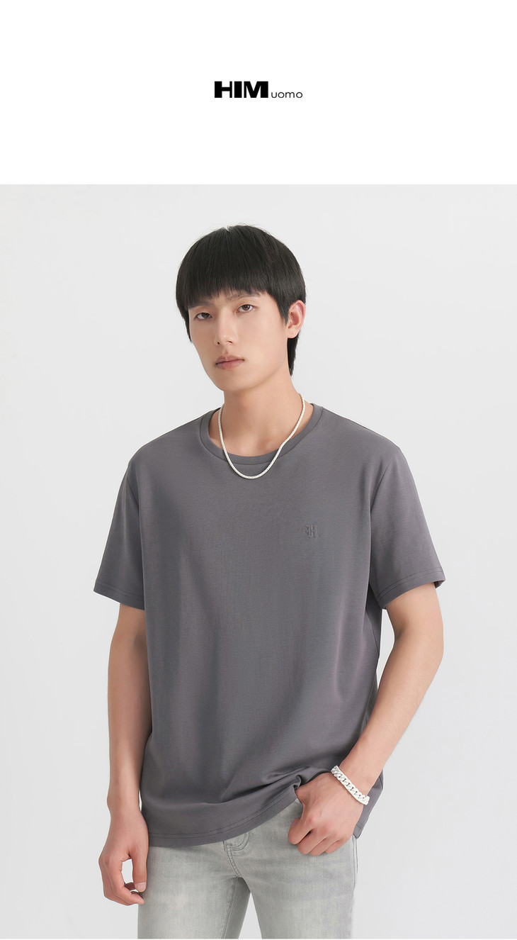 HIM漢崇 休闲柔软舒适短袖T恤简约印花百搭圆领打底衫 2026夏季