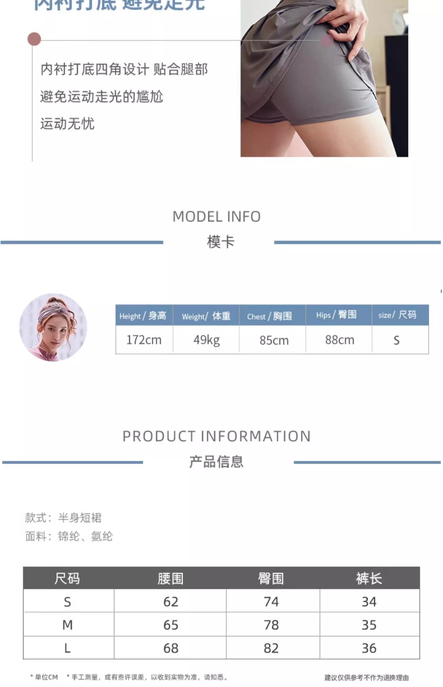 【147元任选3件】跃牌【蚂蚁运动】系列 高腰翘臂性感透气假两件防走光健身瑜伽裙裤K3536(活动产品,收货7天内支持退换)