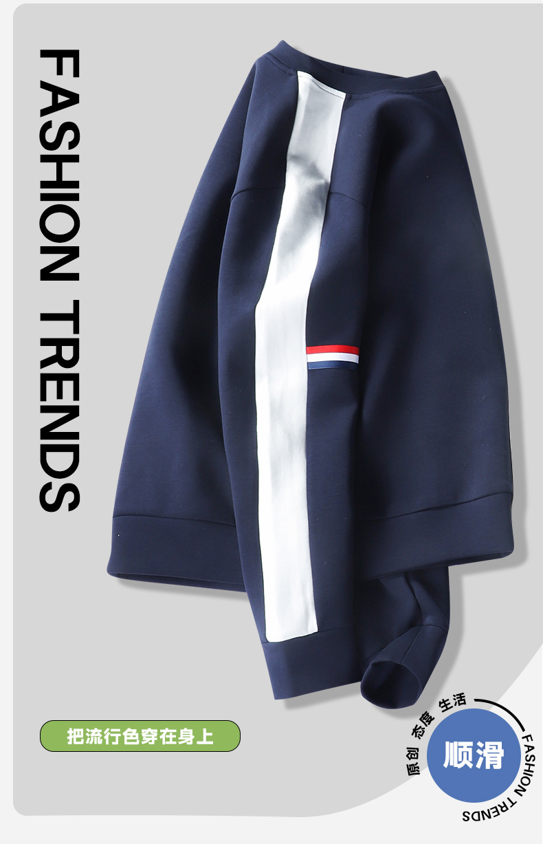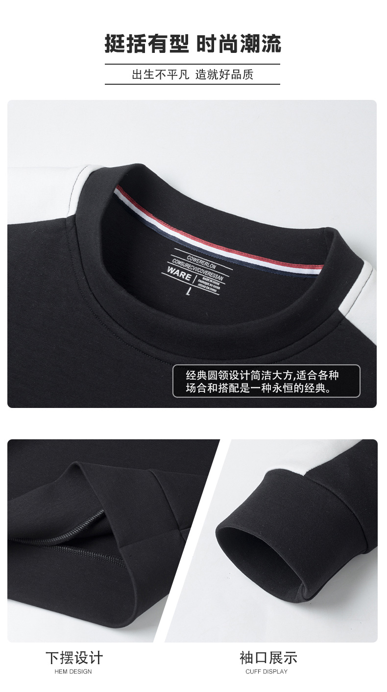 【新款DSK】大依优型大码圆领卫衣撞色插肩袖简约长袖加肥加大胖子上衣男士T恤肥佬打底男装